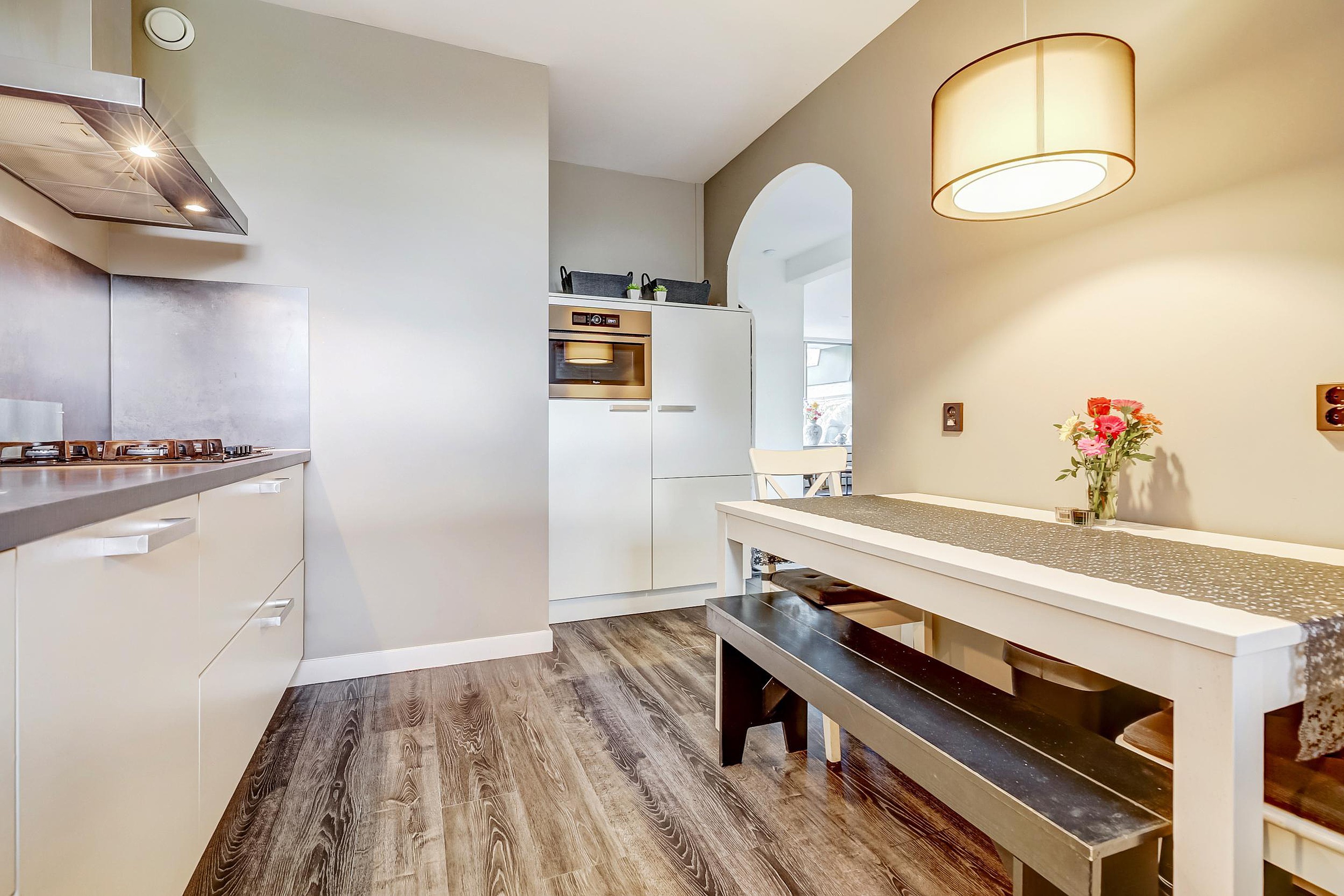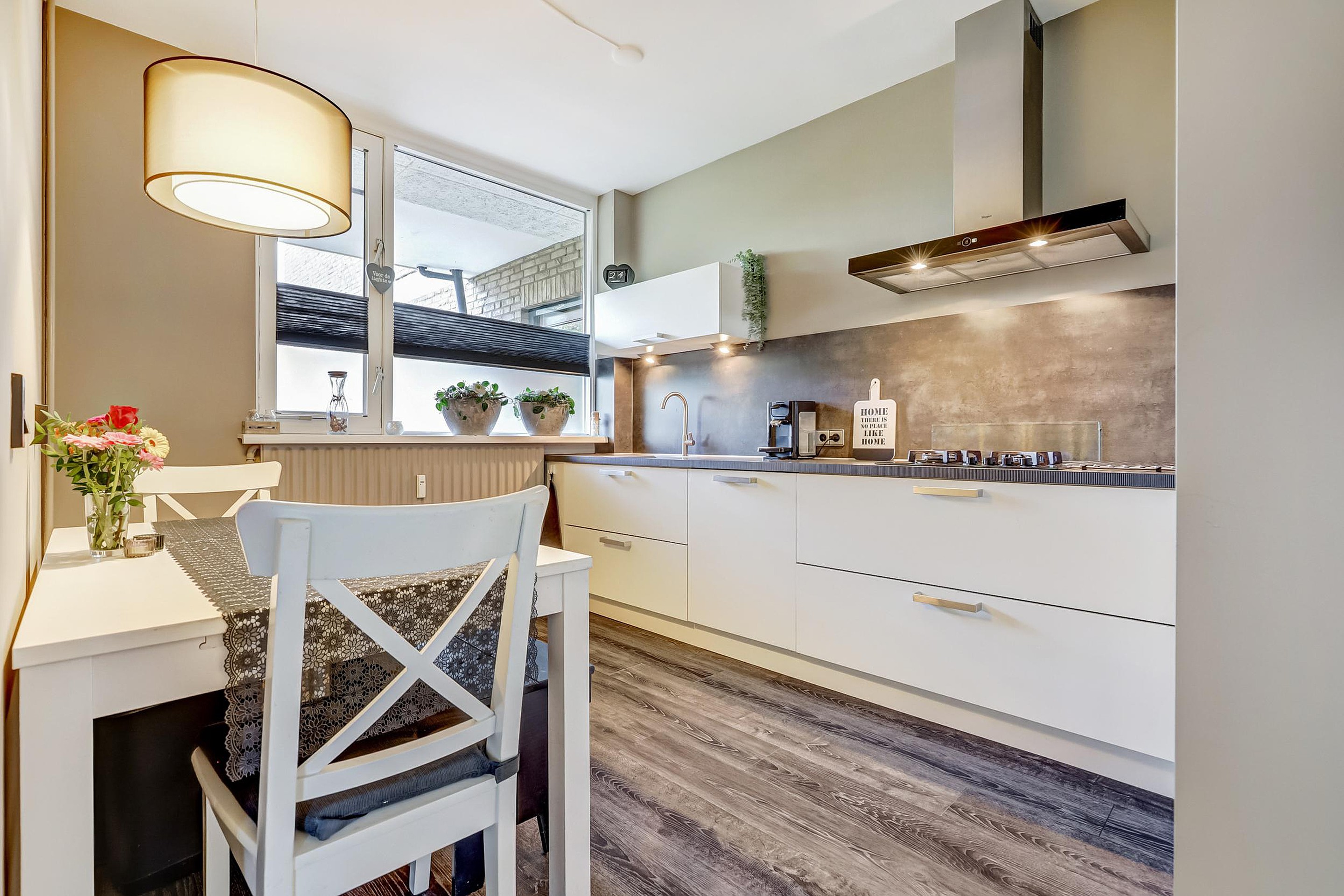 De gesloten keuken is praktisch ingedeeld en voorzien van diverse inbouwapparatuur, zoals een gasfornuis, afzuigkap, combi-magnetron, koelkast, vriezer en vaatwasser. Er is voldoende ruimte voor een eettafel – perfect voor een gezellig ontbijt of diner.