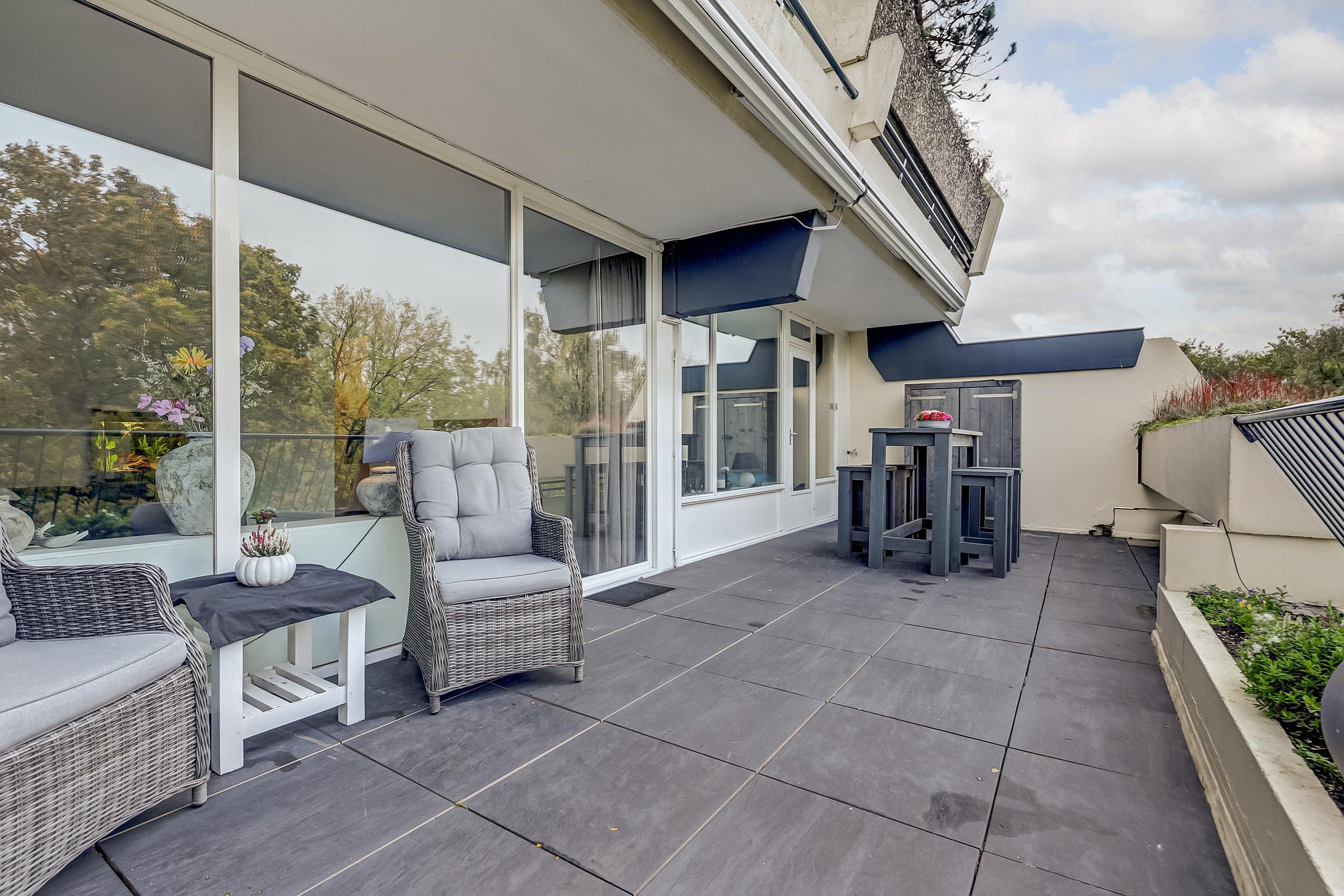 Het ruime terras van ca. 30 m2, gelegen op het westen, is een echte blikvanger. Een plek om te ontspannen, te borrelen of lekker buiten te eten terwijl de zon langzaam ondergaat.