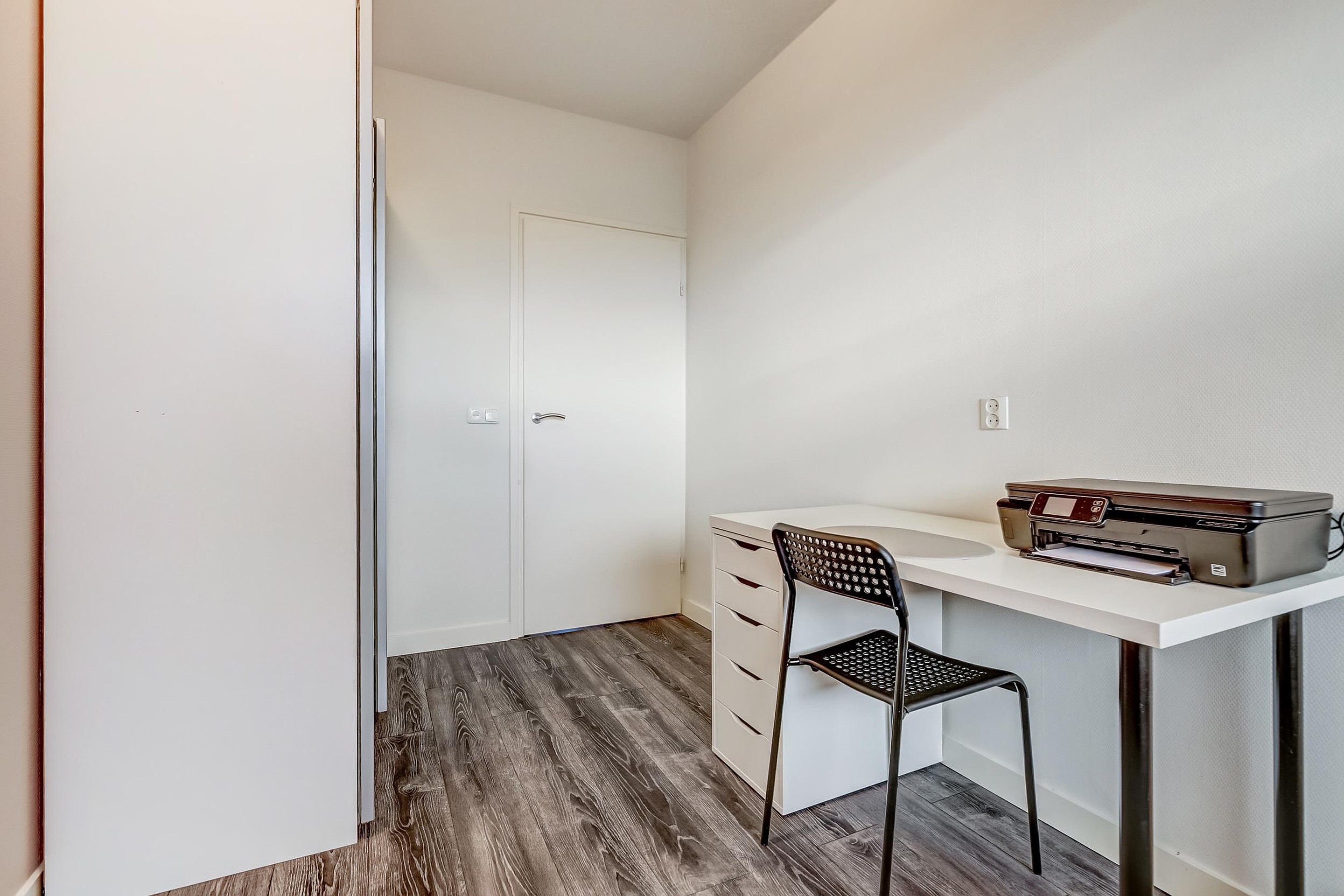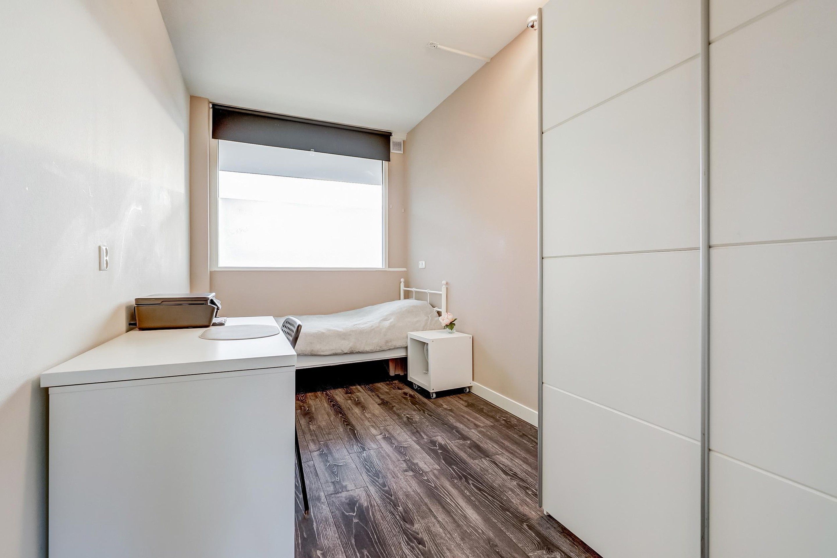 Vanuit de woonkamer is er toegang tot een slaapkamer aan de galerijzijde, ideaal als werkkamer, hobbyruimte of logeerkamer.