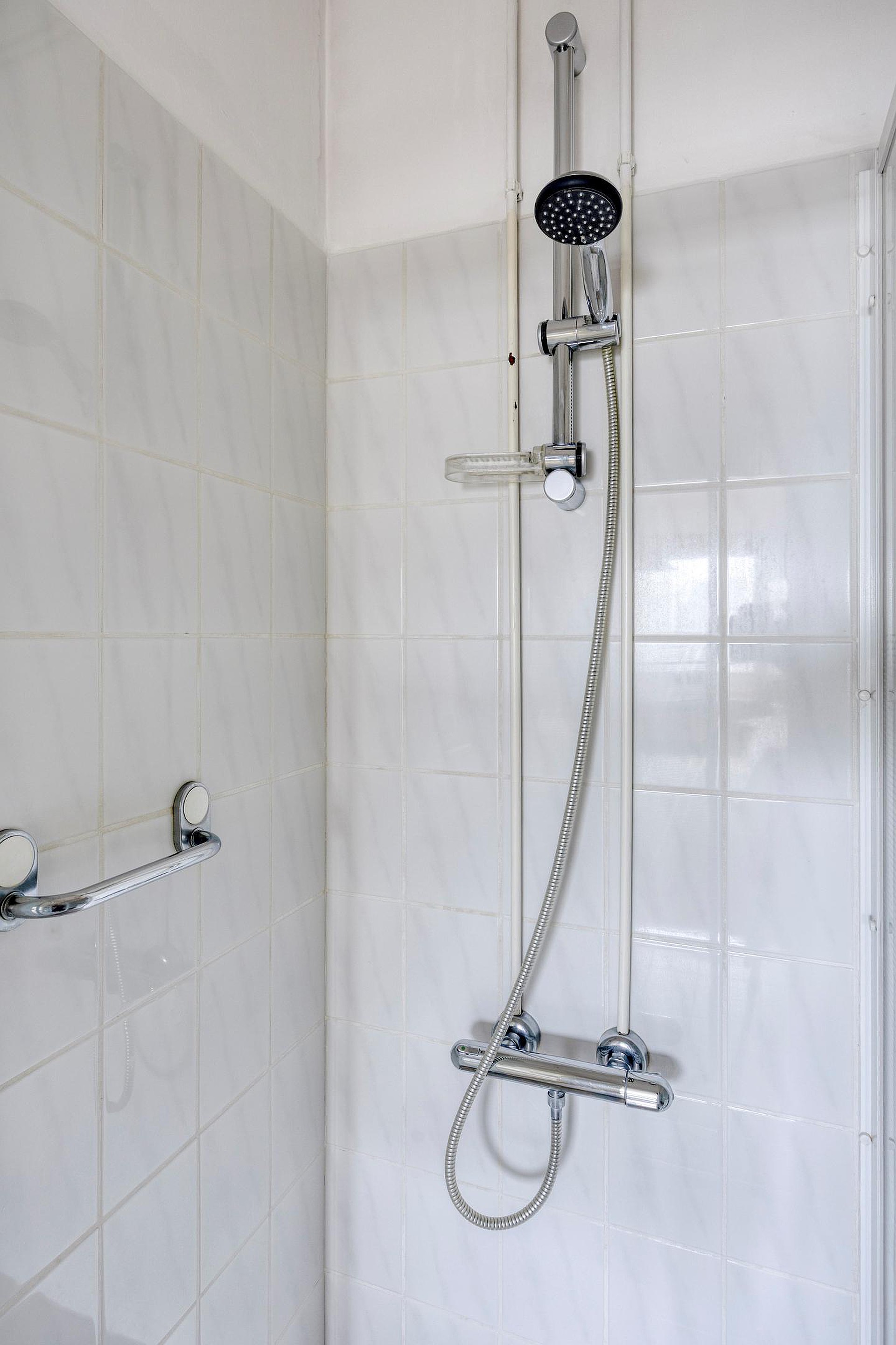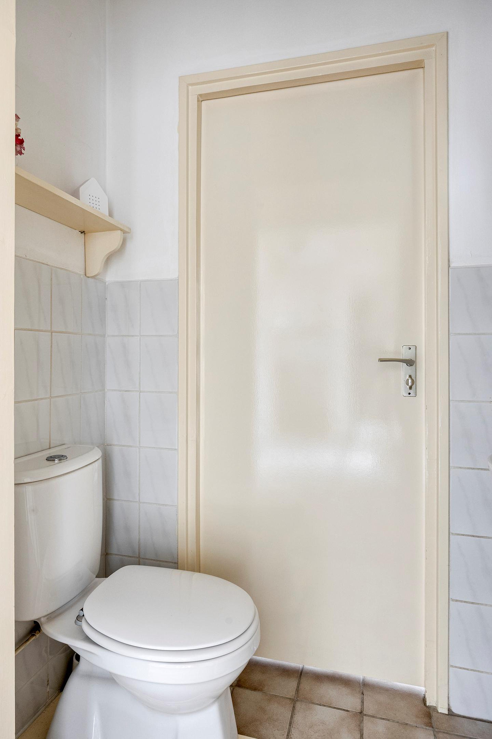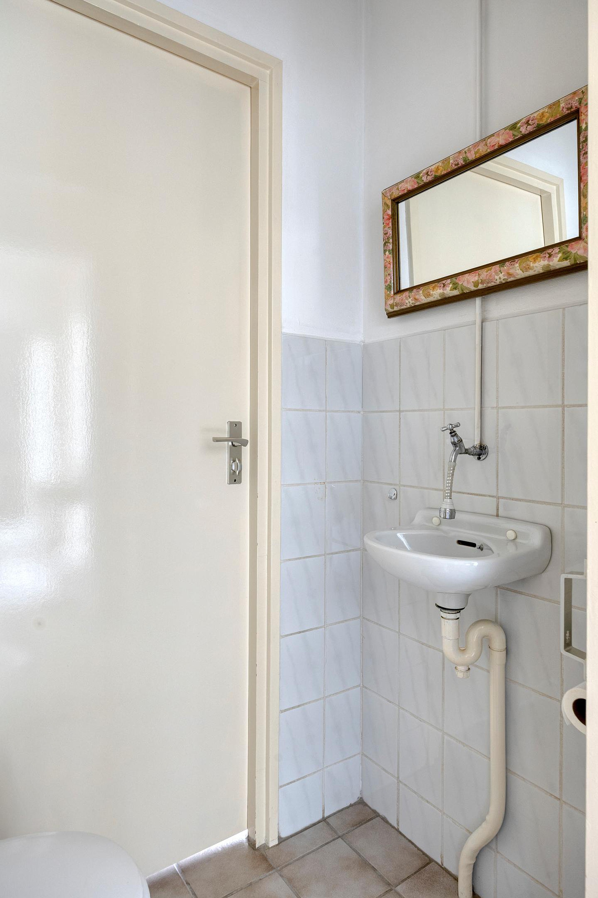 De badkamer is volledig betegeld en netjes afgewerkt. U beschikt hier over een ruime douchecabine, een wastafel met spiegel en een opbergmeubel. Daarnaast is de witgoedaansluiting hier gesitueerd, wat het geheel praktisch en efficiënt maakt. De separate toiletruimte is eveneens verzorgd uitgevoerd en vergroot het comfort van de woning.