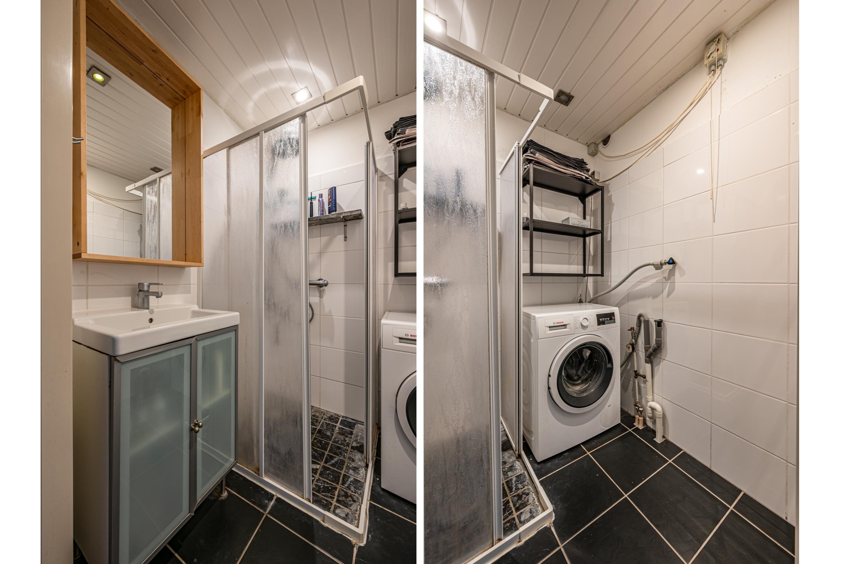 Er is een master bedroom en een gedeeltelijk betegelde badkamer met wasmachine aansluiting, douchecabine, wastafelmeubel en gedeeltelijk betegeld.
