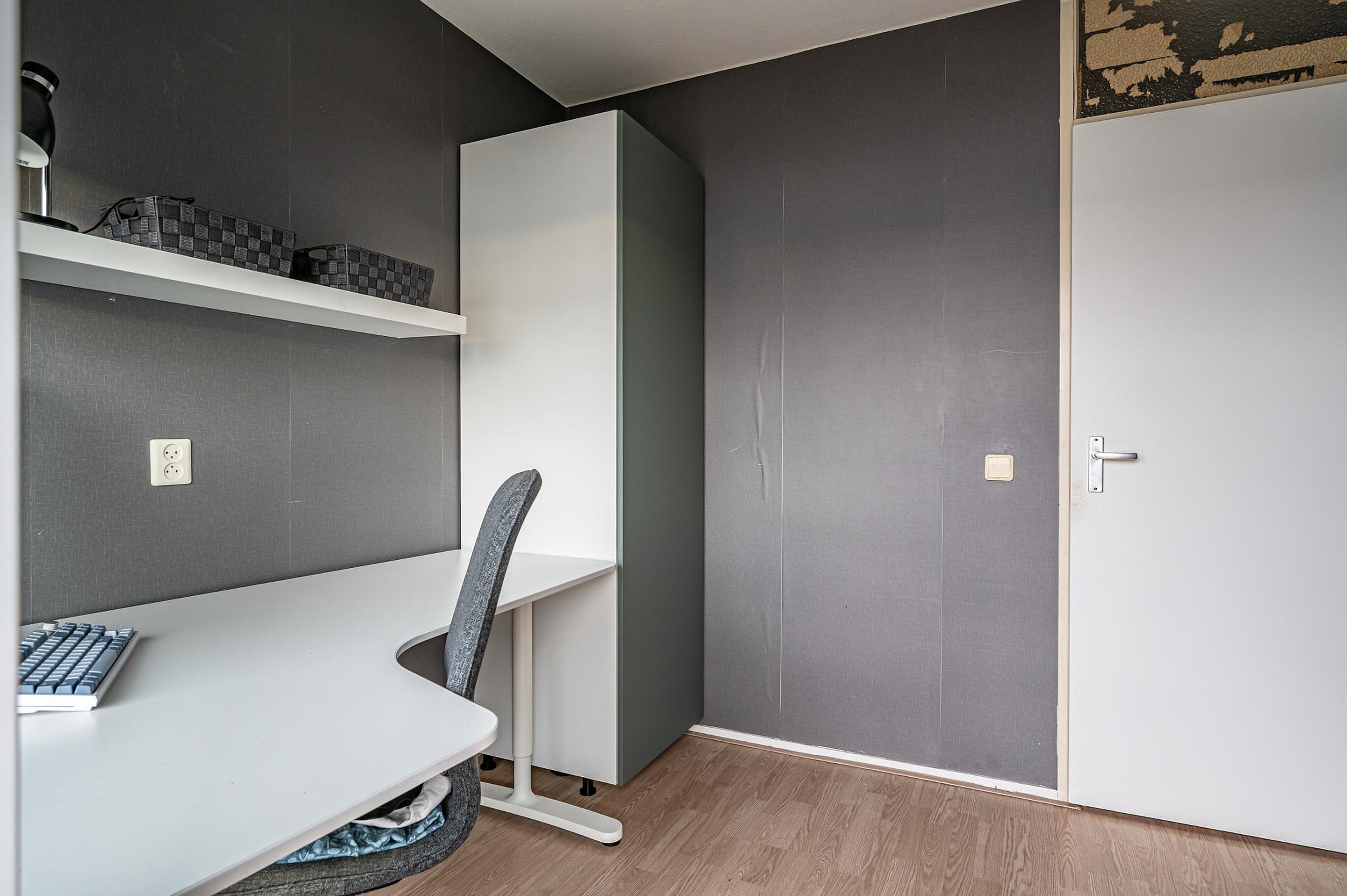 Via de tweede slaapkamer, die tevens als berging of thuiswerkplek gebruikt kan worden, kom je op het balkon met zonnige zuid-ligging.