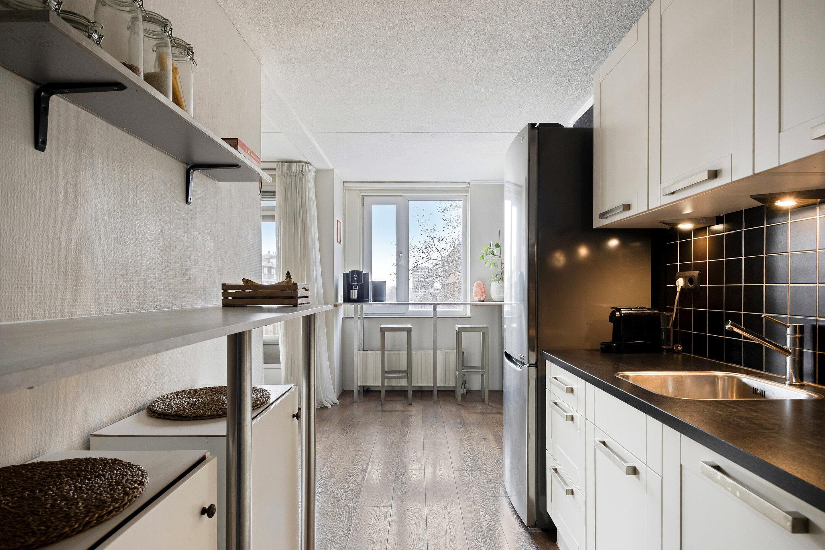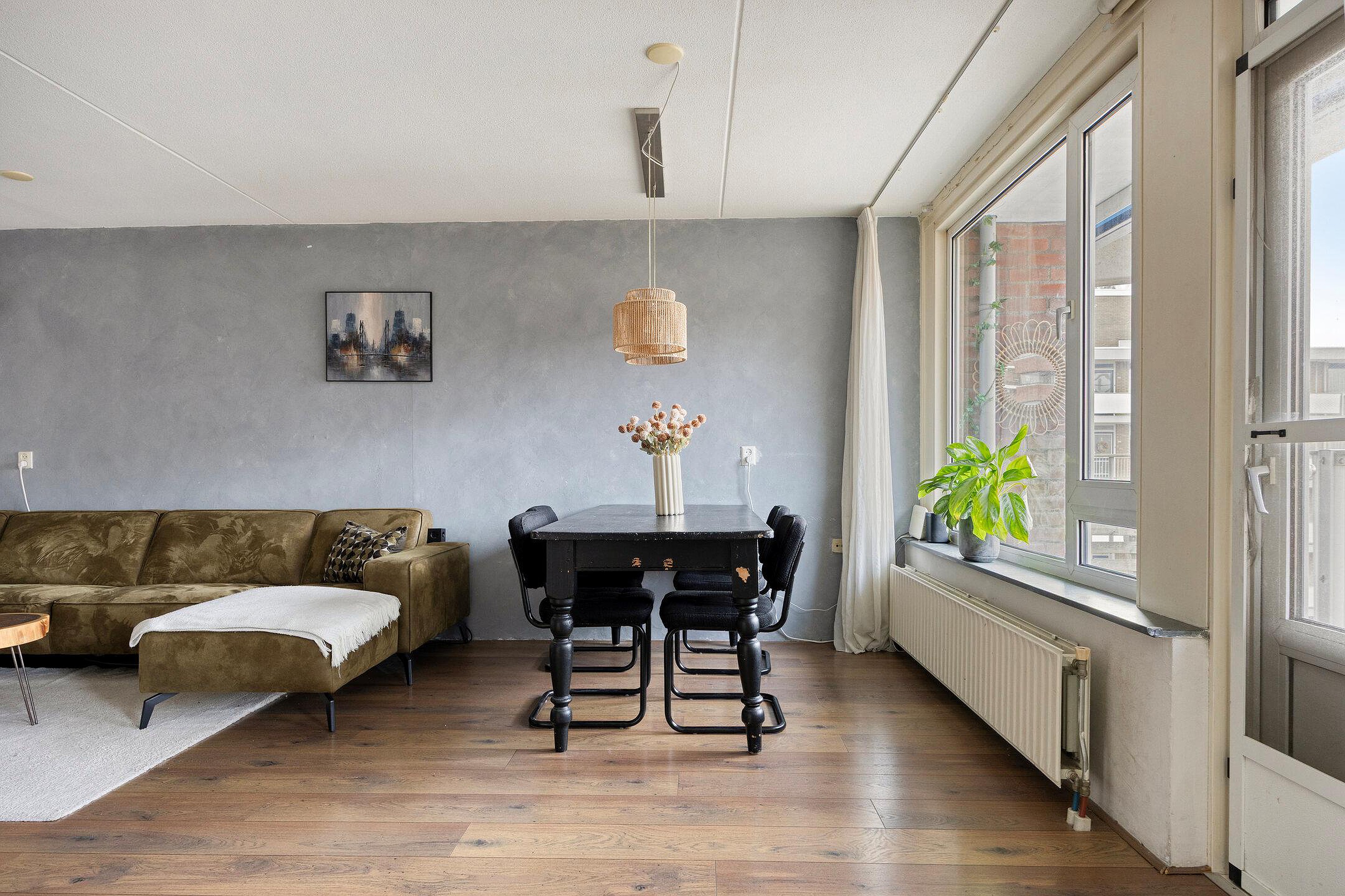 Op de 5e verdieping gelegen 3 kamer appartement met grote inpandige berging, een berging in de onderbouw en een balkon op het westen. Dit op professionele wijze volledig gemoderniseerde appartement ligt op loopafstand van het NS-station en het centrum van Gouda.