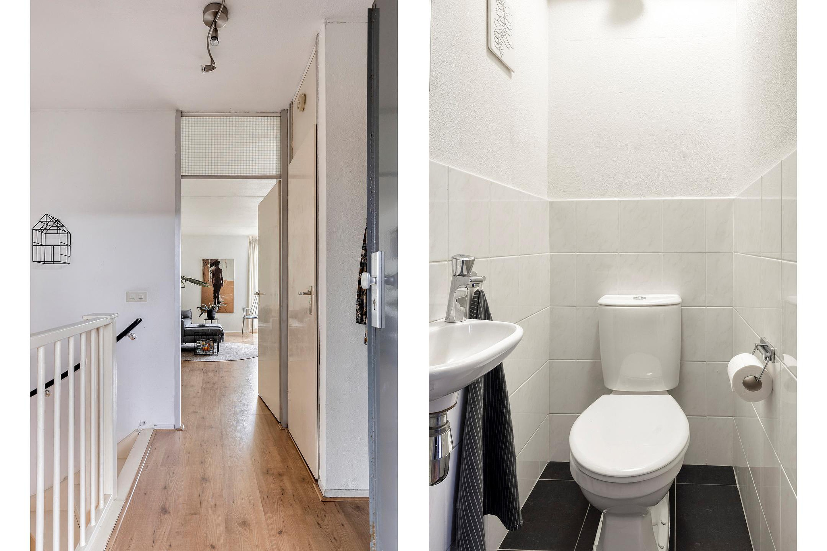 Via de hal een trap naar de bedenverdieping waar zich de slaapkamers en badkamer bevinden.