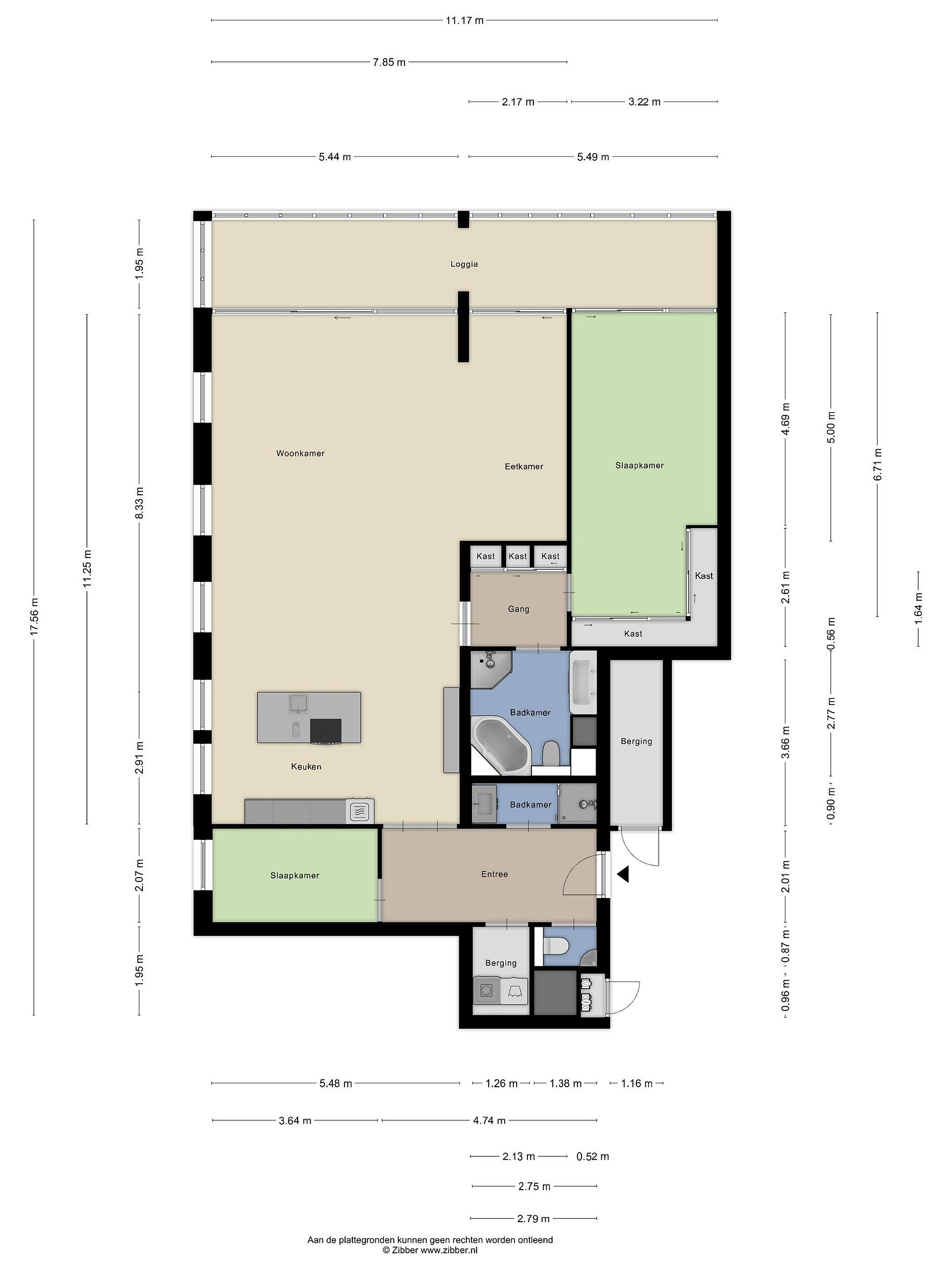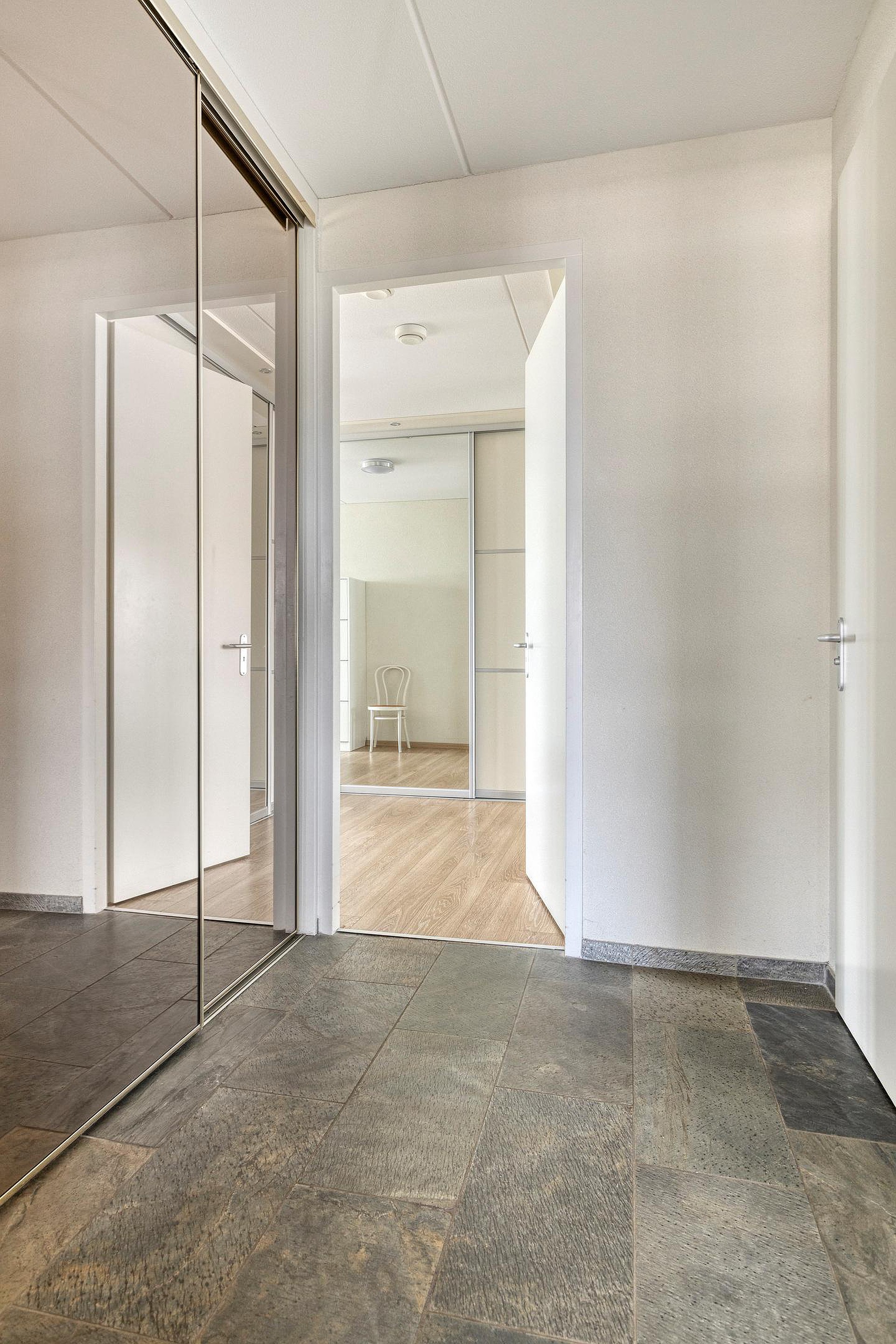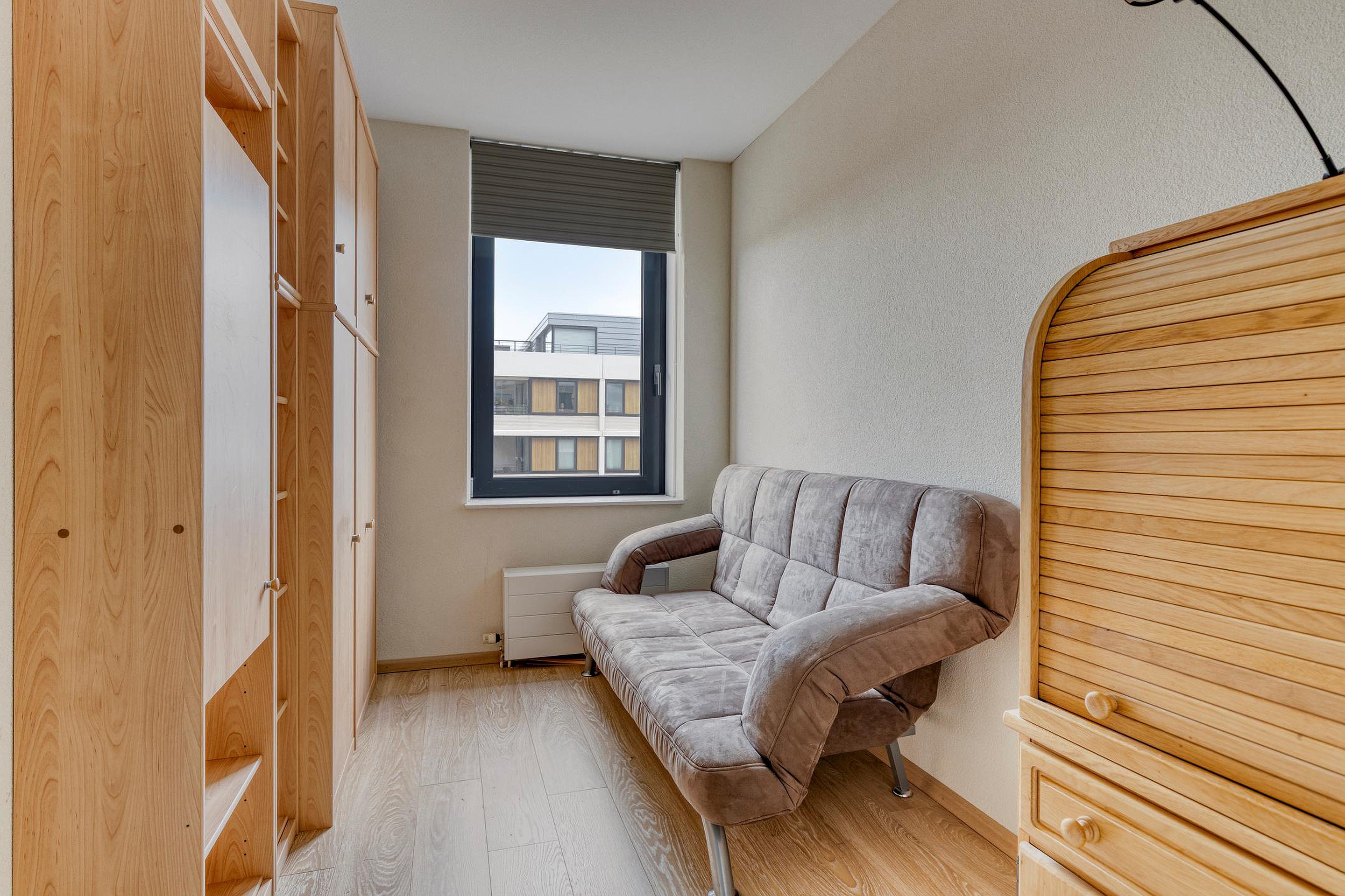 De 1e slaapkamer aan de Waterwegzijde heeft een vaste kastenwand en een schuifpui naar de loggia. De eetkamer kan mogelijk ook als 3e slaapkamer ingericht worden.