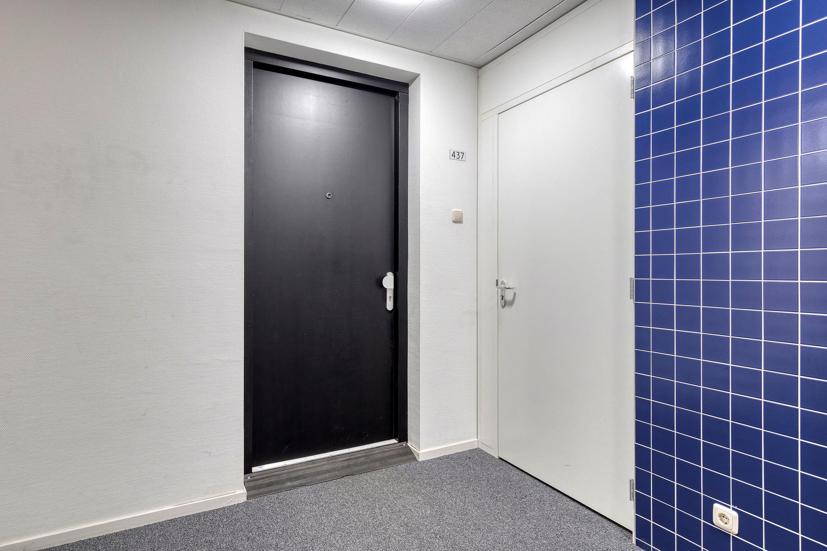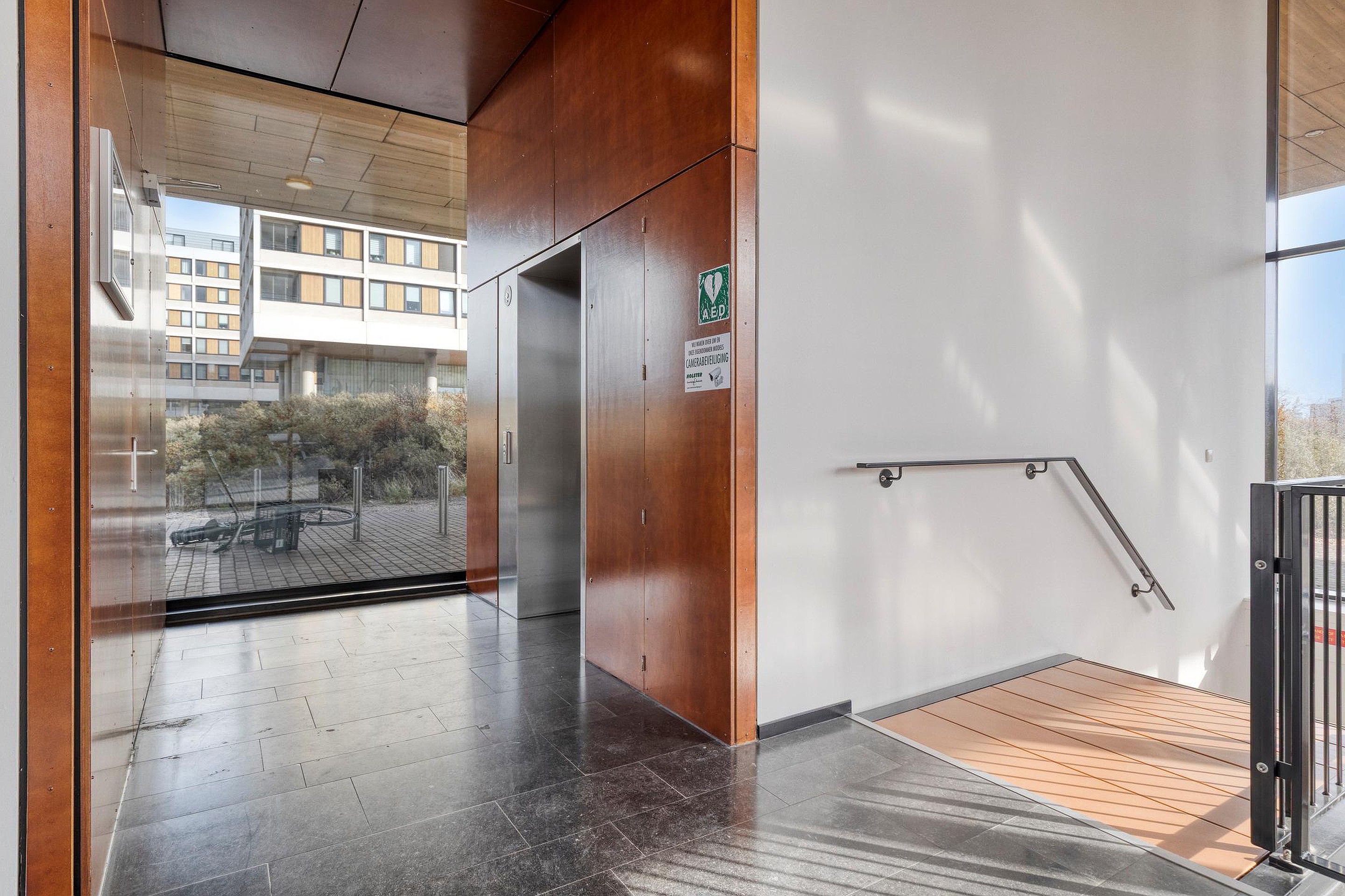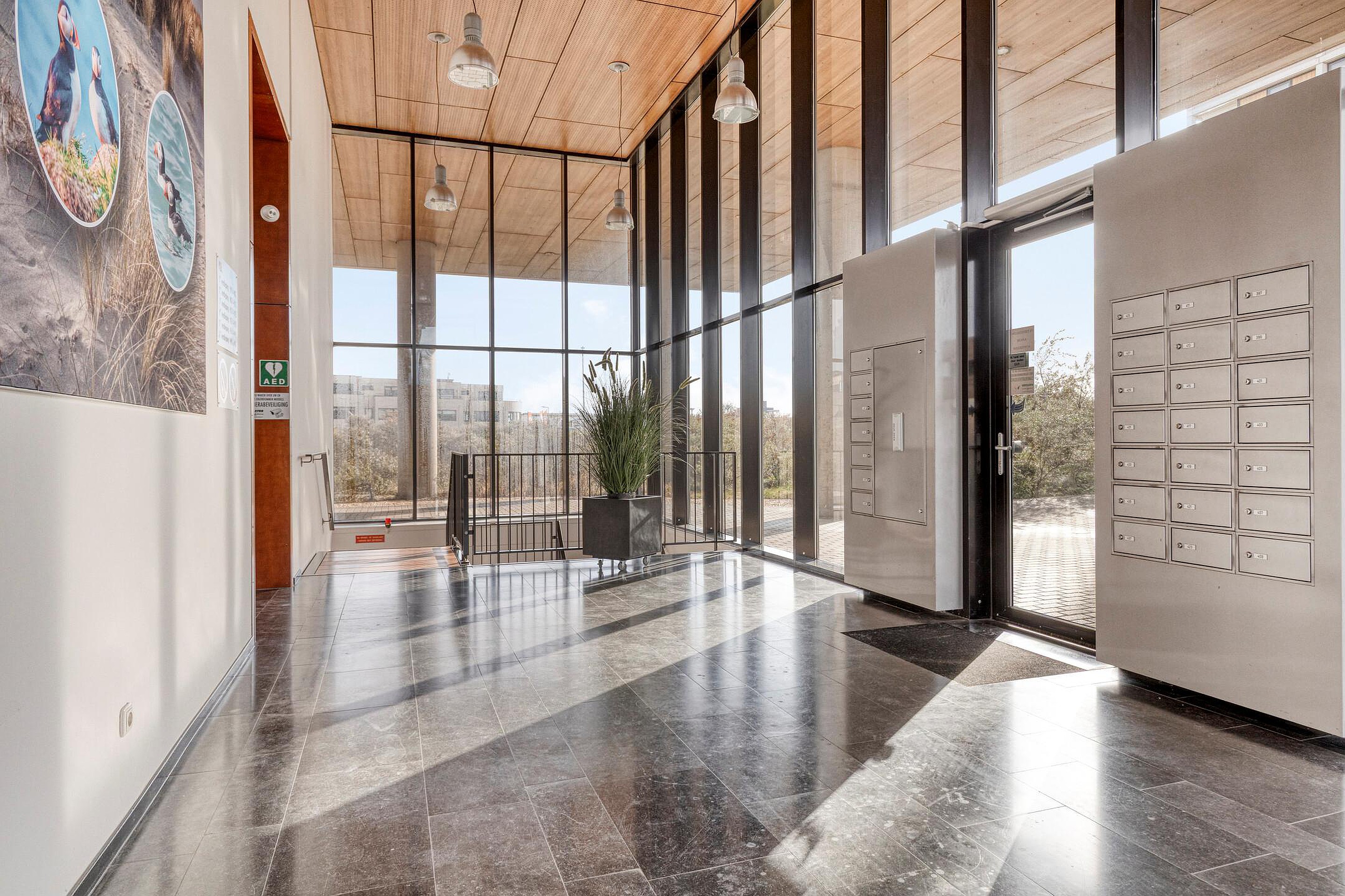 Begane grond: centrale hal met lift, trappenhuis, videosysteem en brievenbussen.