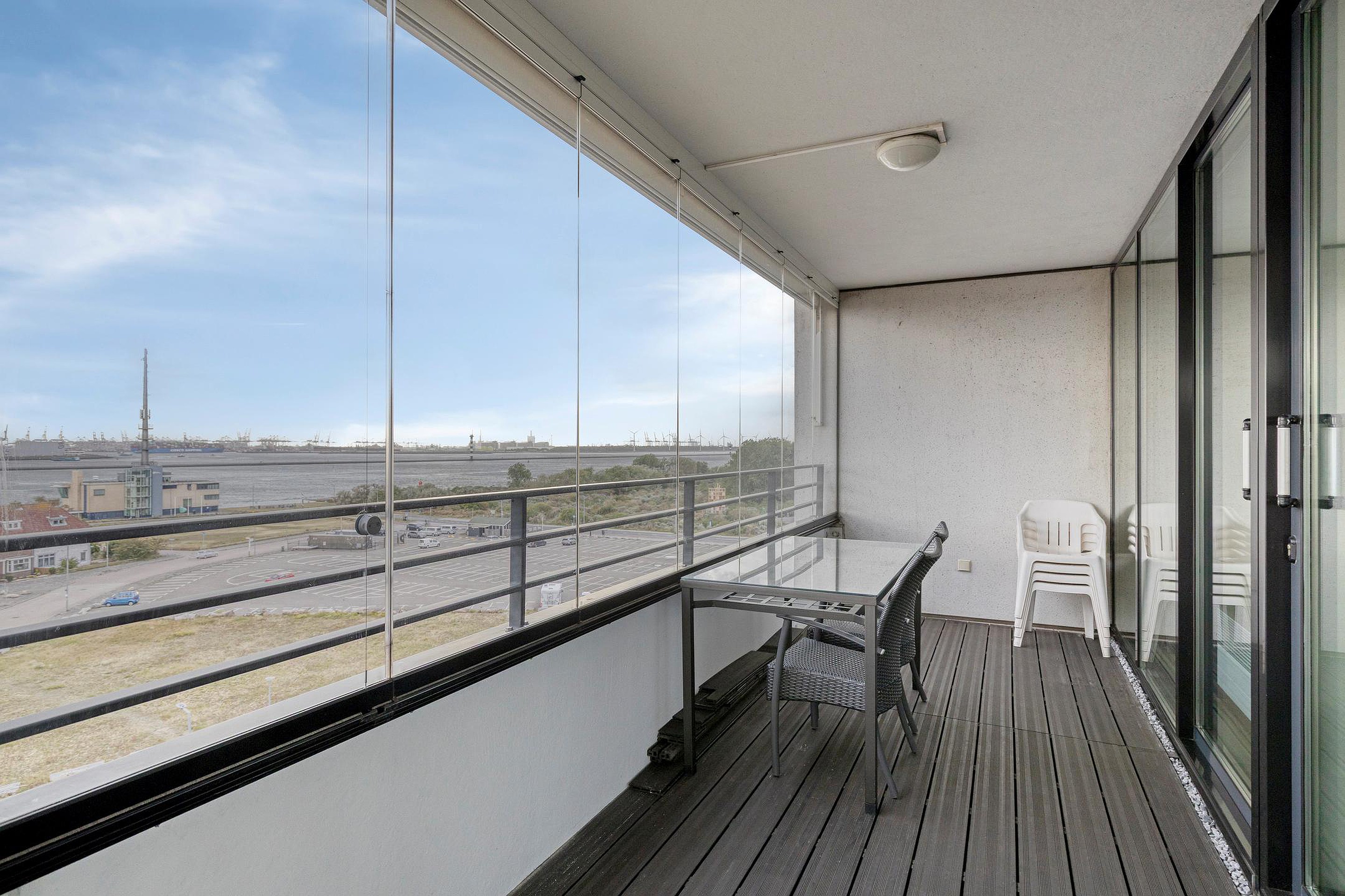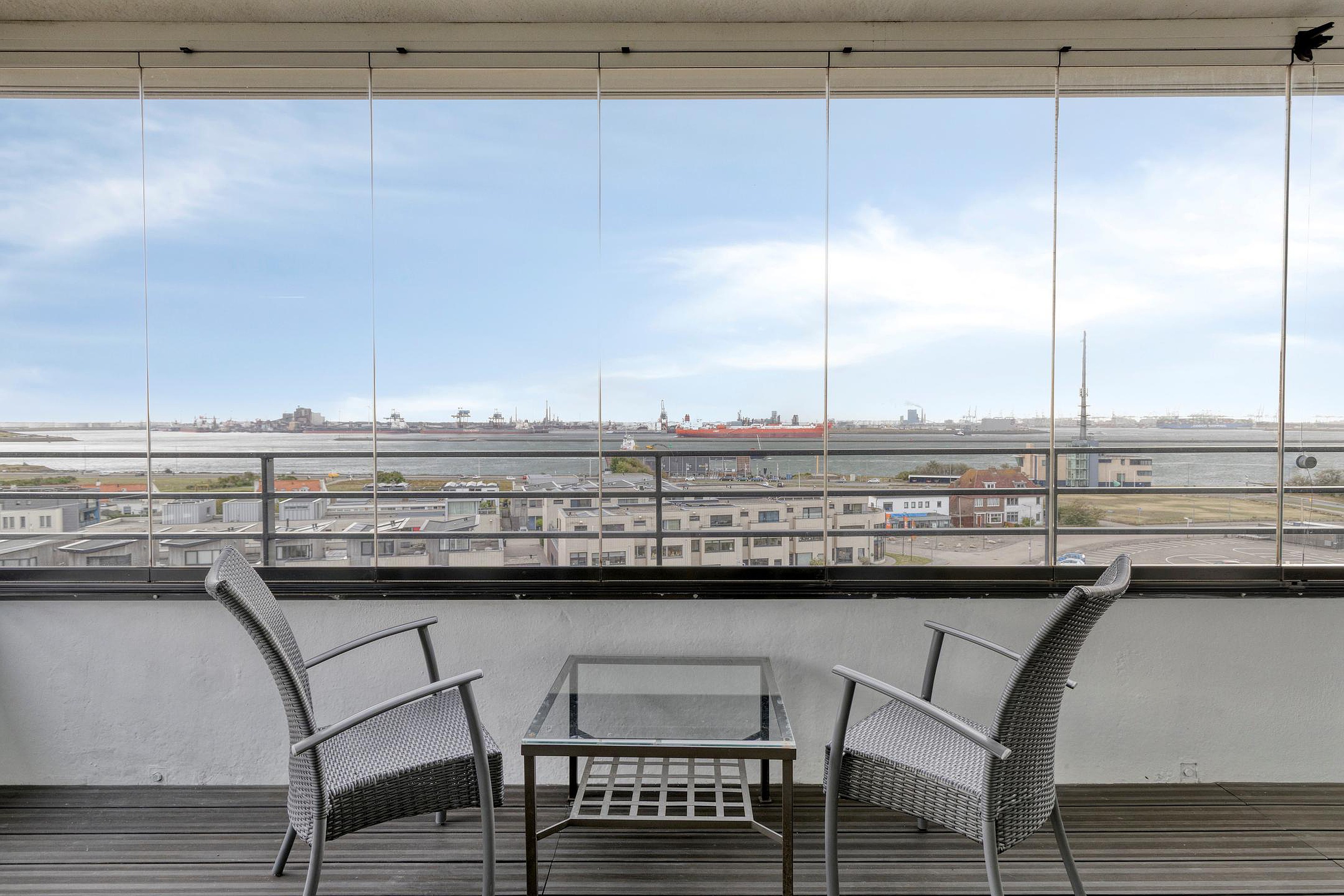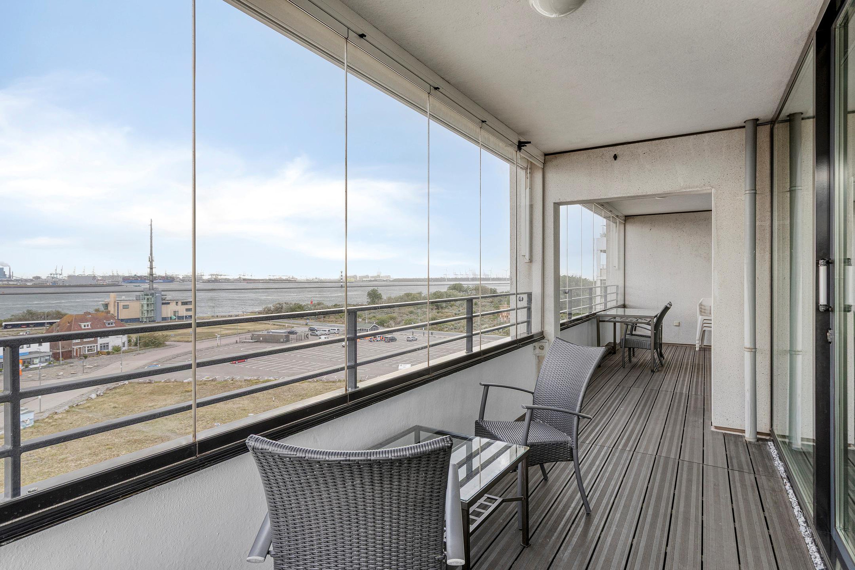 Bijzonderheden : Keurige afwerking, dubbel balkon/loggia over de volle breedte van het appartement en een fantastisch uitzicht over de Nieuwe Waterweg en duinen.