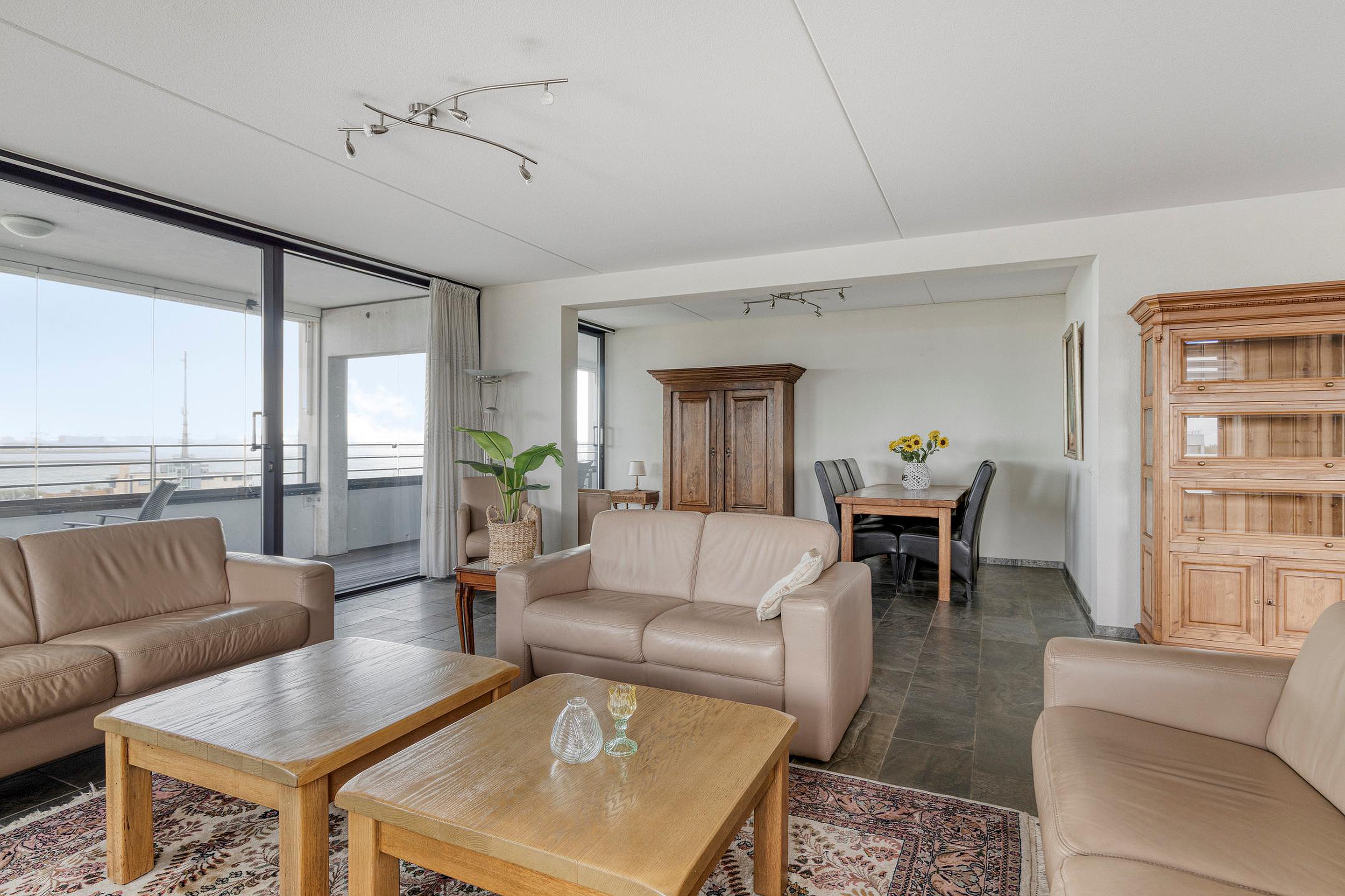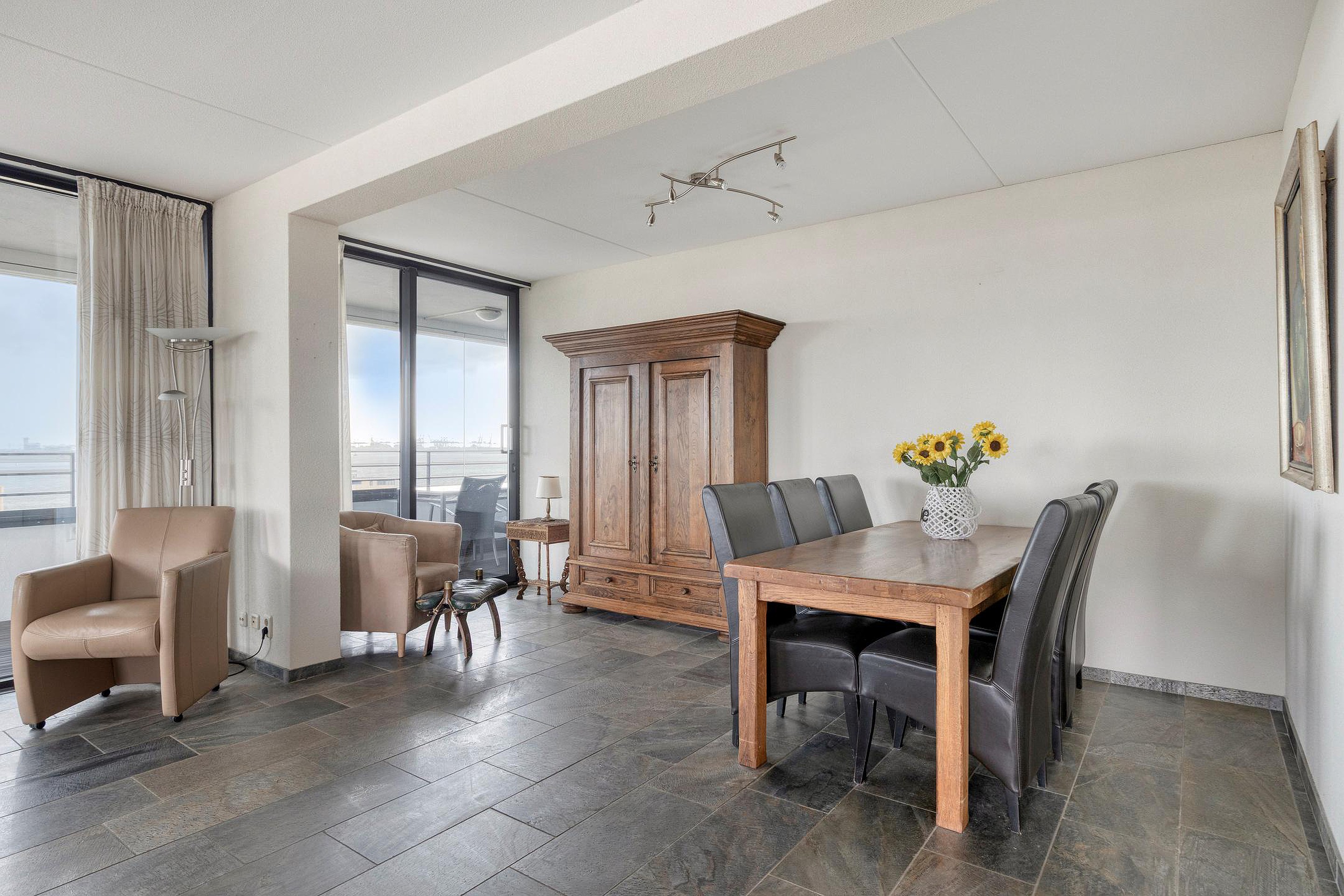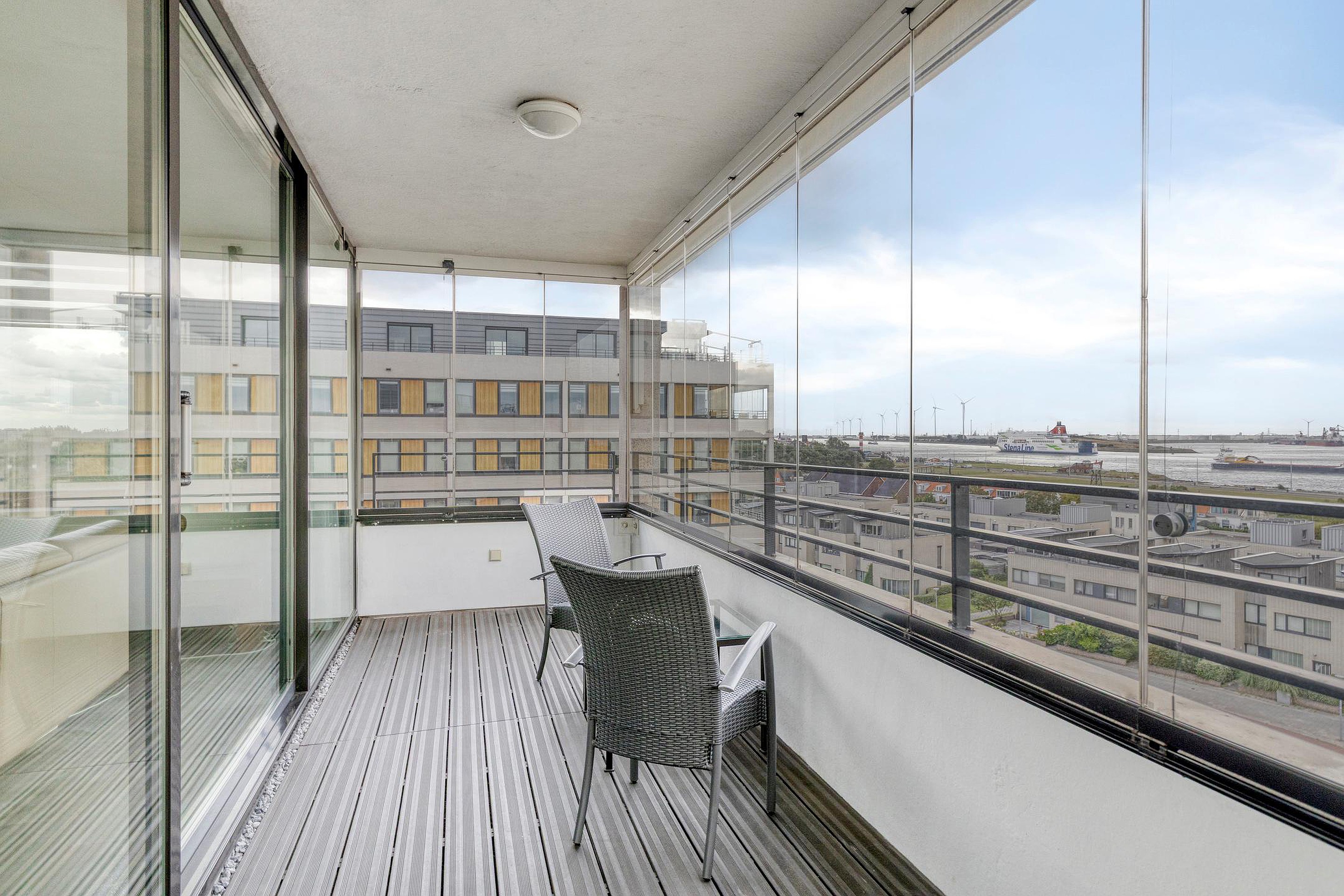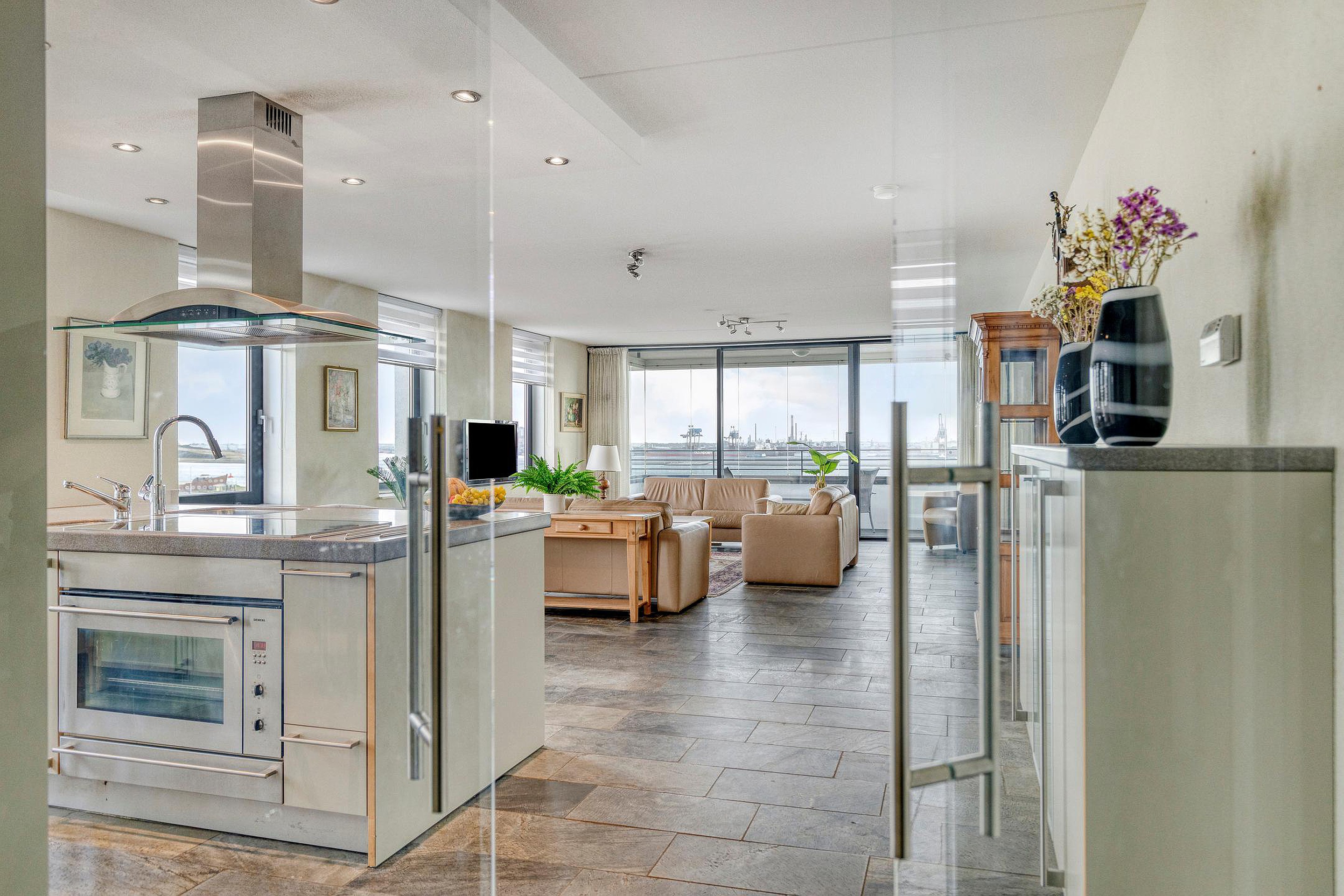 Bijzonderheden : Keurige afwerking, dubbel balkon/loggia over de volle breedte van het appartement en een fantastisch uitzicht over de Nieuwe Waterweg en duinen.