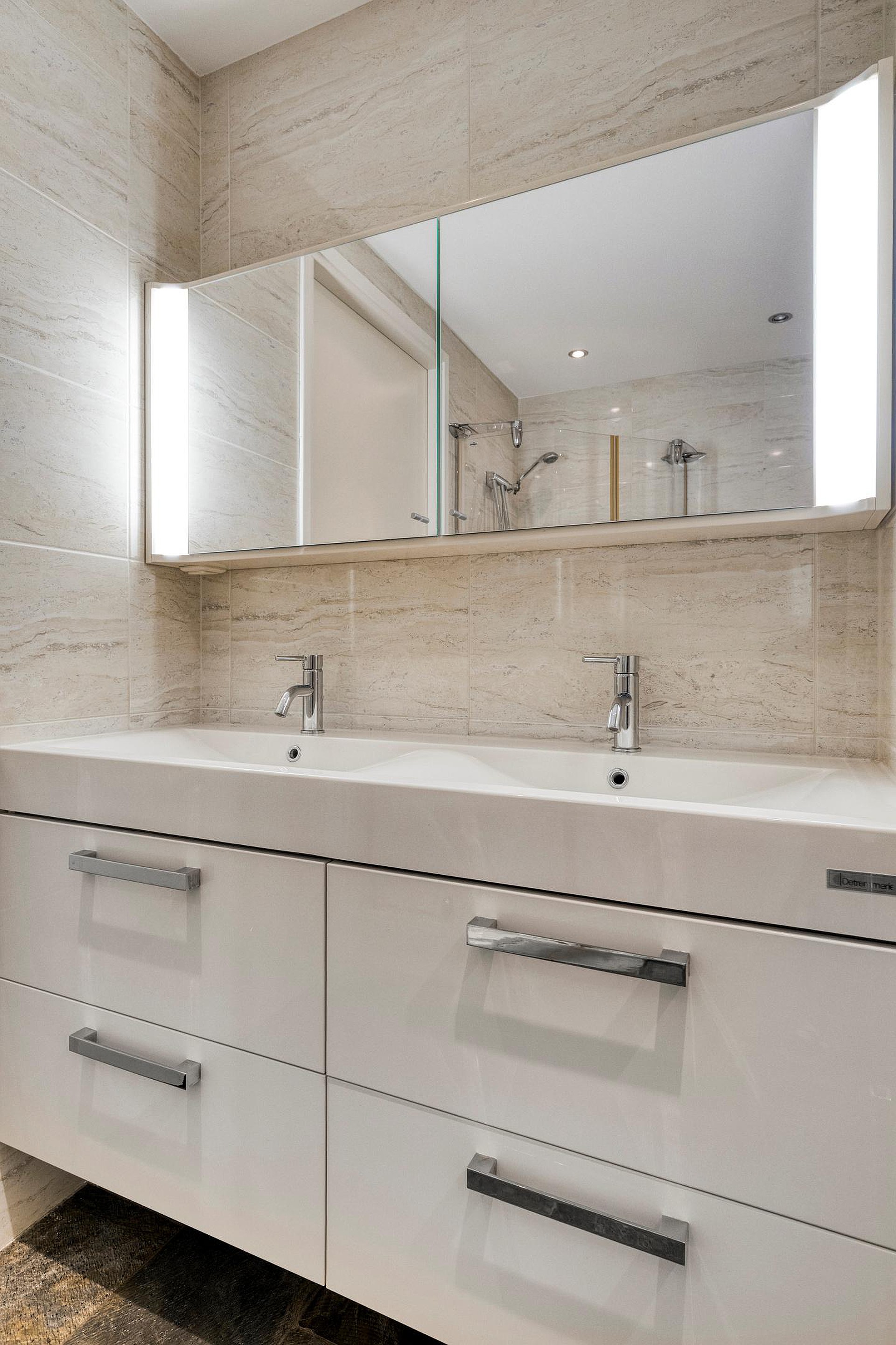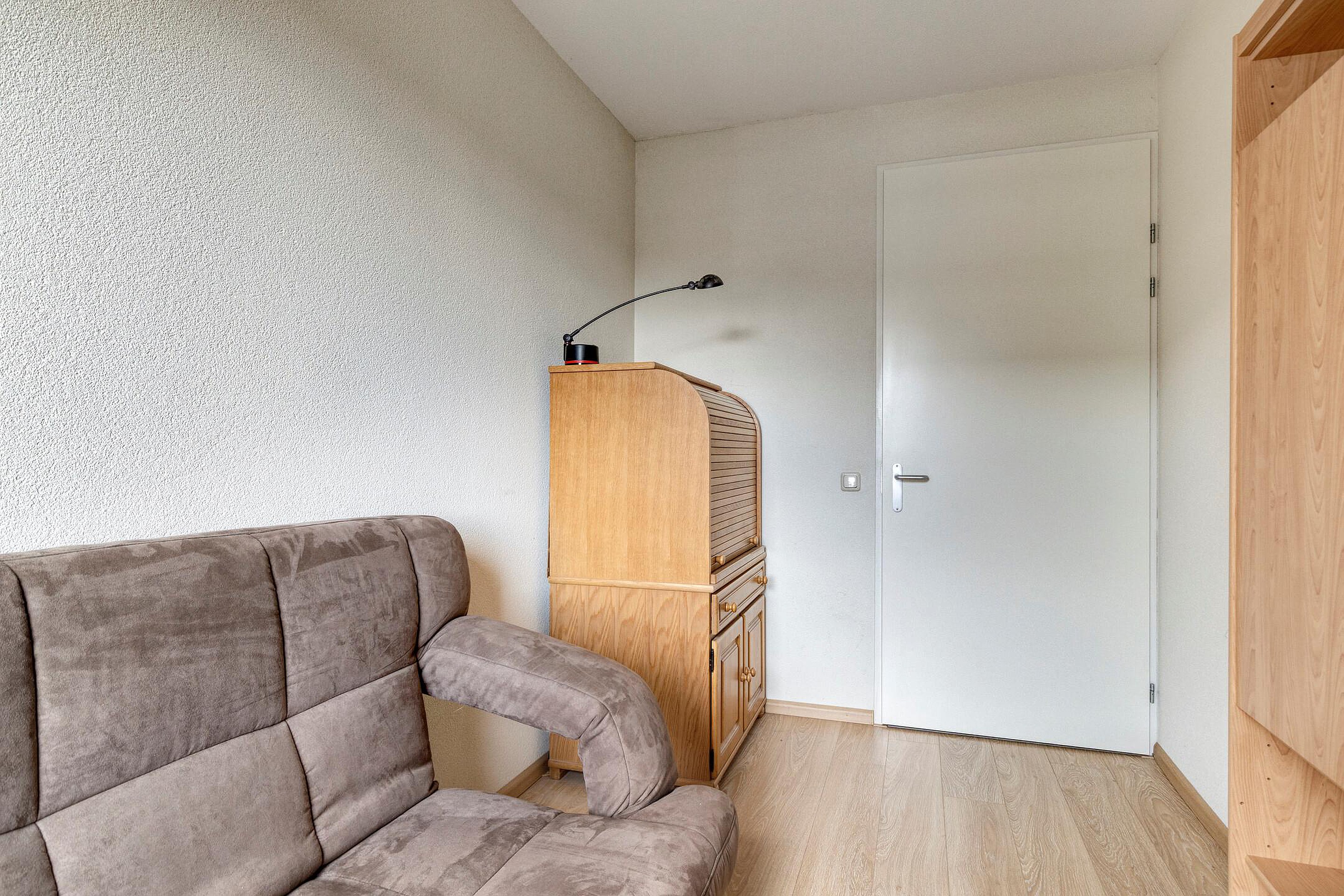 De 2e slaapkamer aan de duinzijde is nu in gebruik als kantoorkamer en heeft toegang via de hal tot de 2e badkamer.