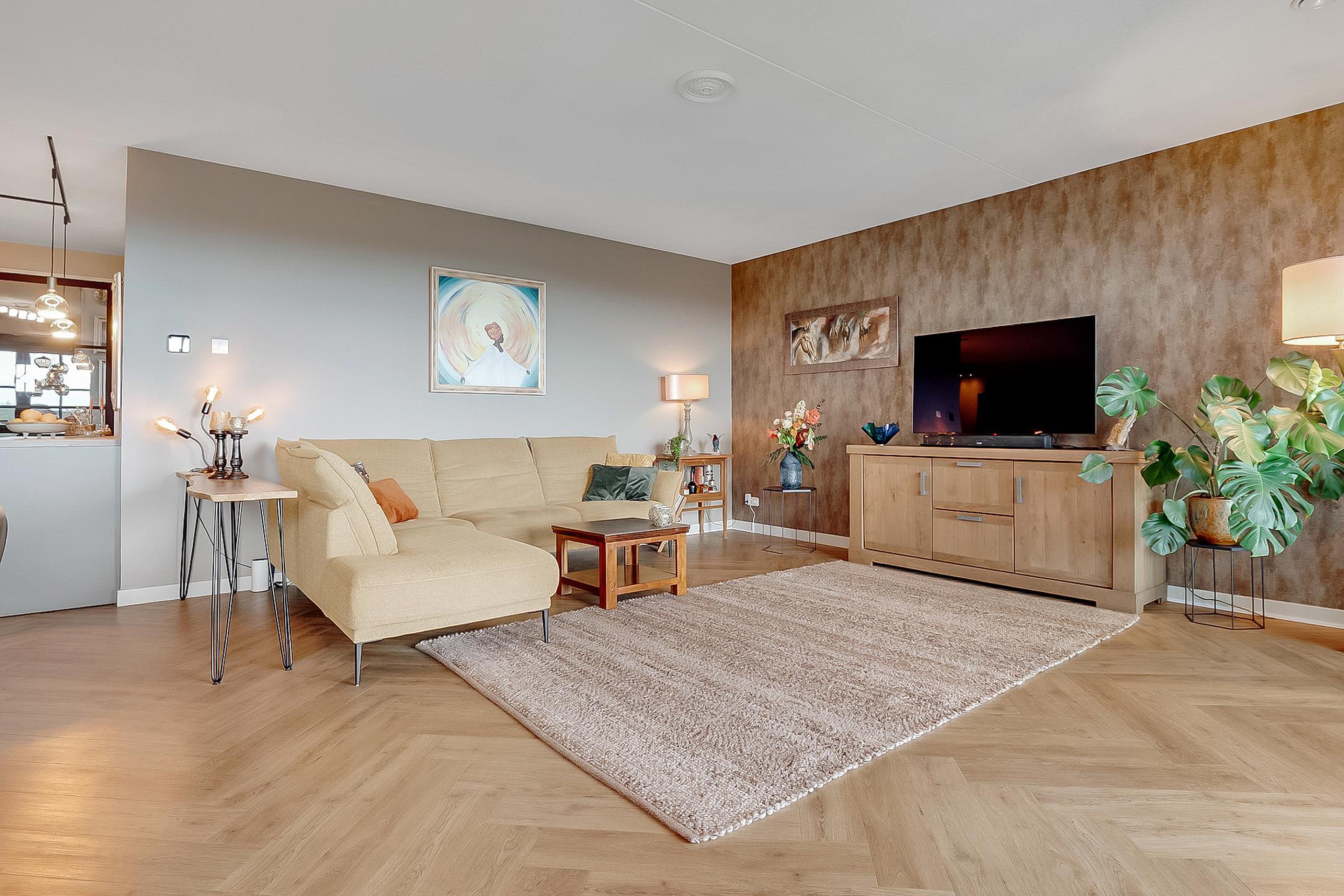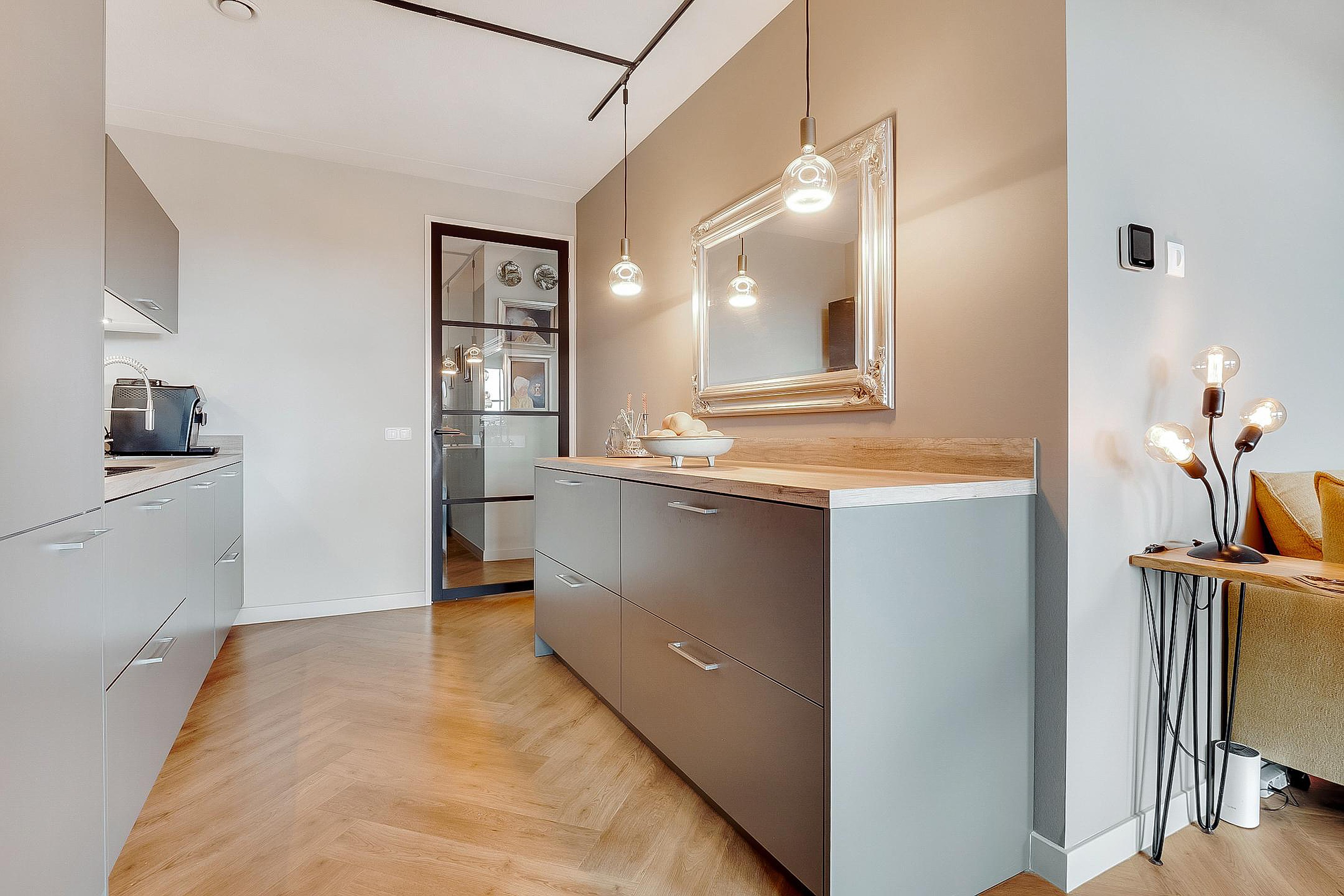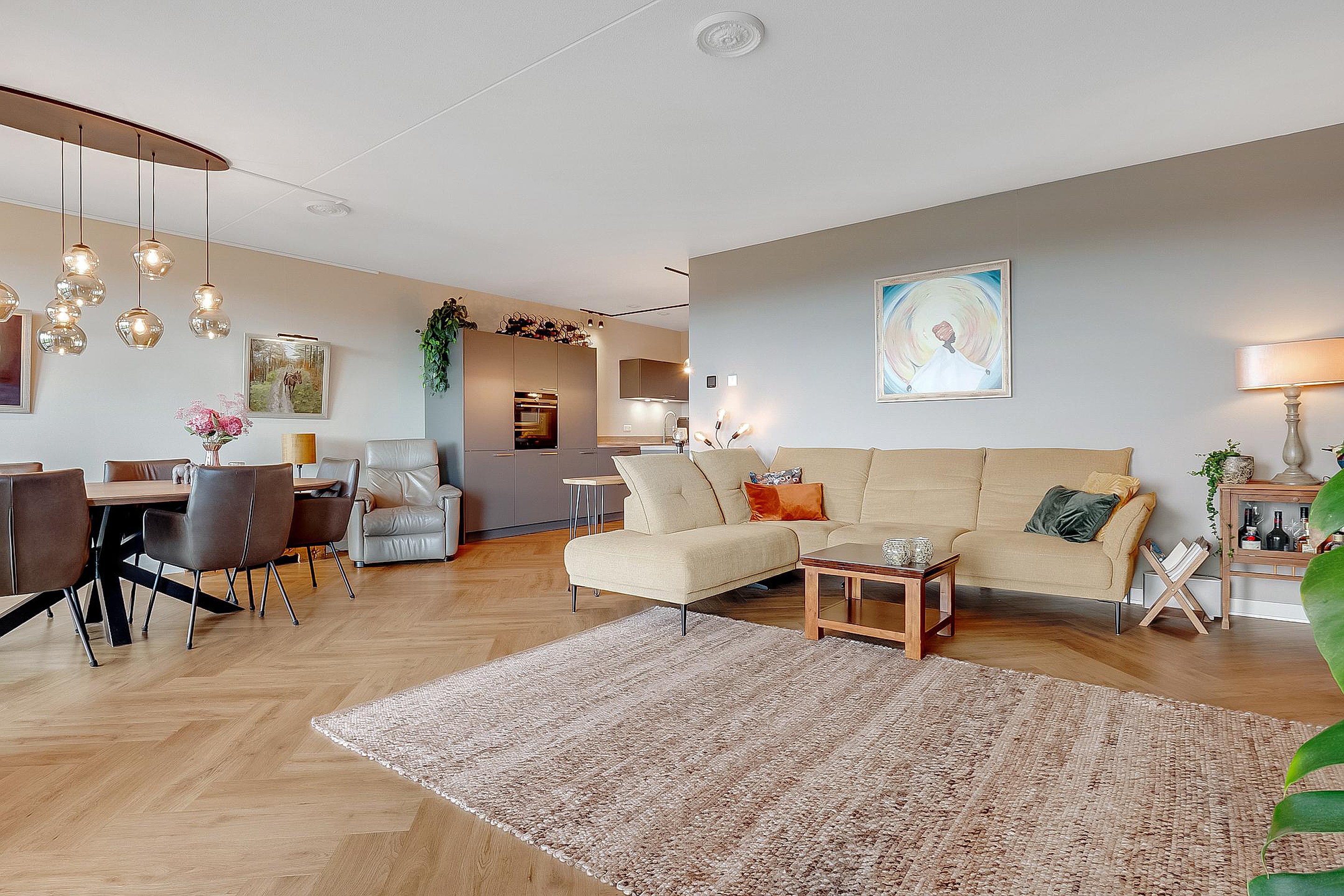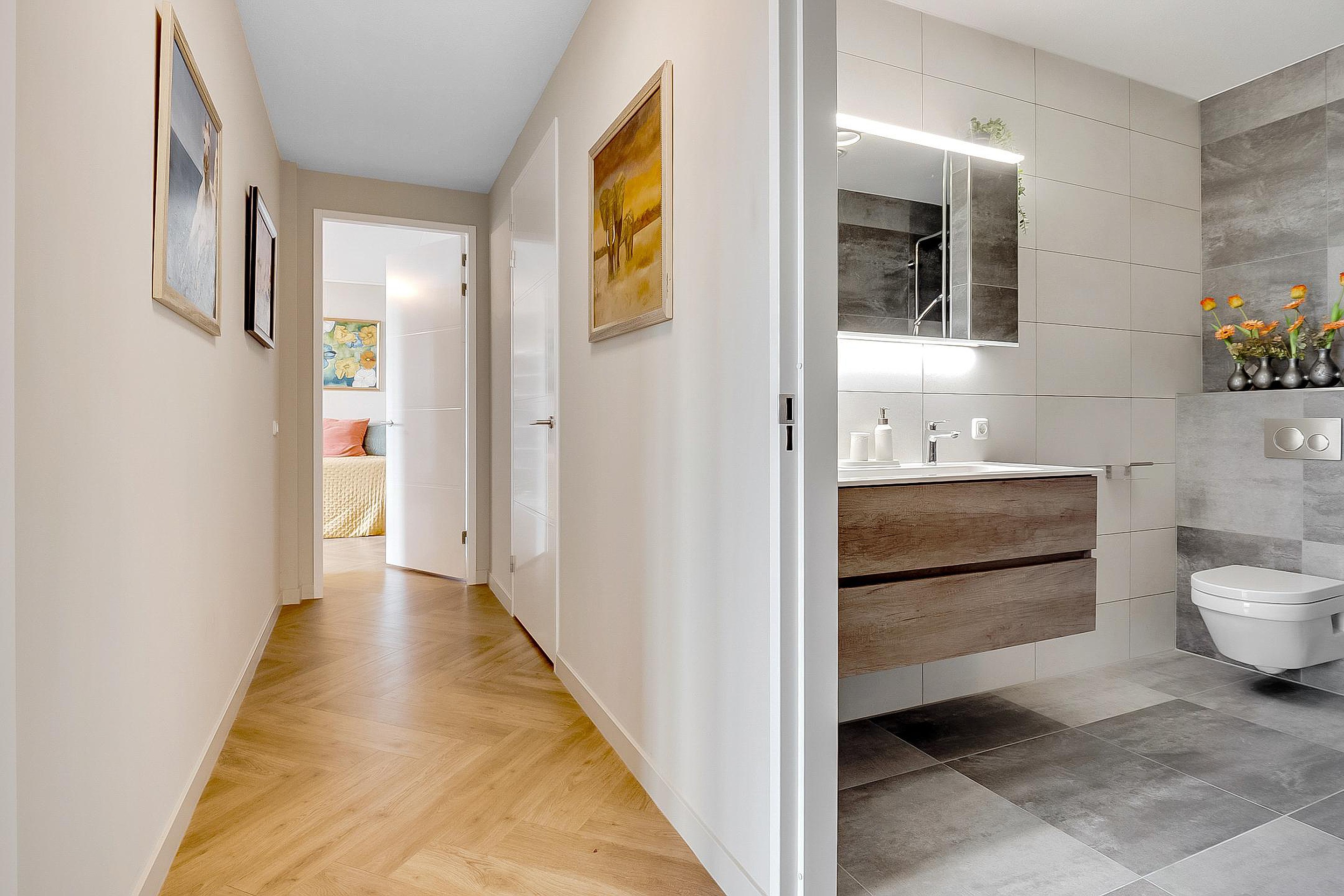 Het appartement wordt verwarmd d.m.v. vloerverwarming en is geheel voorzien van een prachtige visgraat pvc-vloer. Het is ook mogelijk om de vloer te koelen.