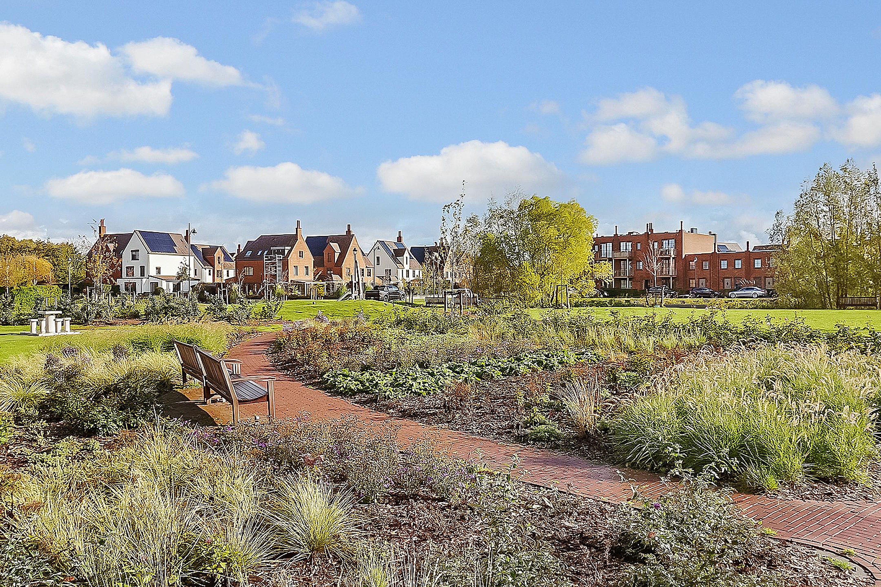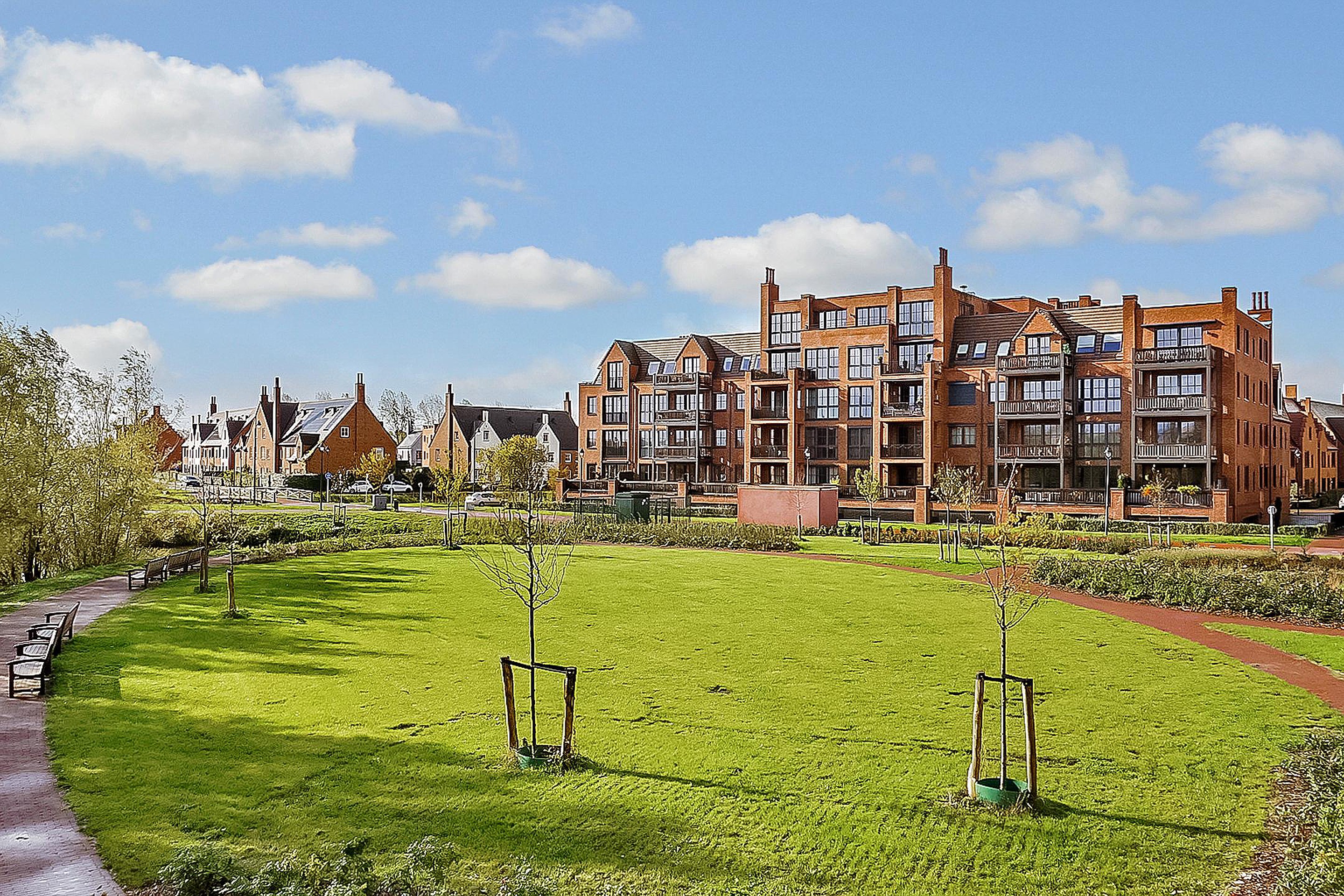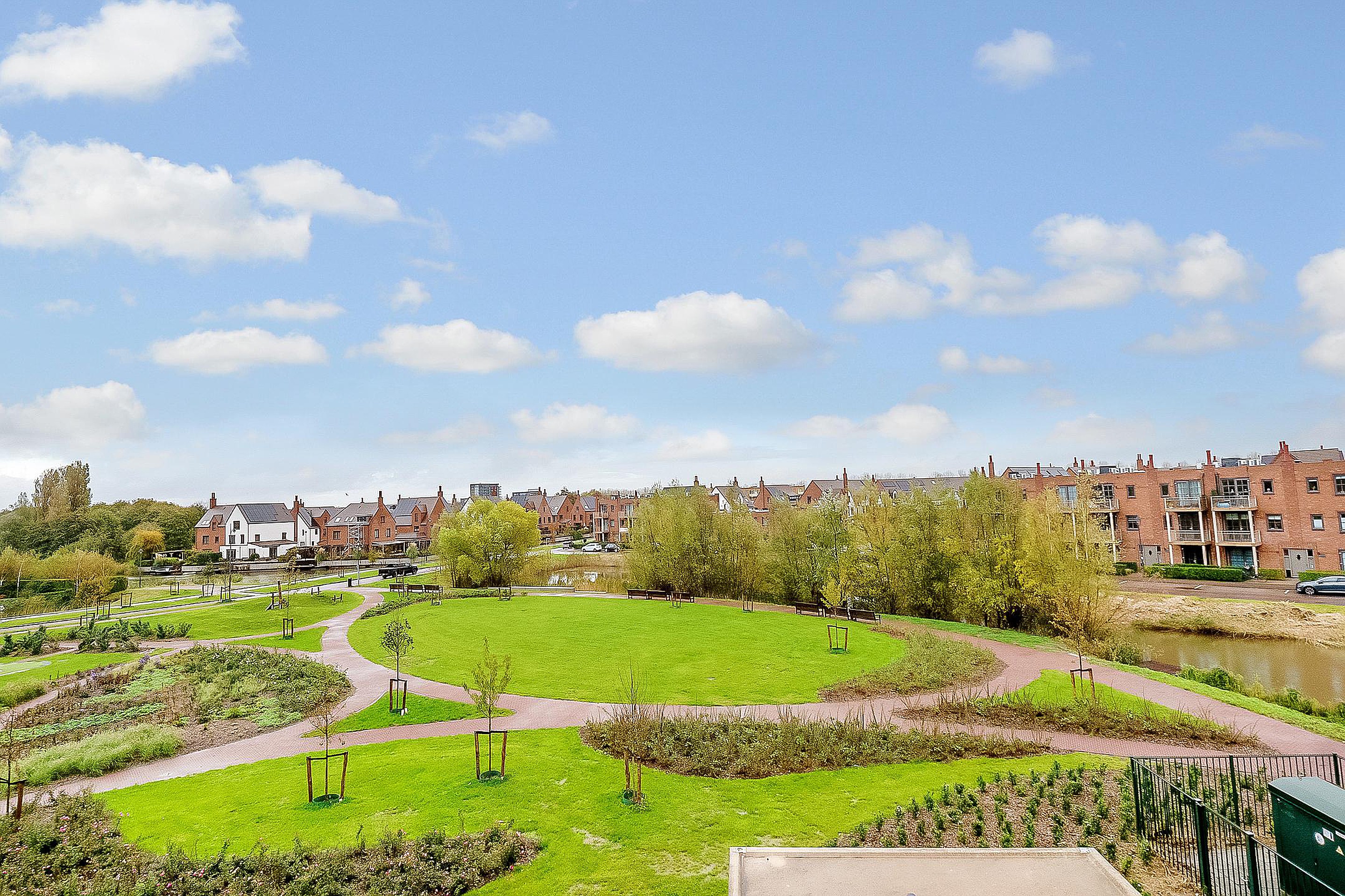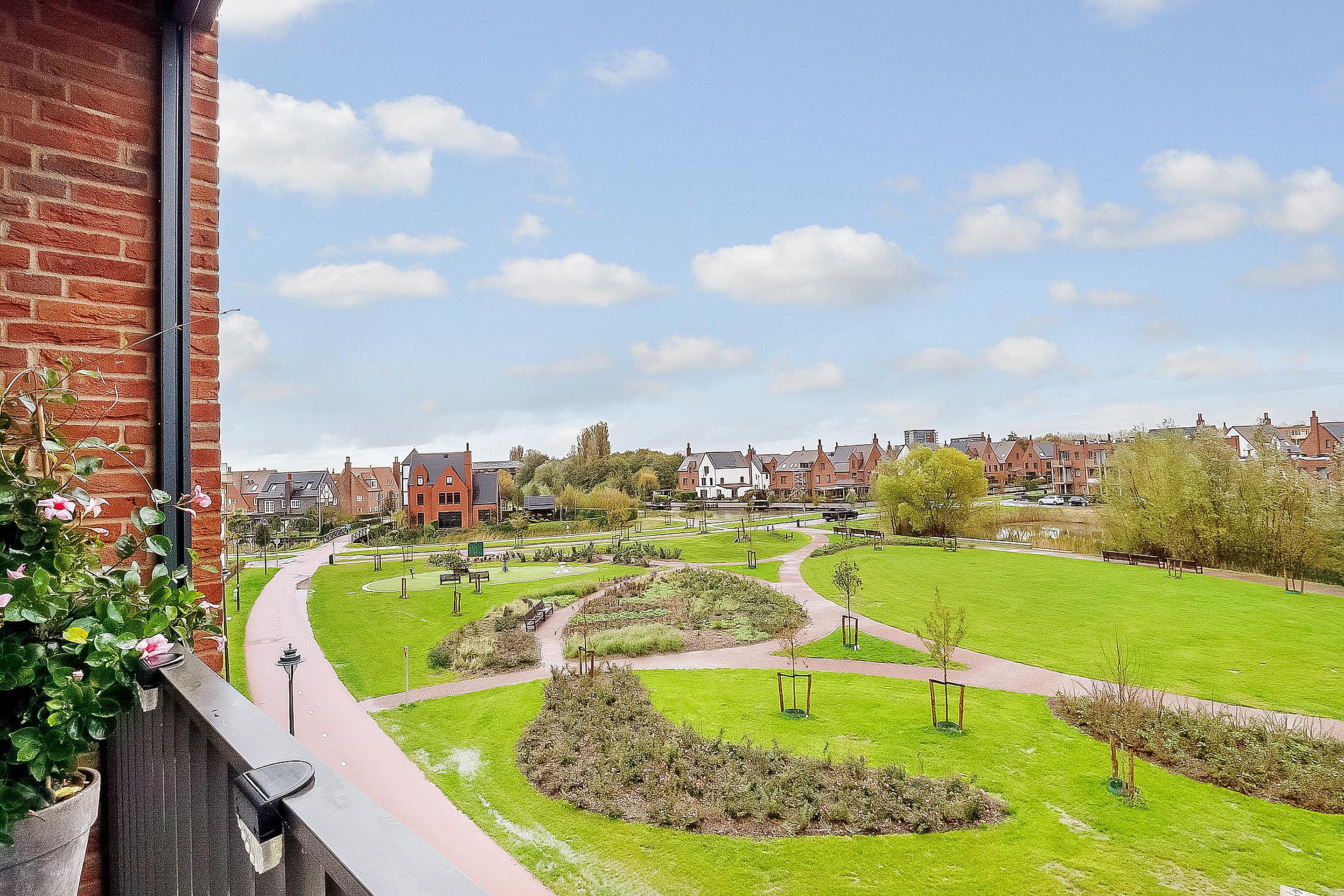 Het zonnige balkon en het uitzicht op de ‘Engelse siertuin’ benadrukt de ruim opgezette woonomgeving.