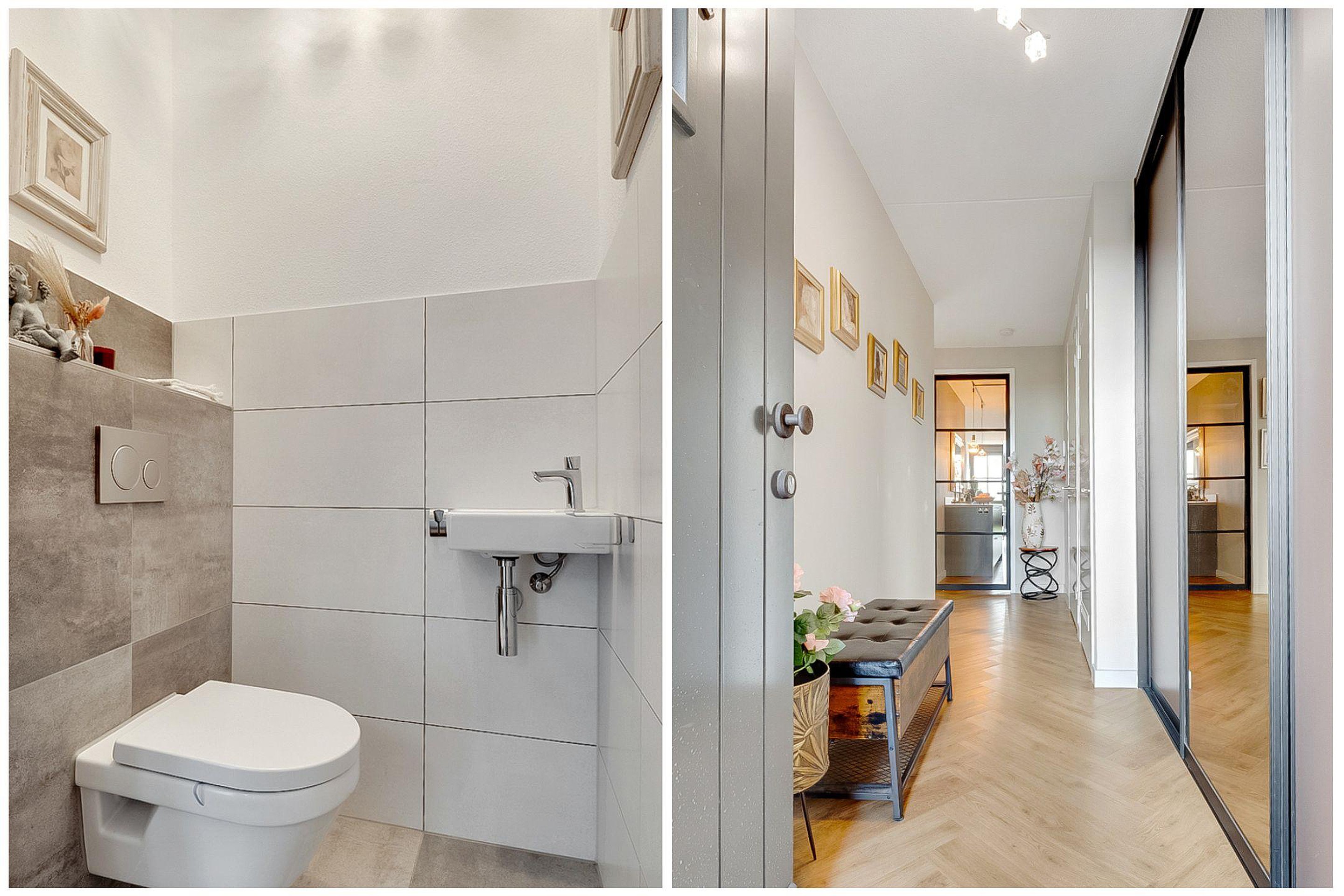 Entree, hal, meterkast, garderobekast, toilet en gang met toegang tot alle vertrekken.