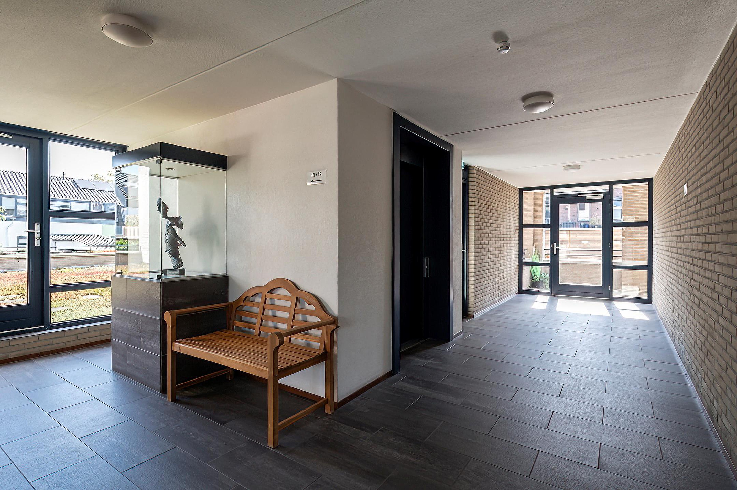 Begane grond Centrale entree met de postboxen, het bellentableau met intercomsysteem, het trappenhuis en de lift. Net als de rest van het complex ziet de entree er keurig verzorgd uit.