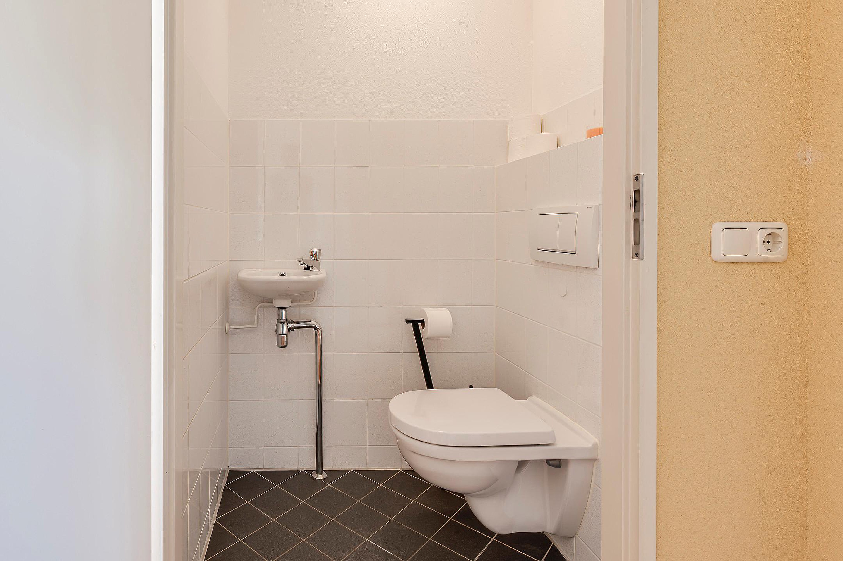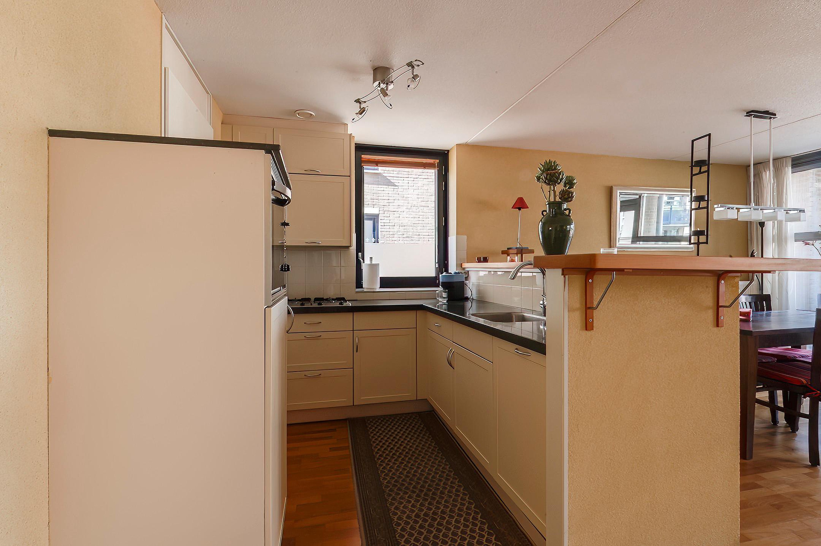 Aansluitend vind je de half-open keuken, voorzien van een inductiekookplaat, afzuigkap en een vaatwasser. Vanuit de keuken is de inpandige berging te bereiken. Hier treffen we de witgoed aansluitingen en de opstelling van de HR CV combiketel aan.