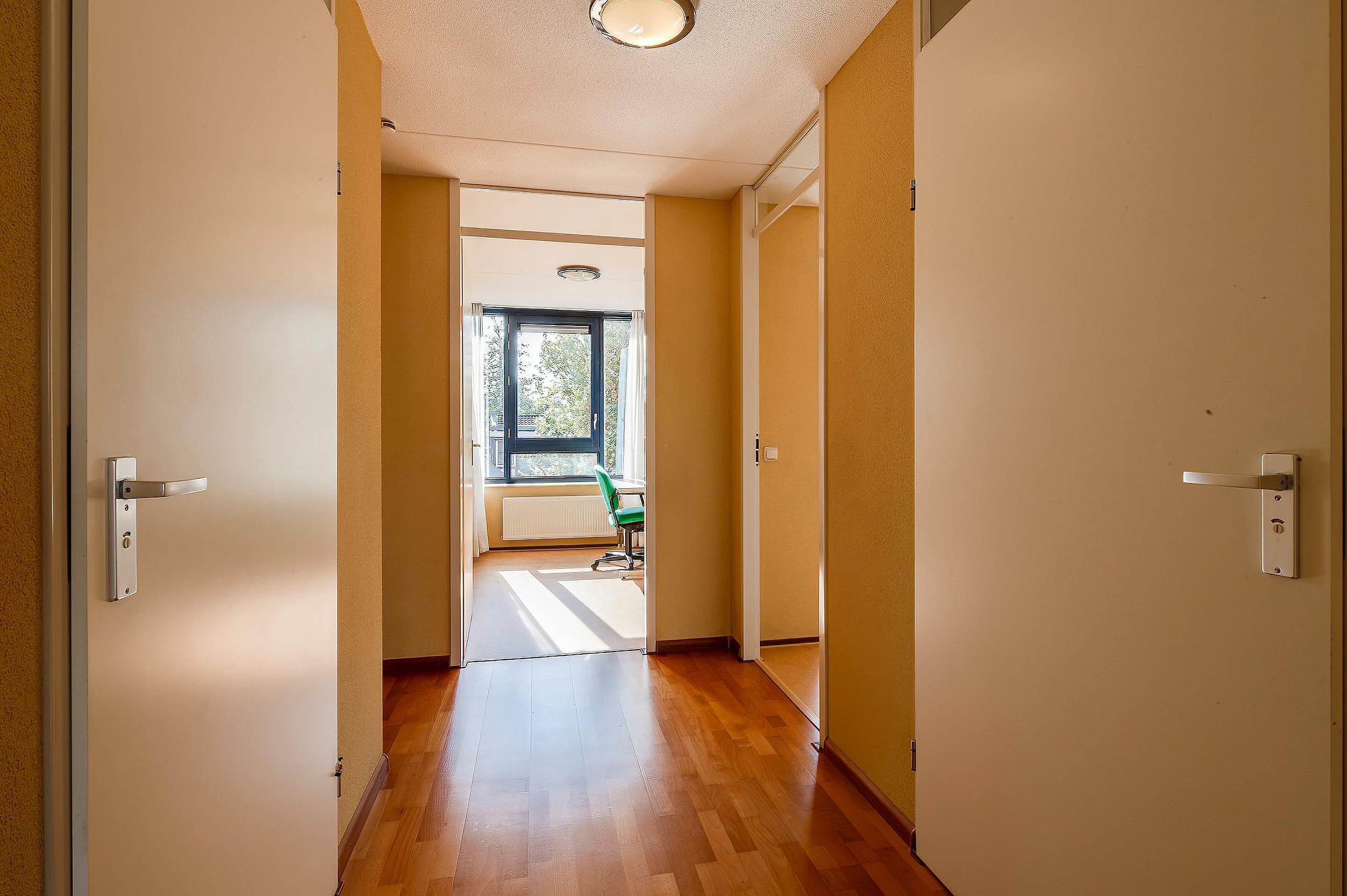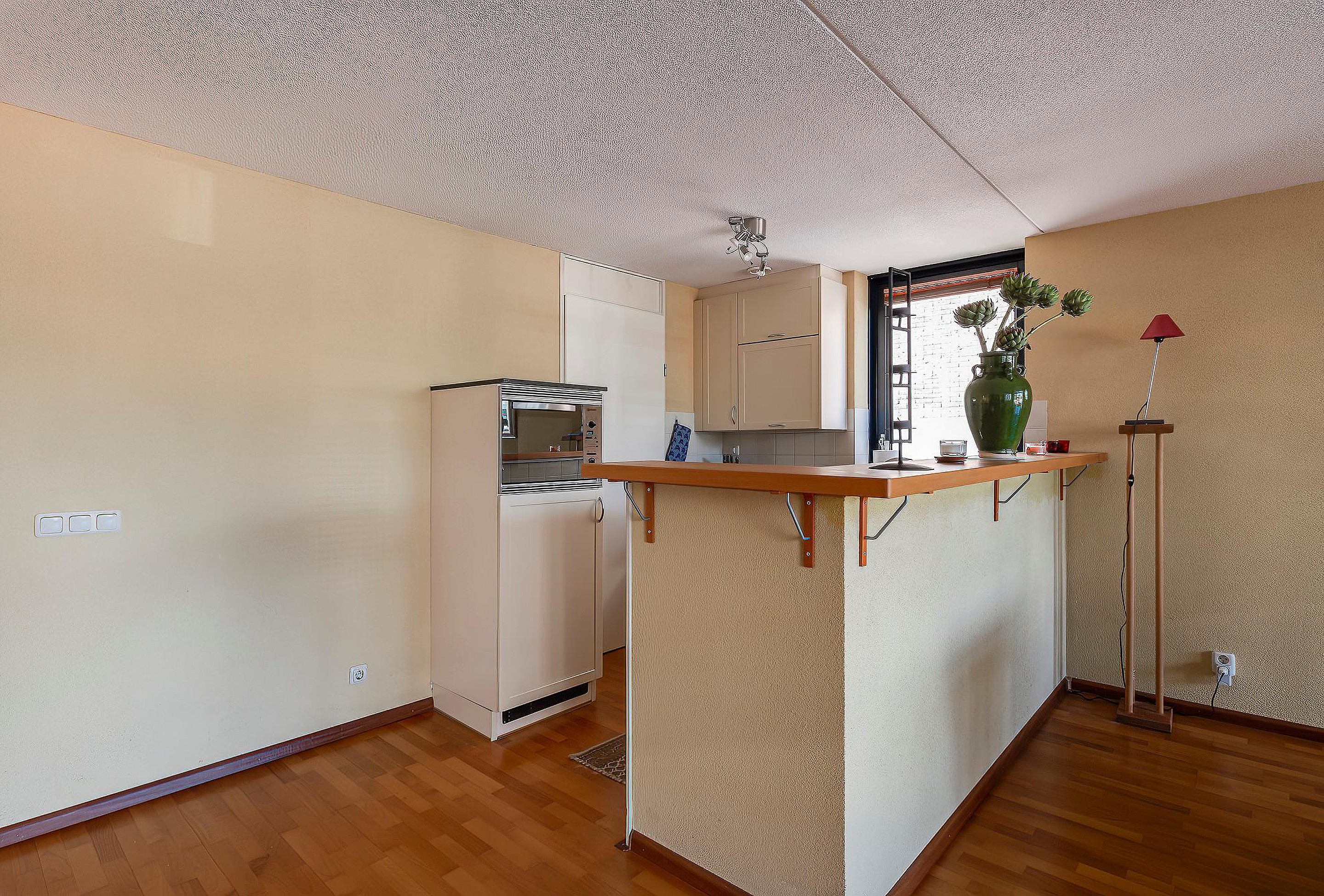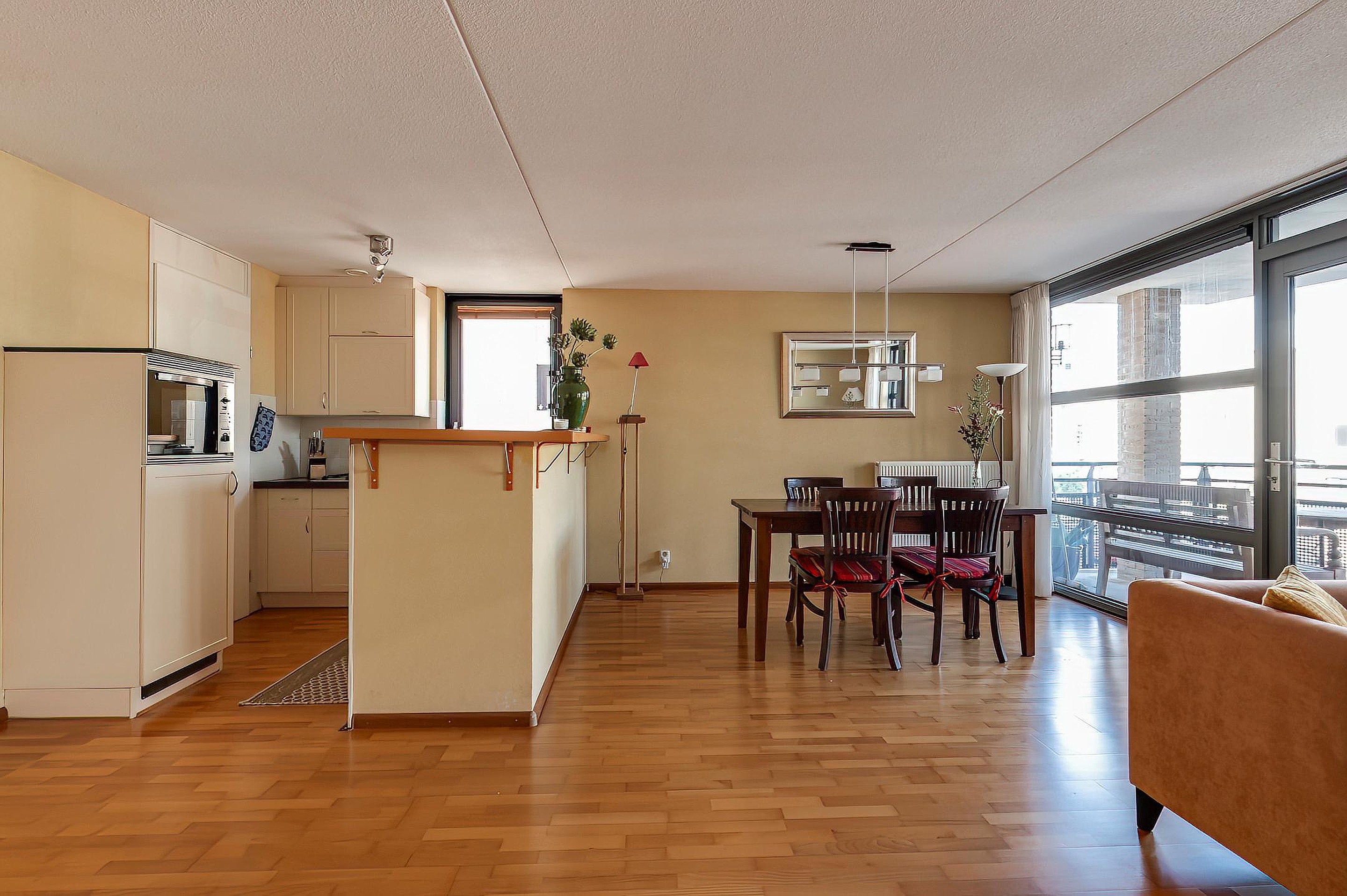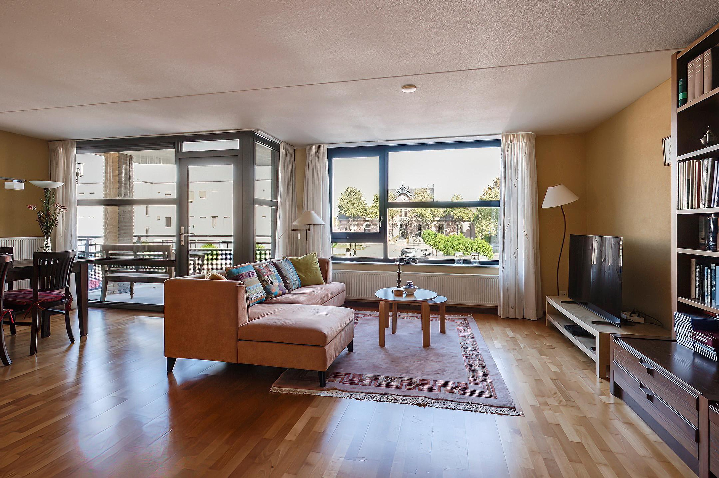 De lichte woonkamer biedt een fraai uitzicht en geeft toegang tot een heerlijk balkon met hetzelfde fraaie uitzicht als de woonkamer. Het appartement bevindt zich op de eerste verdieping en is bereikbaar met de lift, wat het perfect maakt voor senioren.