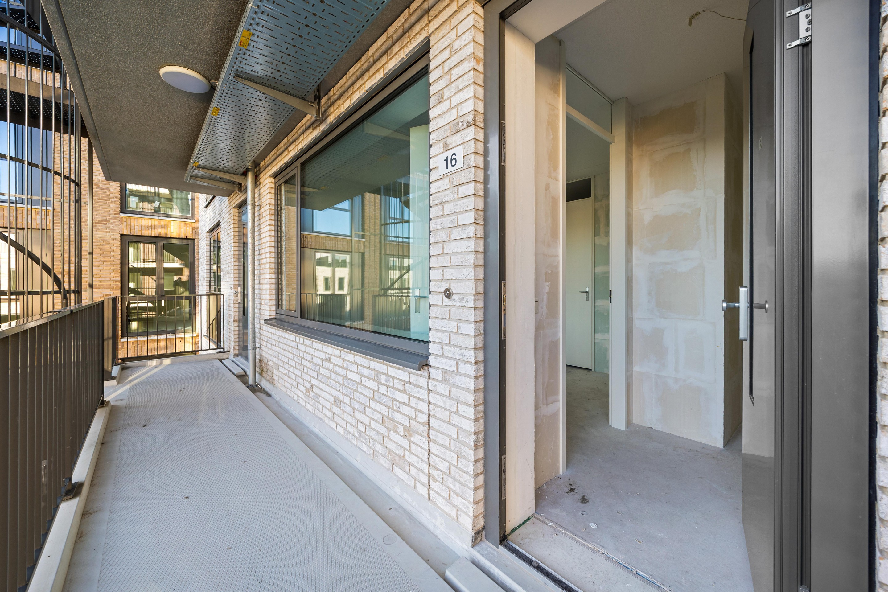 U komt met de lift of de trap naar de tweede verdieping. Via de korte galerij komt u bij de woning. U stapt binnen in een ruime hal met meterkast. Vanuit de hal kunt u naar de ruime slaapkamer met badkamer en het aparte toilet. De badkamer heeft een inloopdouche met luxe glazen douchescherm en een wastafel. Het toilet bereikt u vanuit de hal en is voorzien van een fonteintje.