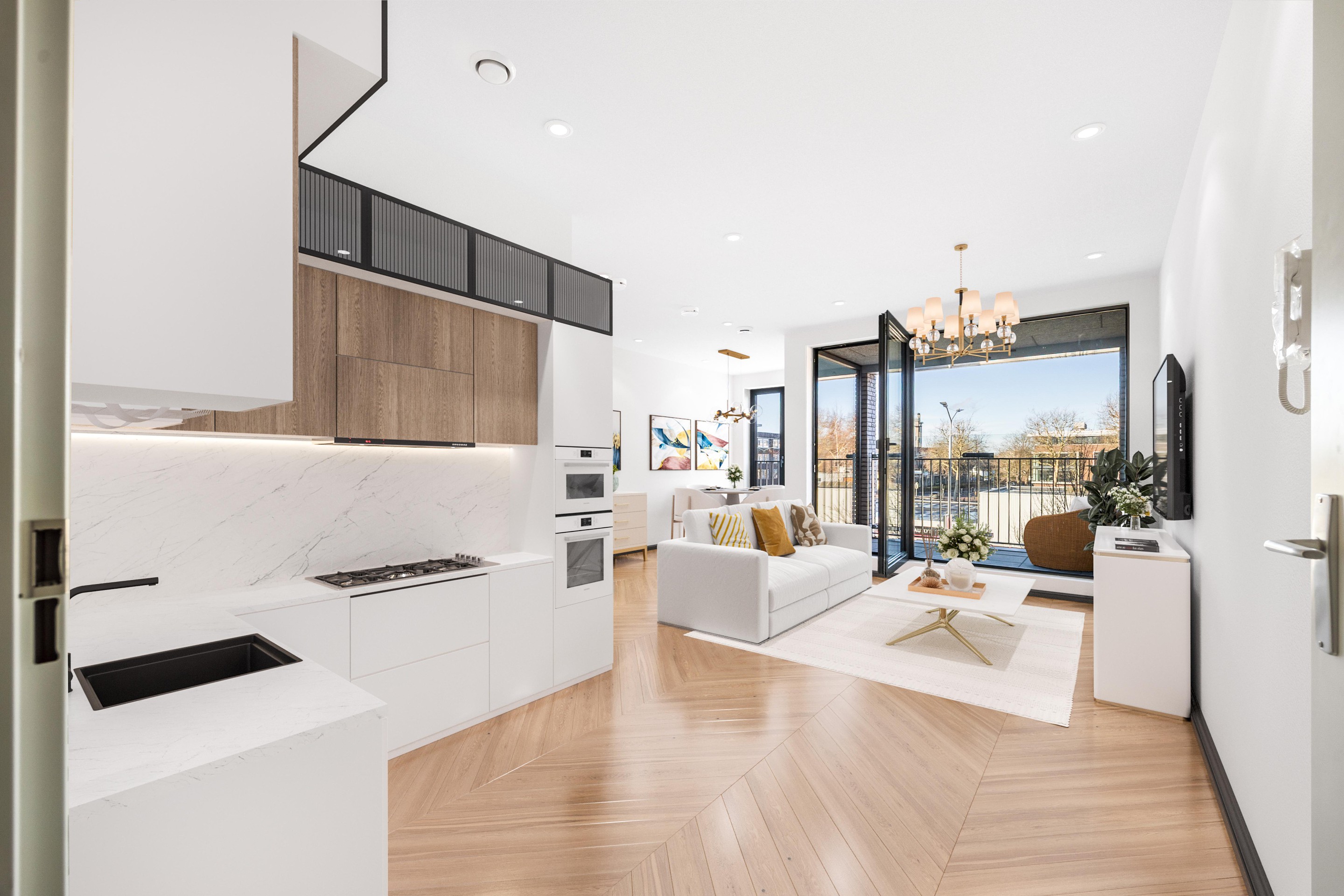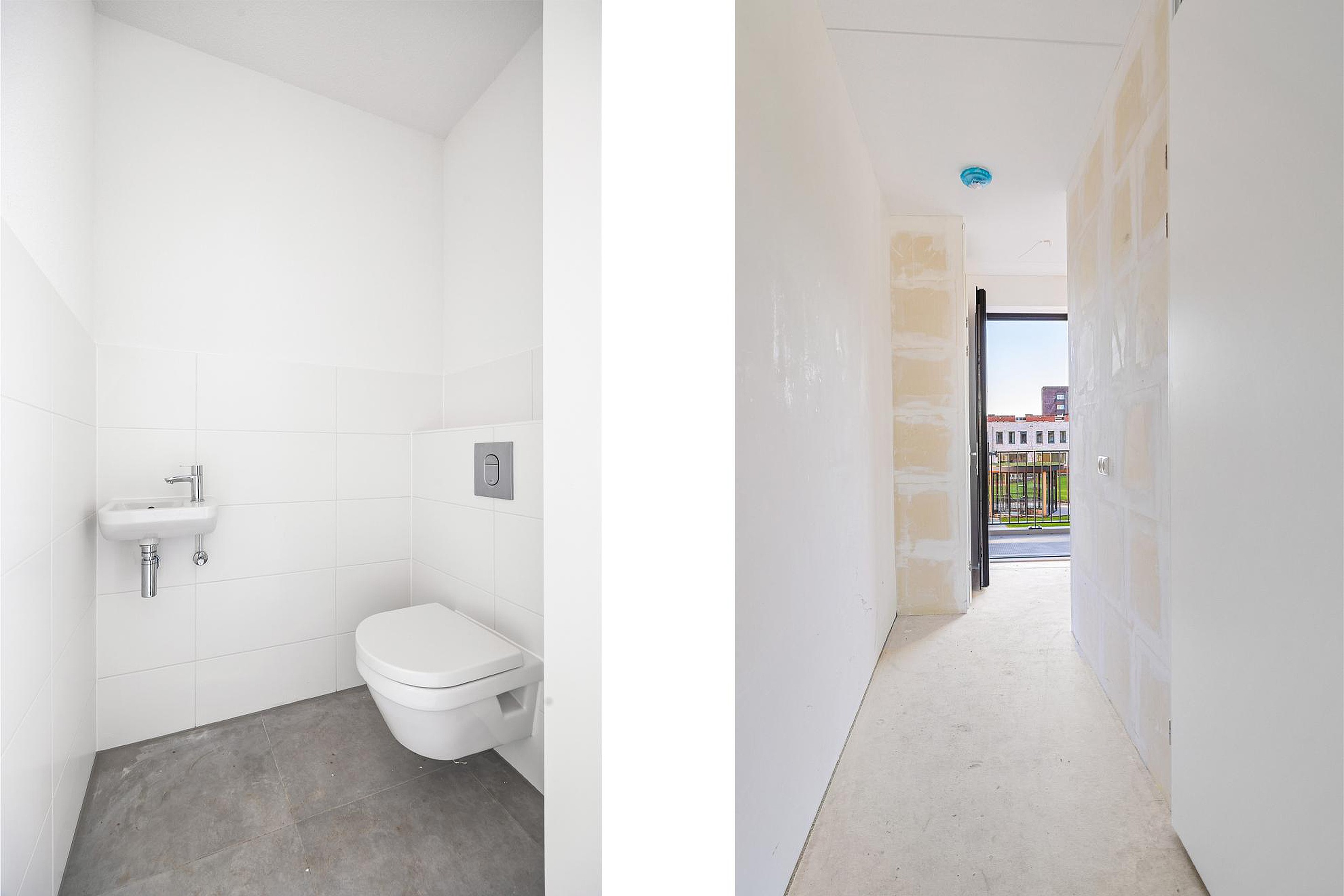 De ruime woonkamer heeft de mogelijkheid voor een luxe open keuken. De bijkeuken/berging biedt plek voor de warmtepomp, WTW installatie, wasmachine, droger en bergruimte. Het balkon ligt op het zuidwesten en heeft middag en avondzon. Daarnaast is er een volledig aangelegde gemeenschappelijk binnentuin waar u als bewoner gebruik van kunt maken.