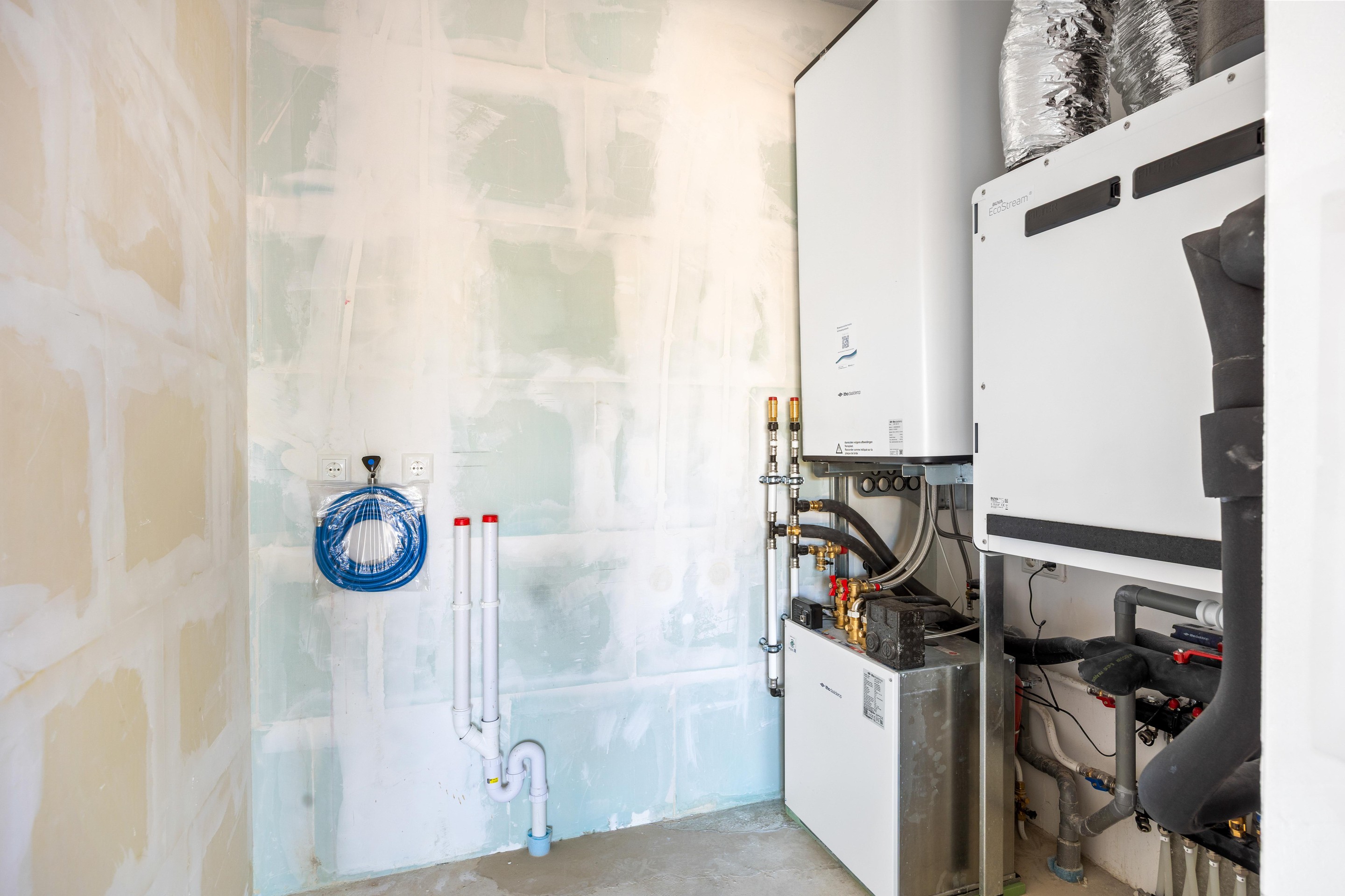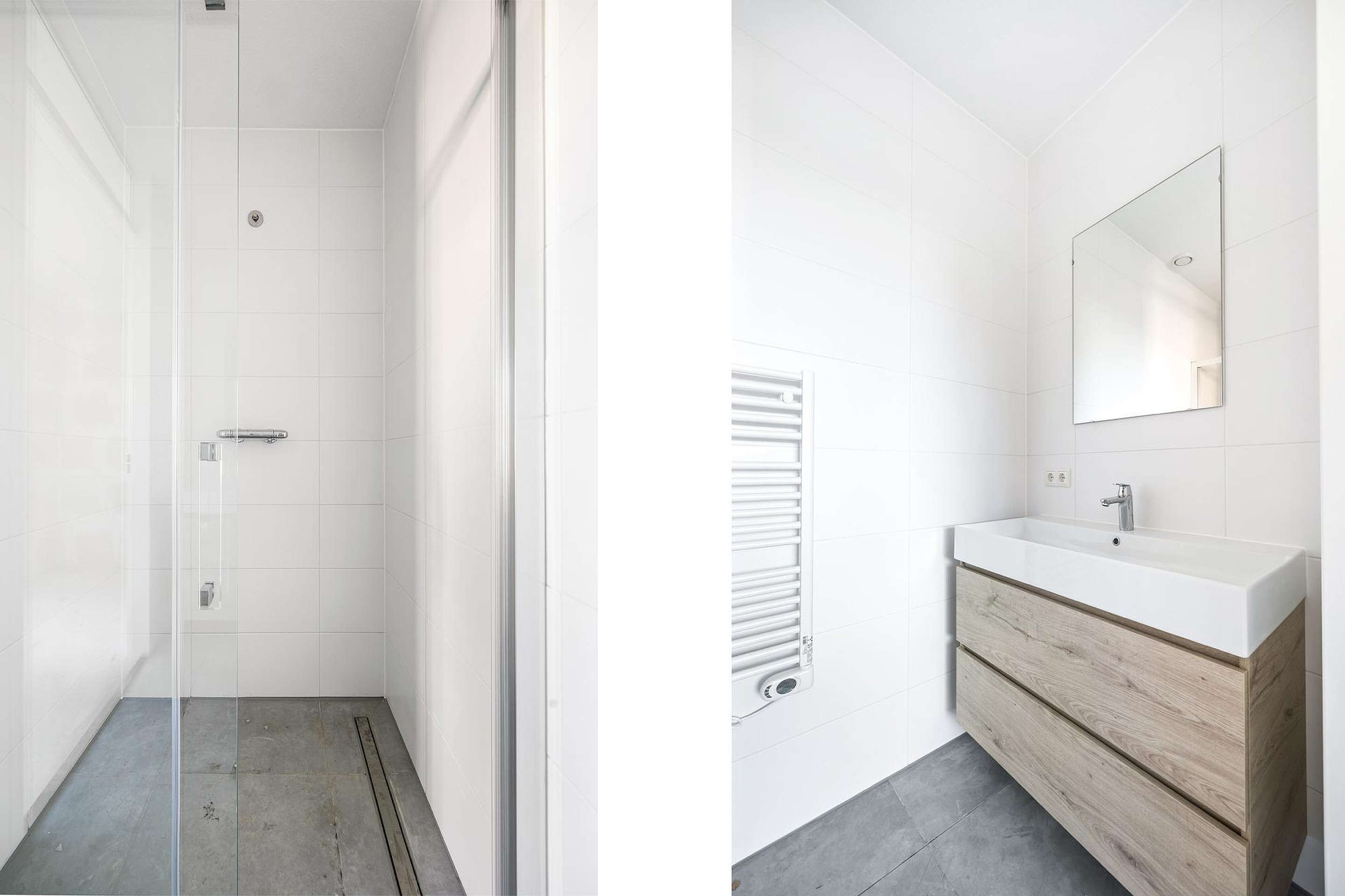 - Vloer wordt onafgewerkt opgeleverd (met uitzondering van de betegelde ruimtes).