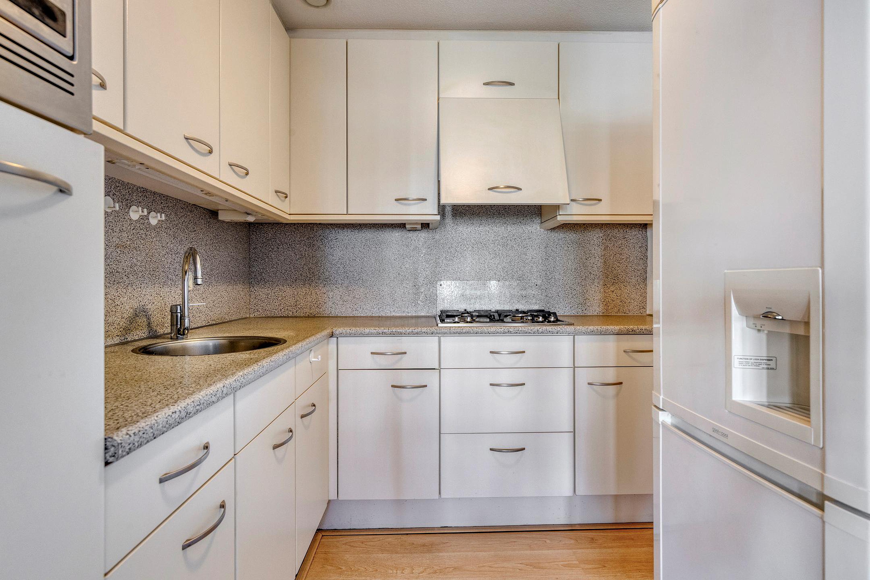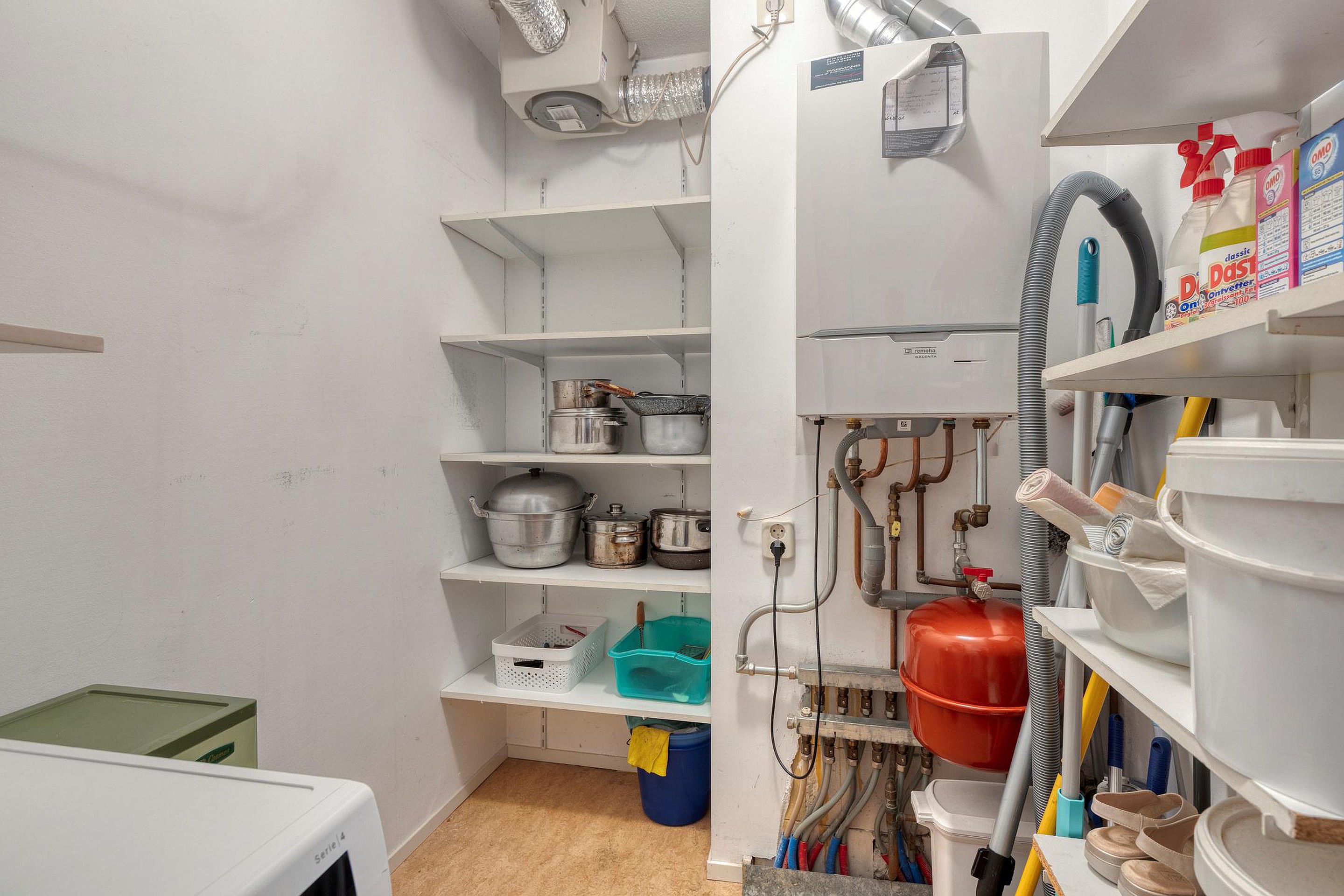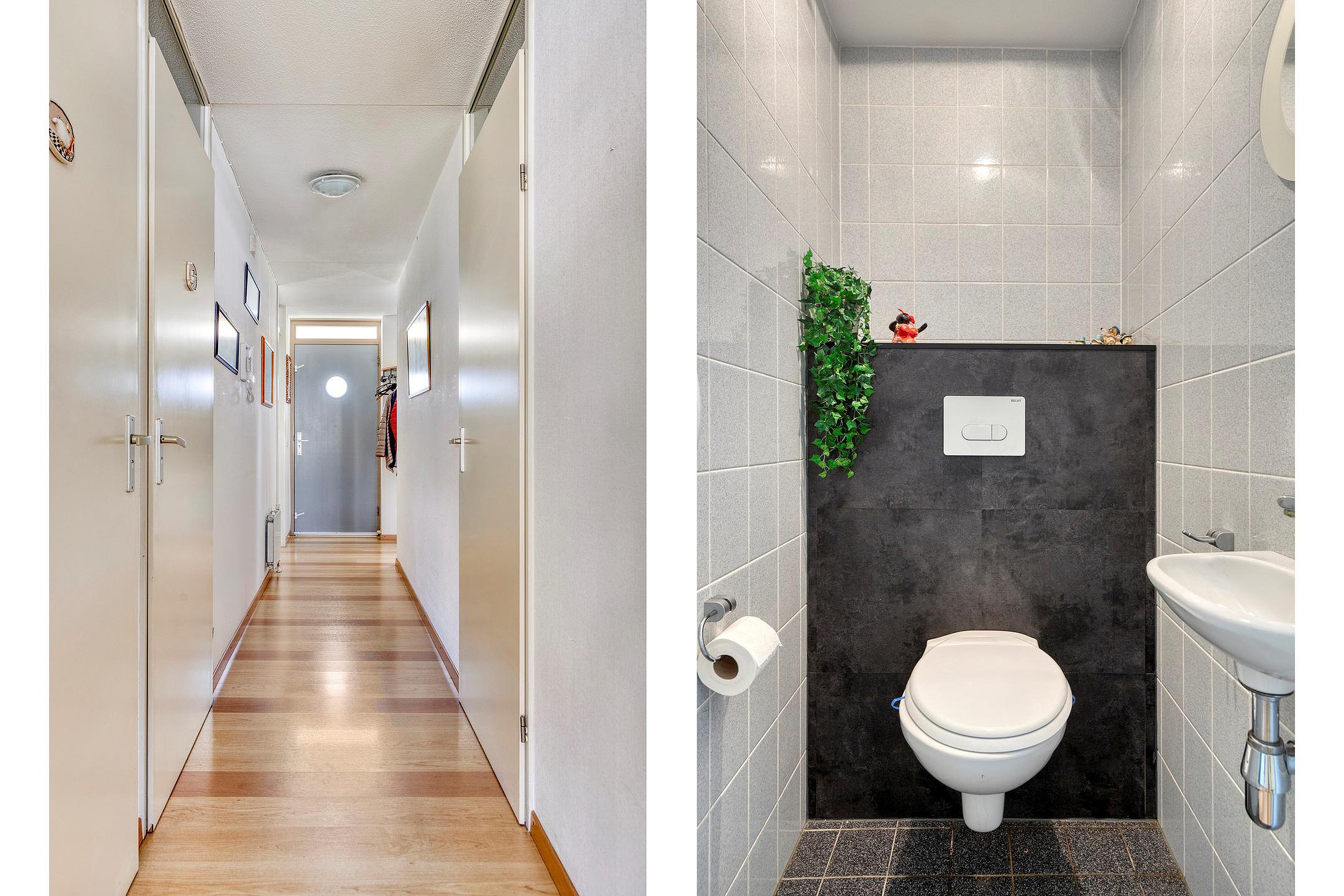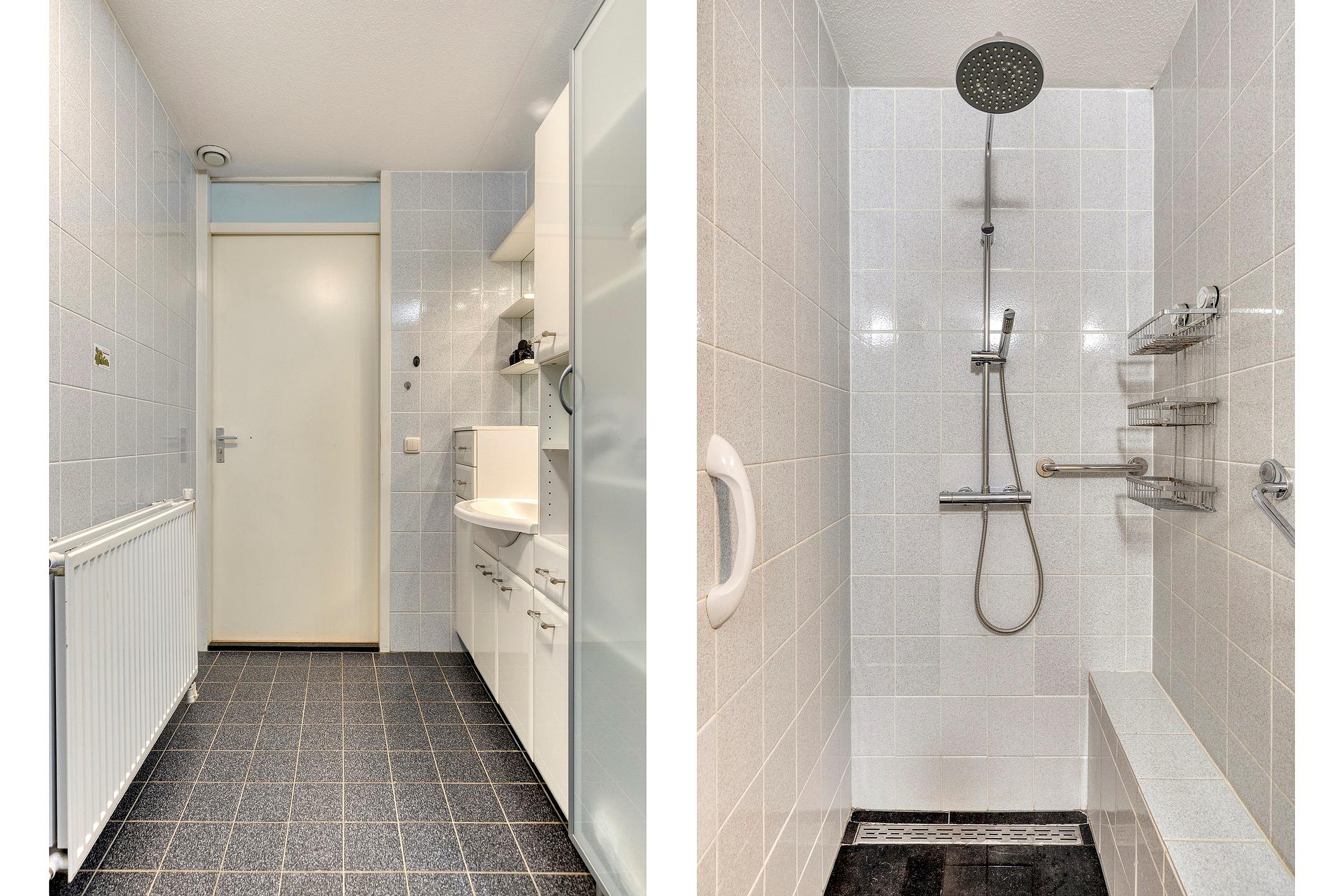 Vanuit de gang is er verder toegang tot de overige ruimten. Een praktische bijkeuken/technische ruimte (ca. 4m2), alwaar zich de aansluitpunten voor het witgoed bevinden, evenals de unit voor de mechanische ventilatie en de opstelling van de Cv-ketel (merk: Remeha Calenta, huur & bouwjaar 2019). De badkamer (ca. 6m2) is geheel betegeld en voorzien van een XL inloopdouche, wastafelmeubel met wastafel, radiator en mechanische ventilatie. Naast de badkamer bevindt zich een separaat toilet (ca. 1m2), geheel betegeld en voorzien van een wandcloset en een fonteintje. Aan de galerijkant bevinden zich 2 slaapkamers (respectievelijk ca. 14 en 8m2), welke voorzien zijn van hardhouten kozijnen met isolerende beglazing en rolluiken.