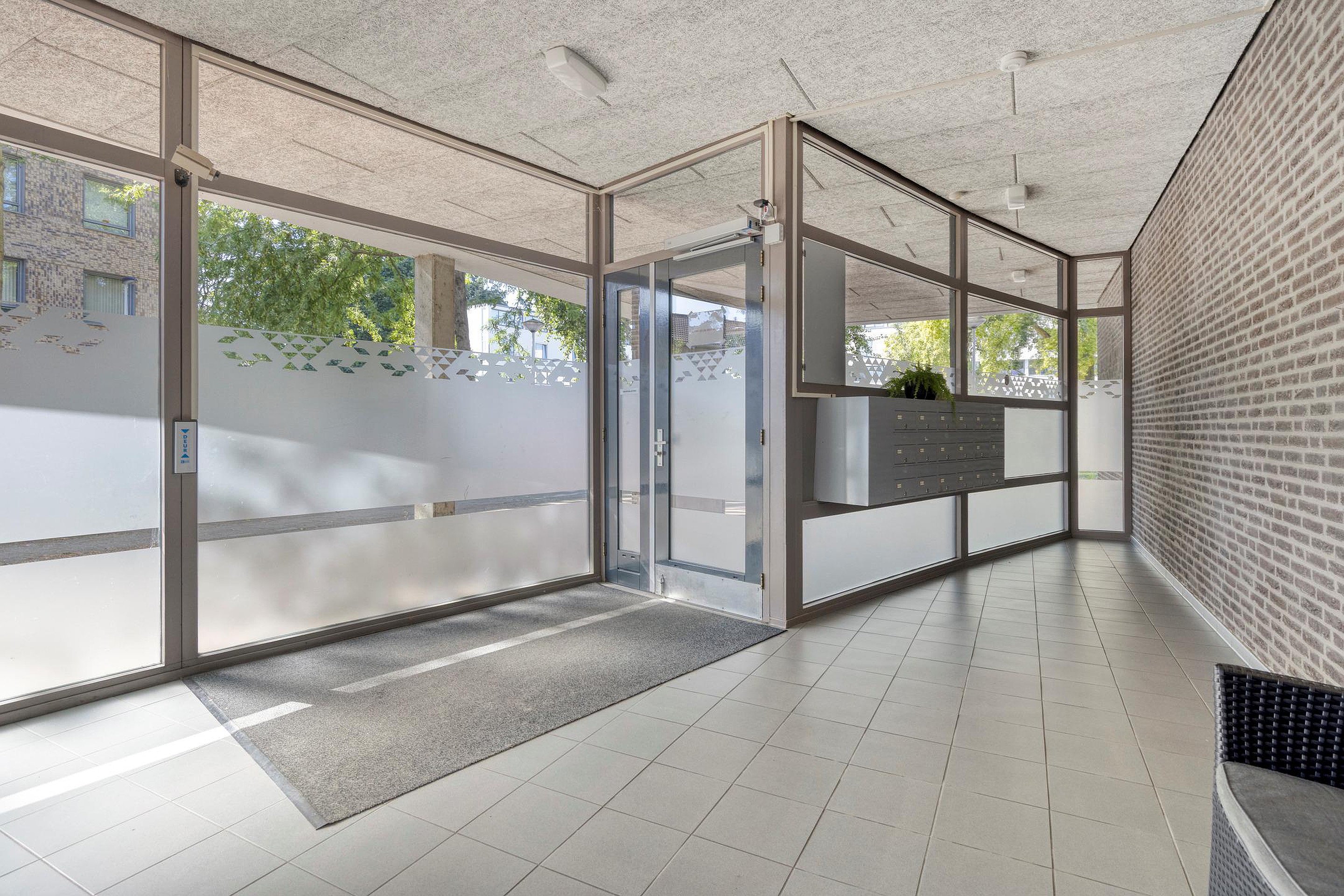 Overdekte entree met bellentableau, brievenbussen en video-intercominstallatie. Representatieve statige ontvangsthal met toegang tot zowel het trappenhuis als de lift. Op het achterliggende, afgesloten terrein bevindt zich een eigen parkeerplaats (A13), welke behoort tot het te koop aangeboden object. Het terrein kan geopend en afgesloten worden met een automatisch bedienbare toegangspoort.