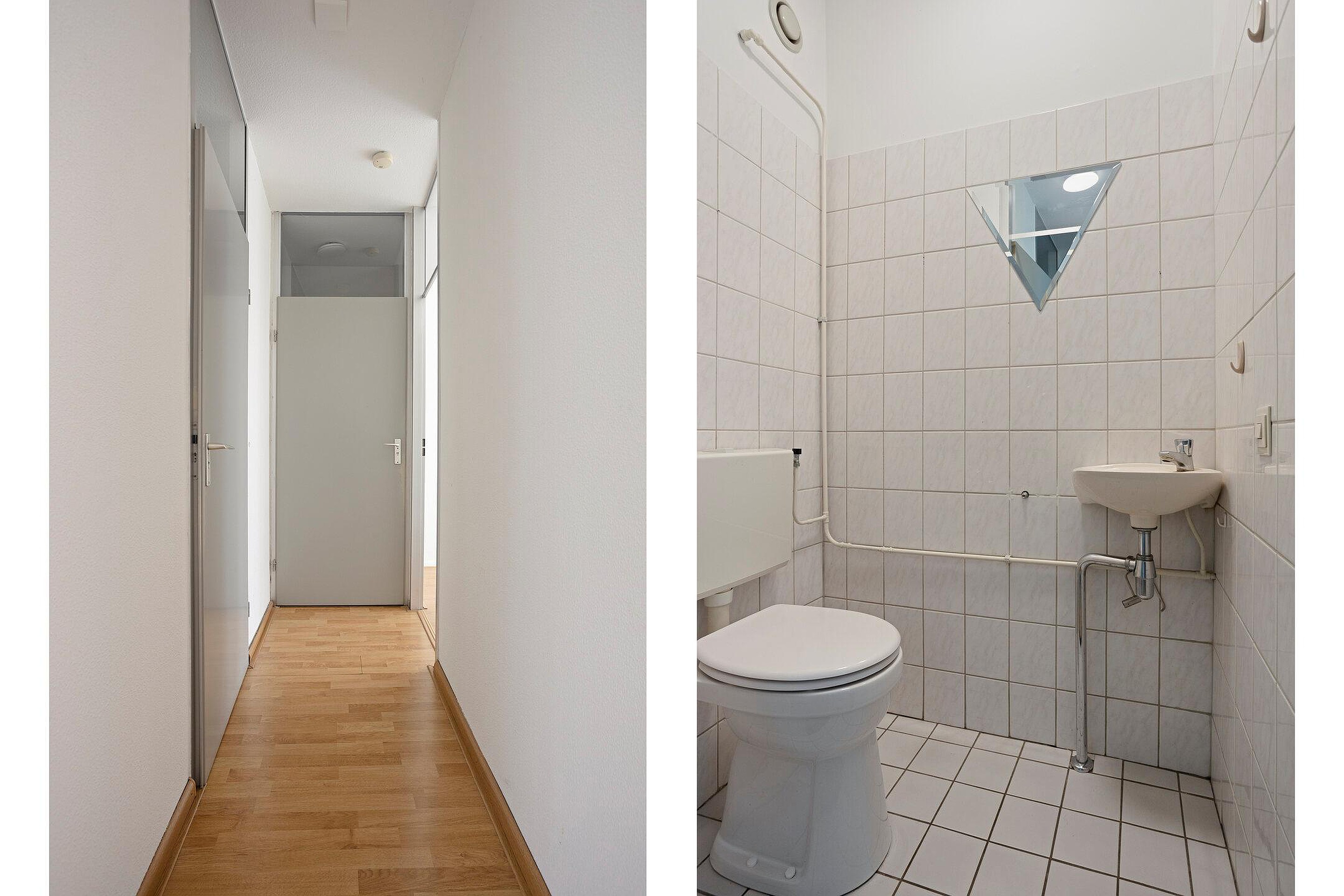 Via het centrale entreegedeelte bereikt u de brievenbussen, het bellentableau, de intercom en het kantoor van de huismeester. Hier heeft u toegang tot het trappenhuis én de lift, waarmee u comfortabel de tweede verdieping bereikt.