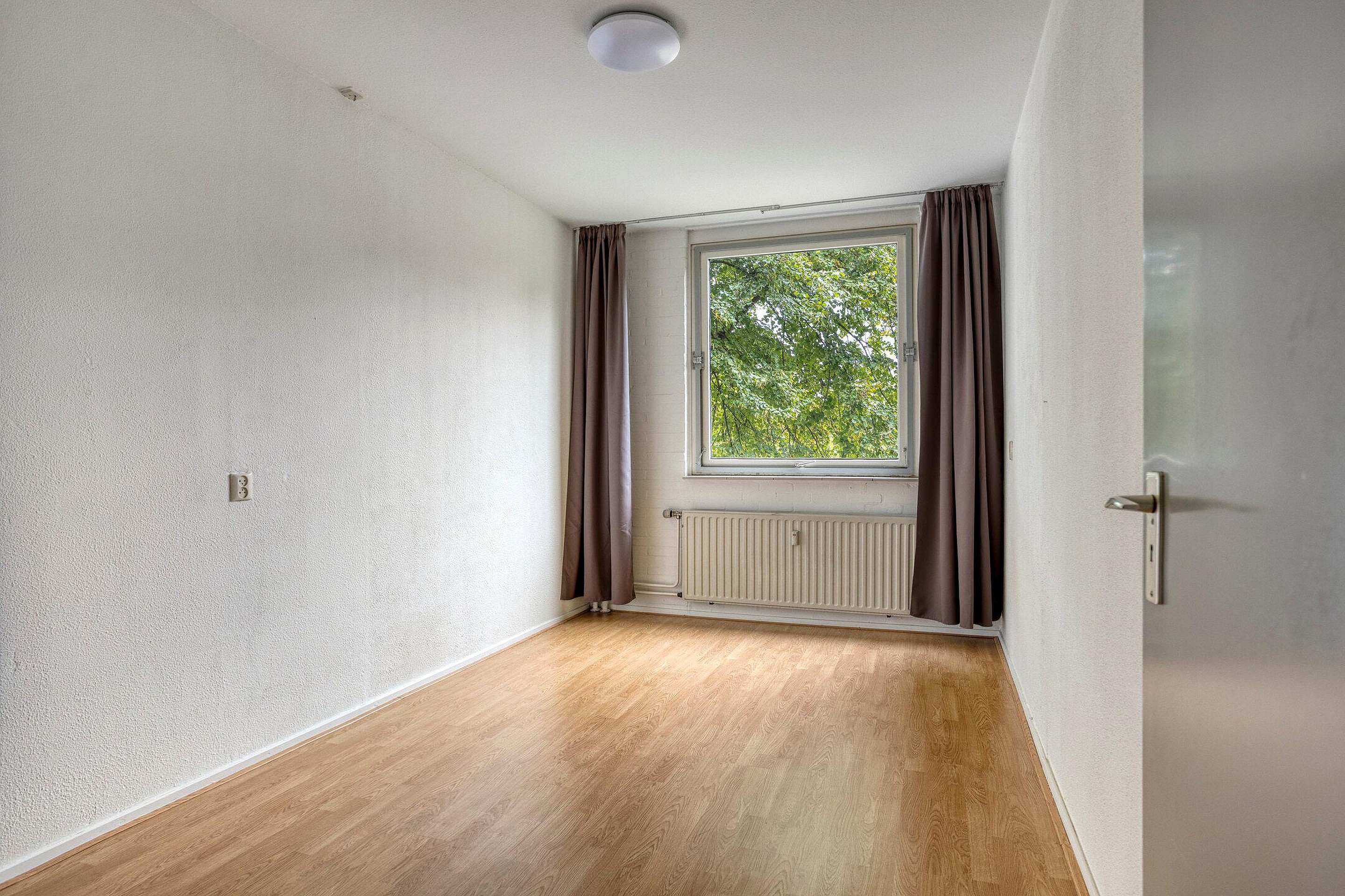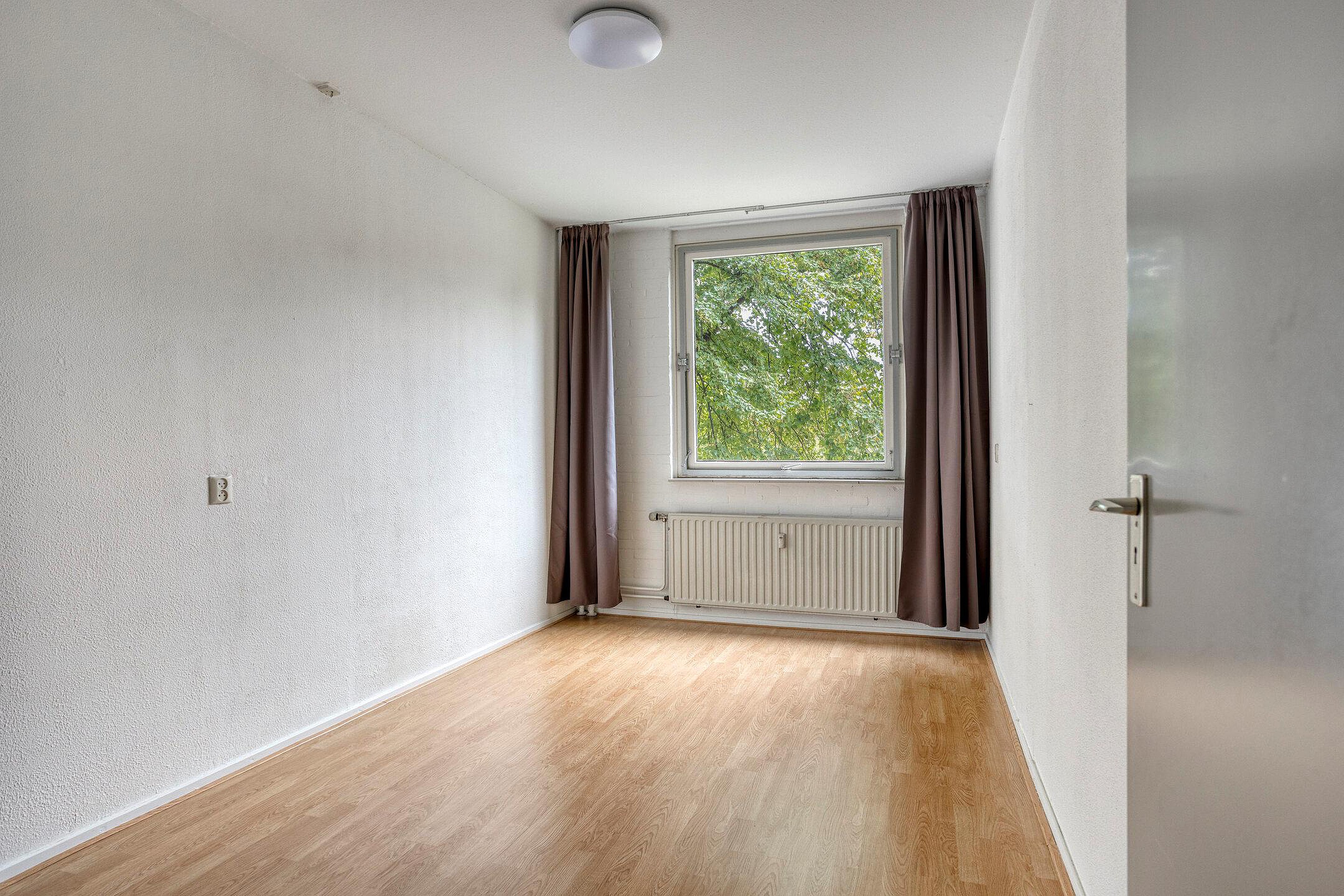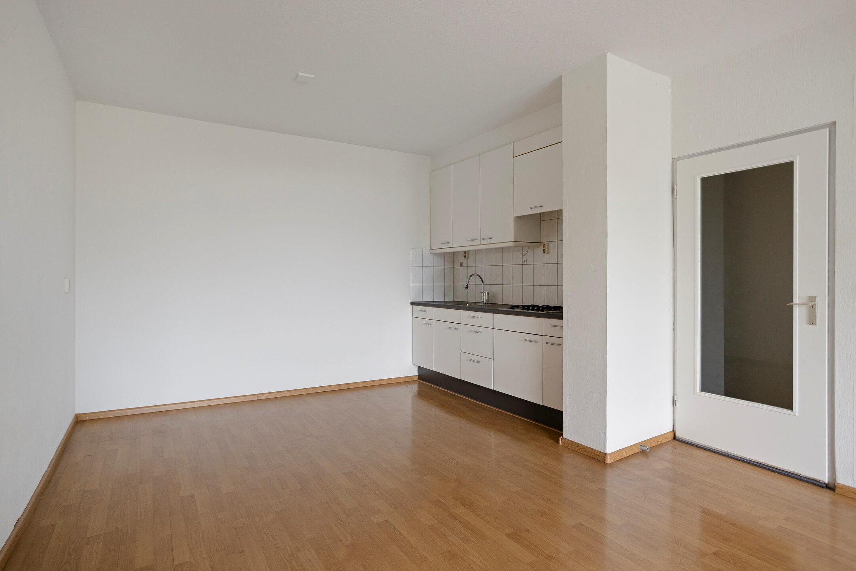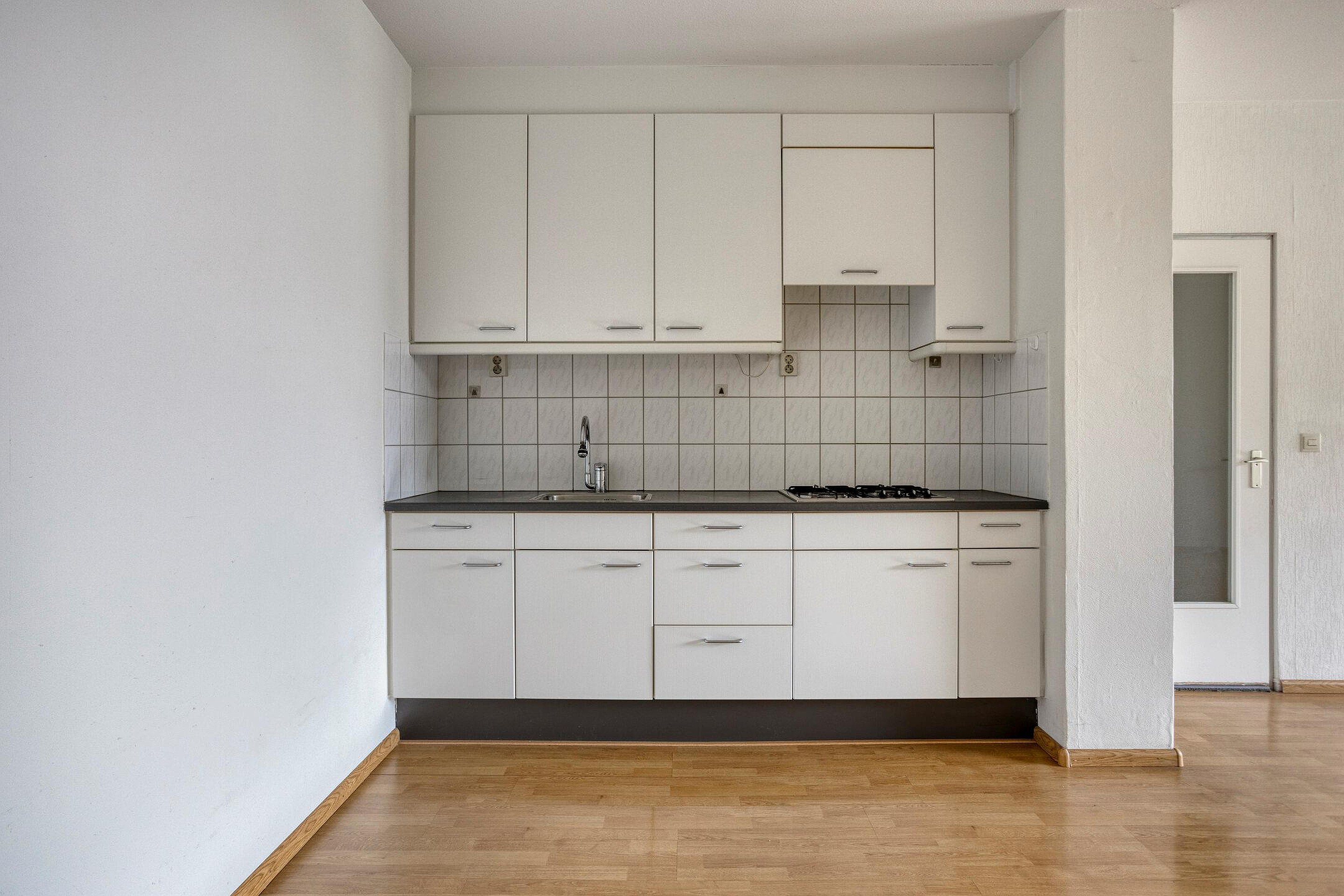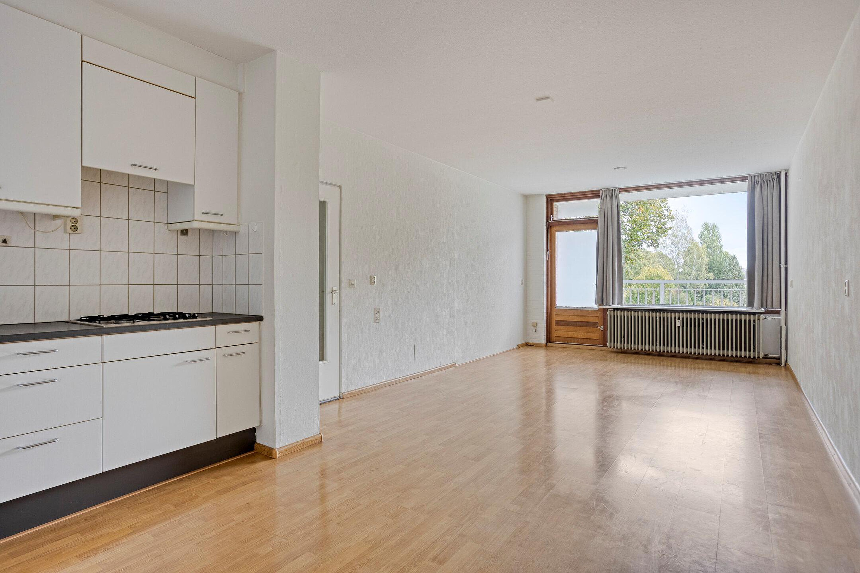 De lichte woonkamer met open keuken vormt het hart van de woning. Dankzij de grote ramen is het hier aangenaam licht, met een vrij uitzicht richting het groen aan de Aramislaan en Tongerseweg. De open keuken is voorzien van een gaskookplaat, afzuigkap en spoelbak. Vanuit de woonkamer heeft u toegang tot het balkon, dat is gelegen op het noordoosten. Hier kunt u genieten van de ochtendzon en het uitzicht op het groen.