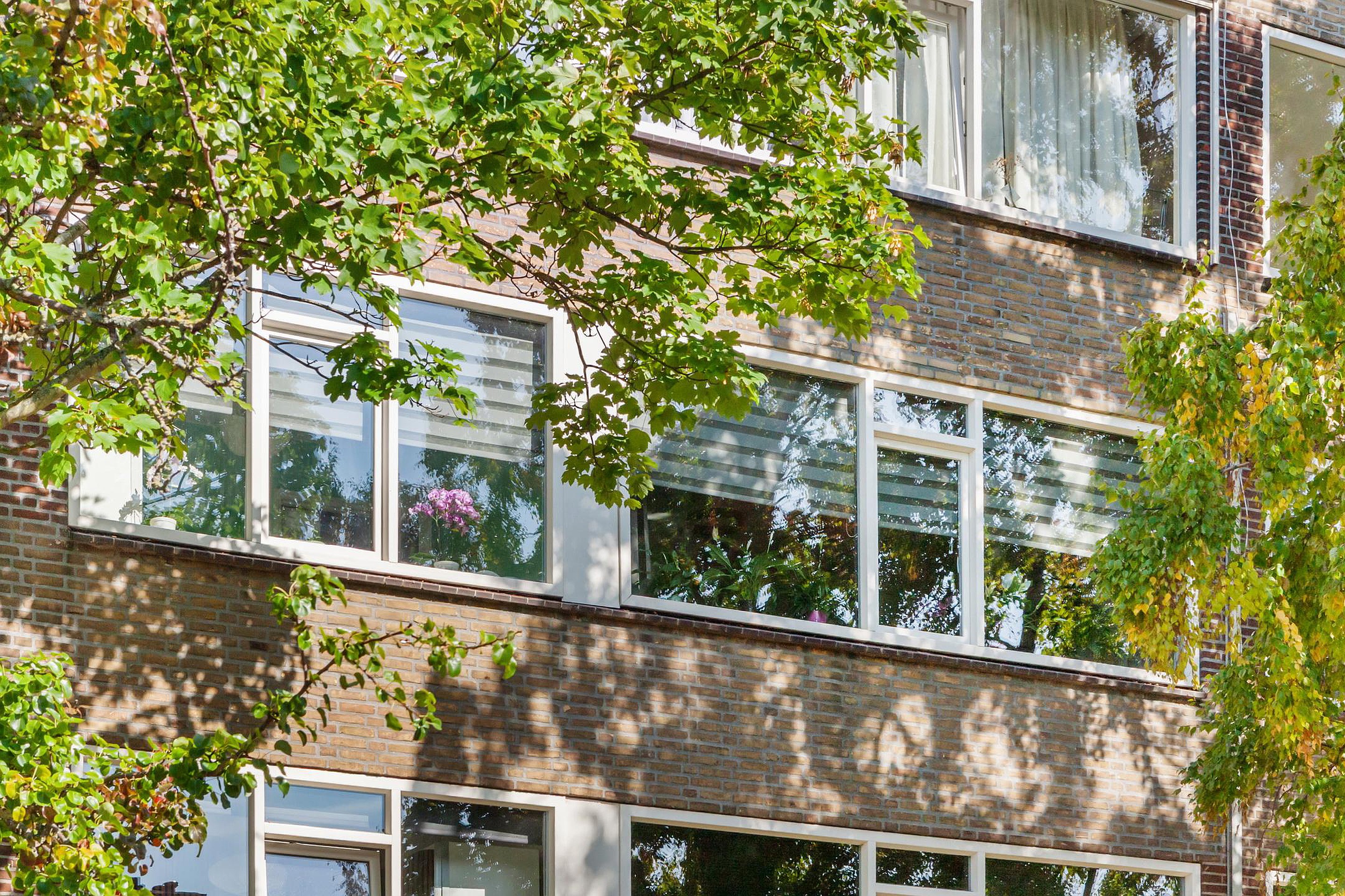 - Voorzijde kunststof kozijnen, achterzijde houten kozijnen; overal dubbel glas