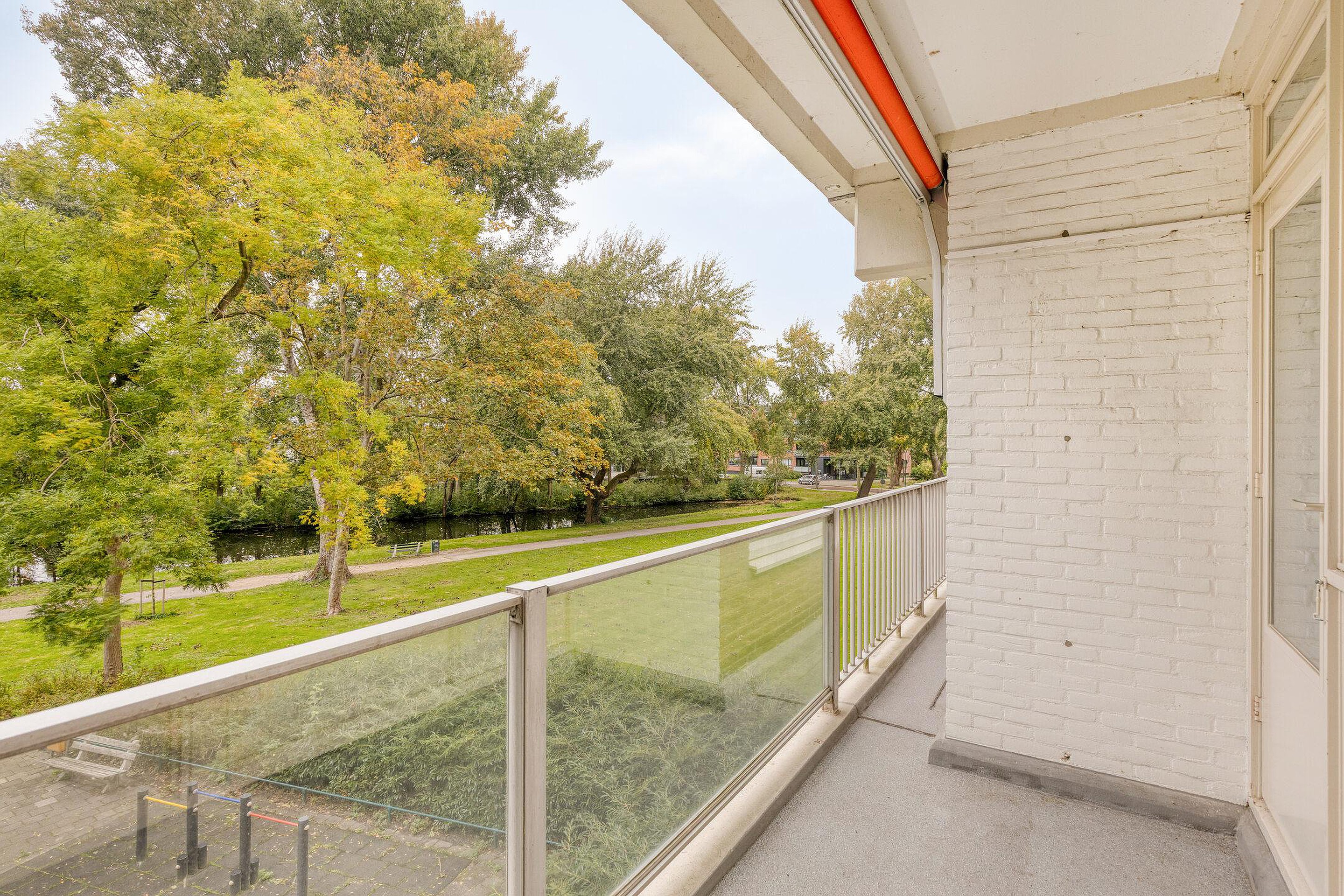 Entree; ruime hal met meterkast, vanuit hier is zowel de keuken als de woonkamer te bereiken. Zittend in de ruime woonkamer krijgt u het gevoel alsof u in midden in een groen park bent. Aansluitend aan de woonkamer is een brede doorloop naar de zijkamer (studeer/eetkamer) met toegangsdeur naar het balkon. Hier valt ook weer op eenvoudige wijze een aparte (slaap)kamer van te maken. Het ruime overdekte balkon met bergkast ligt op het westen en heeft een mooi uitzicht over het groen van het Irispark. Vanaf het bgein van de middag kun je daar tot 's avonds laat genieten van de zon.