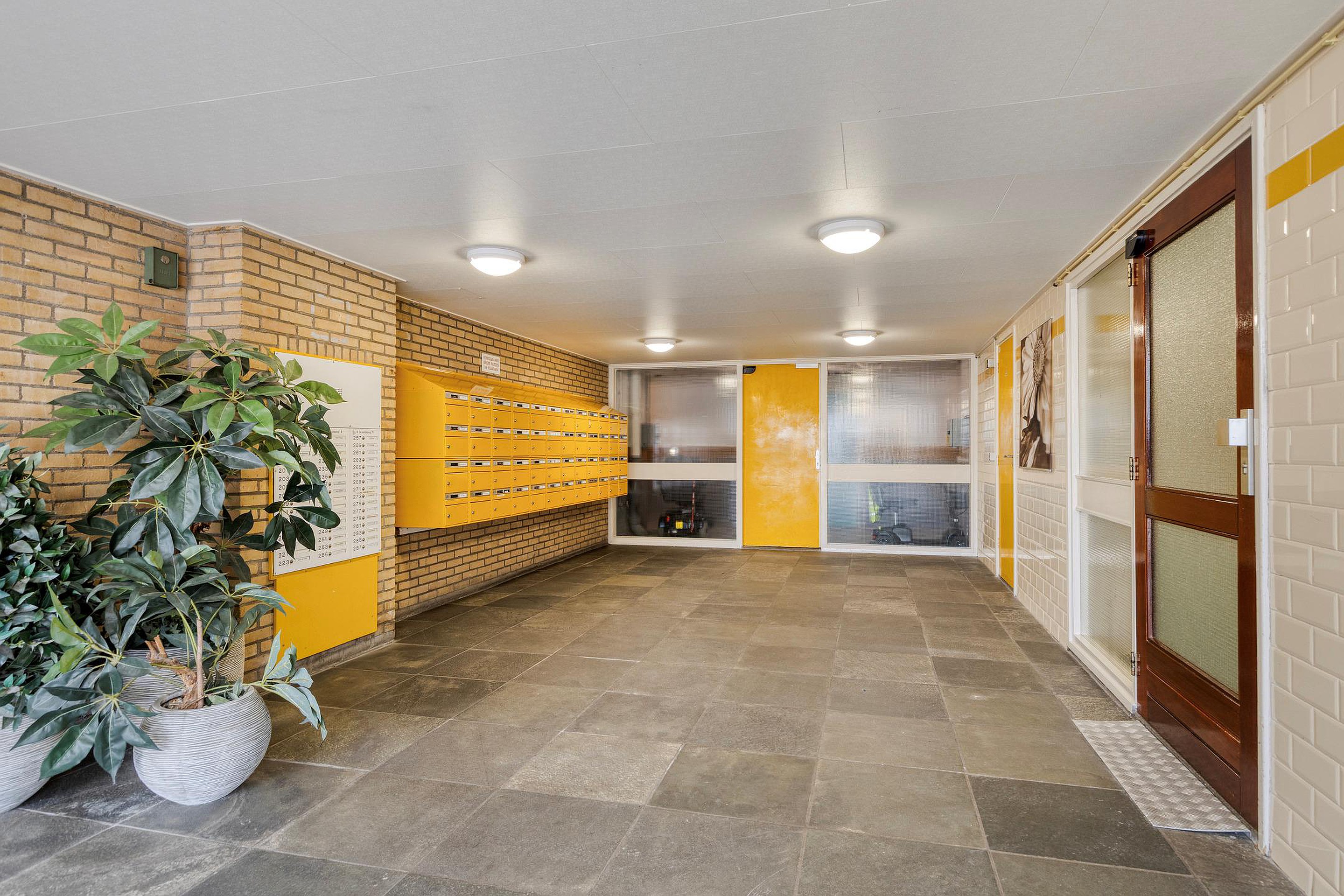 Centrale entree met brievenbussen en intercomsysteem inclusief toegang tot de berging (6 m2). Het appartement bereikt u via de trap en/of lift en via de eigen overdekte galerij.