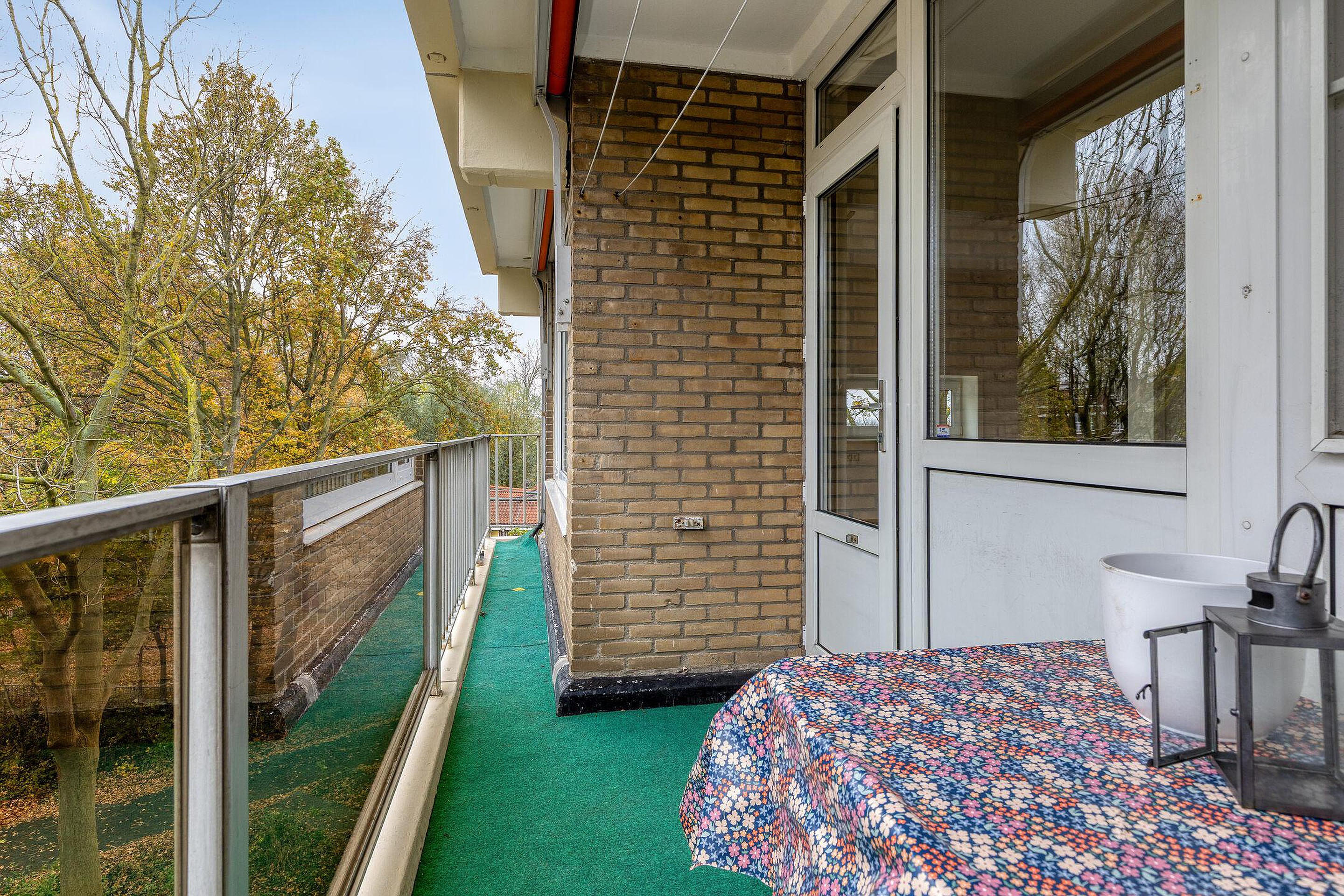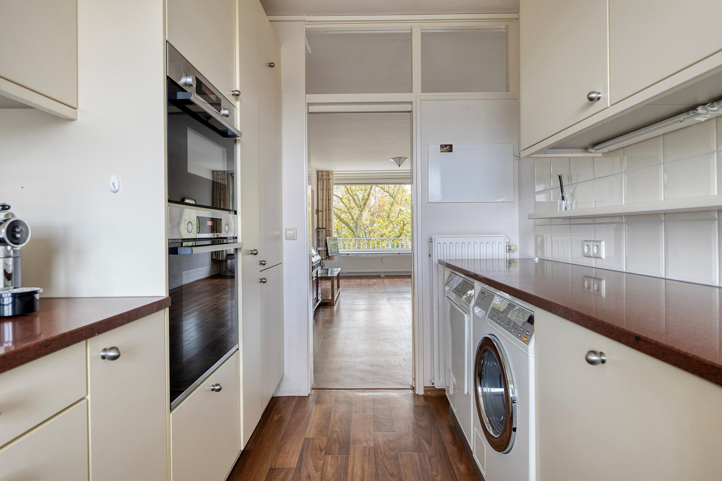 Overkapte galerij, met eigen toegang, zonder buren (dus geen geloop langs uw ramen) waardoor u een extra zitgelegenheid heeft op het oosten (ochtendzon); entree; ruime hal met vernieuwde en uitgebreide meterkast (9 groepen inclusief 3-fase aansluiting t.b.v. inductie), intercom en garderobe; toegang tot de ruime en lichte woon-eetkamer met zijraam en veel prettige lichtinval mede dankzij de grote raampartijen aan de achterzijde. Aansluitend naast de woonkamer is er een ruime zijkamer met een toegangsdeur naar een overdekt balkon op het zonnige westen met bergkast, glazen boarding en elektrisch bedienbaar zonnescherm. Doorloop naar een (slaap)kamer aan de achterzijde thans in gebruik als werkkamer. Vanuit de woonkamer toegang tot een dichte, U-vormige keuken (2004) aan de voorzijde met diverse Bosch inbouwapparatuur (o.a. vaatwasser, oven, magnetron, inductiekookplaat, koel-/vriescombinatie en afzuigkap) en opstelplaats voor zowel wasmachine als wasdroger; gang met modern vrij hangend toilet met fonteintje en ruime bergkast; ruime (hoofd)slaapkamer aan de voorzijde voorzien van inbouw(kleding)kast; vanuit deze slaapkamer is de moderne tot aan het plafond betegelde badkamer met douchecabine met zitplateau, handdoekradiator en wastafel(meubel) met spiegel te bereiken. Nagenoeg de gehele woning is voorzien van een doorgelegde laminaatvloer met houtlook.