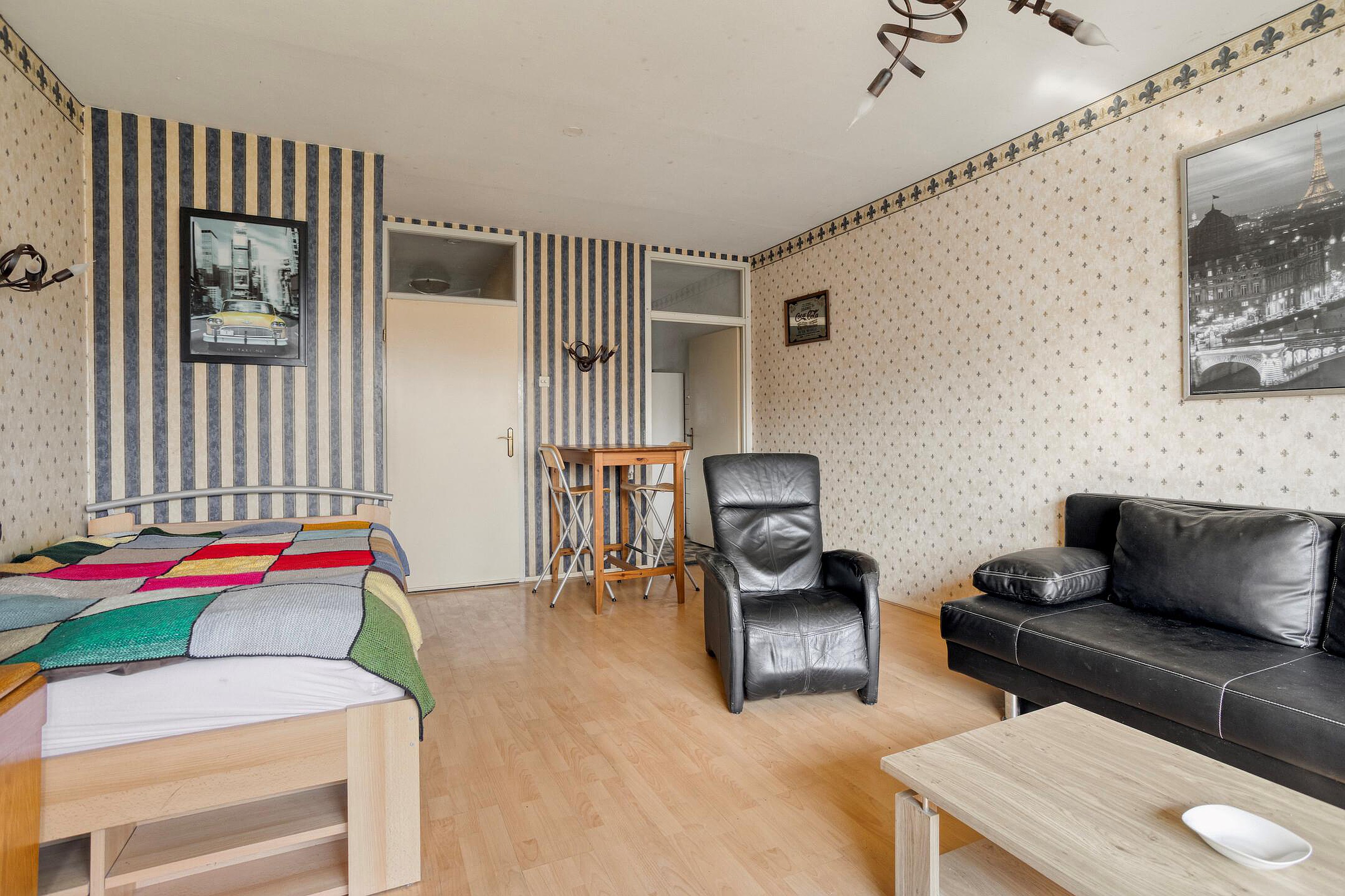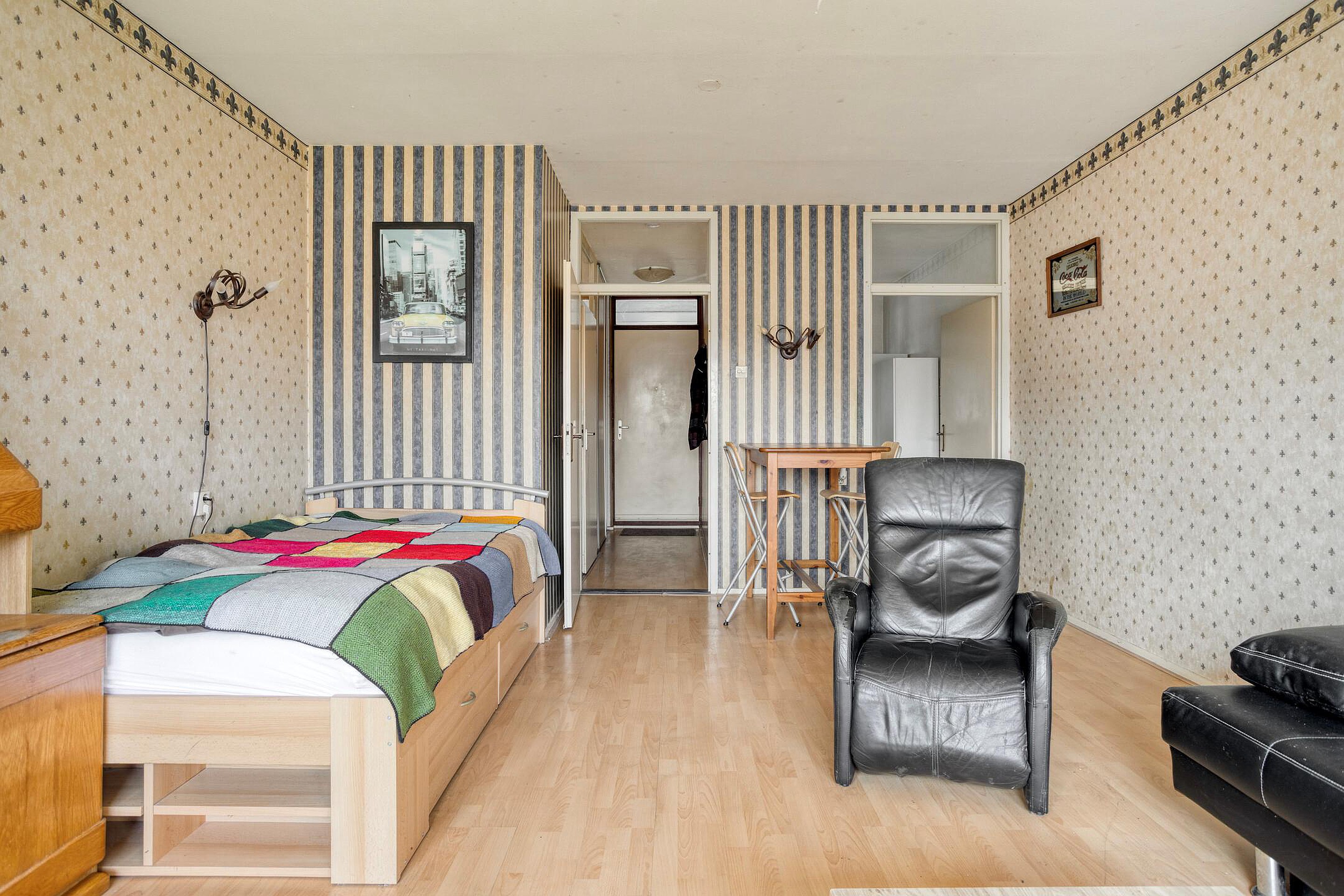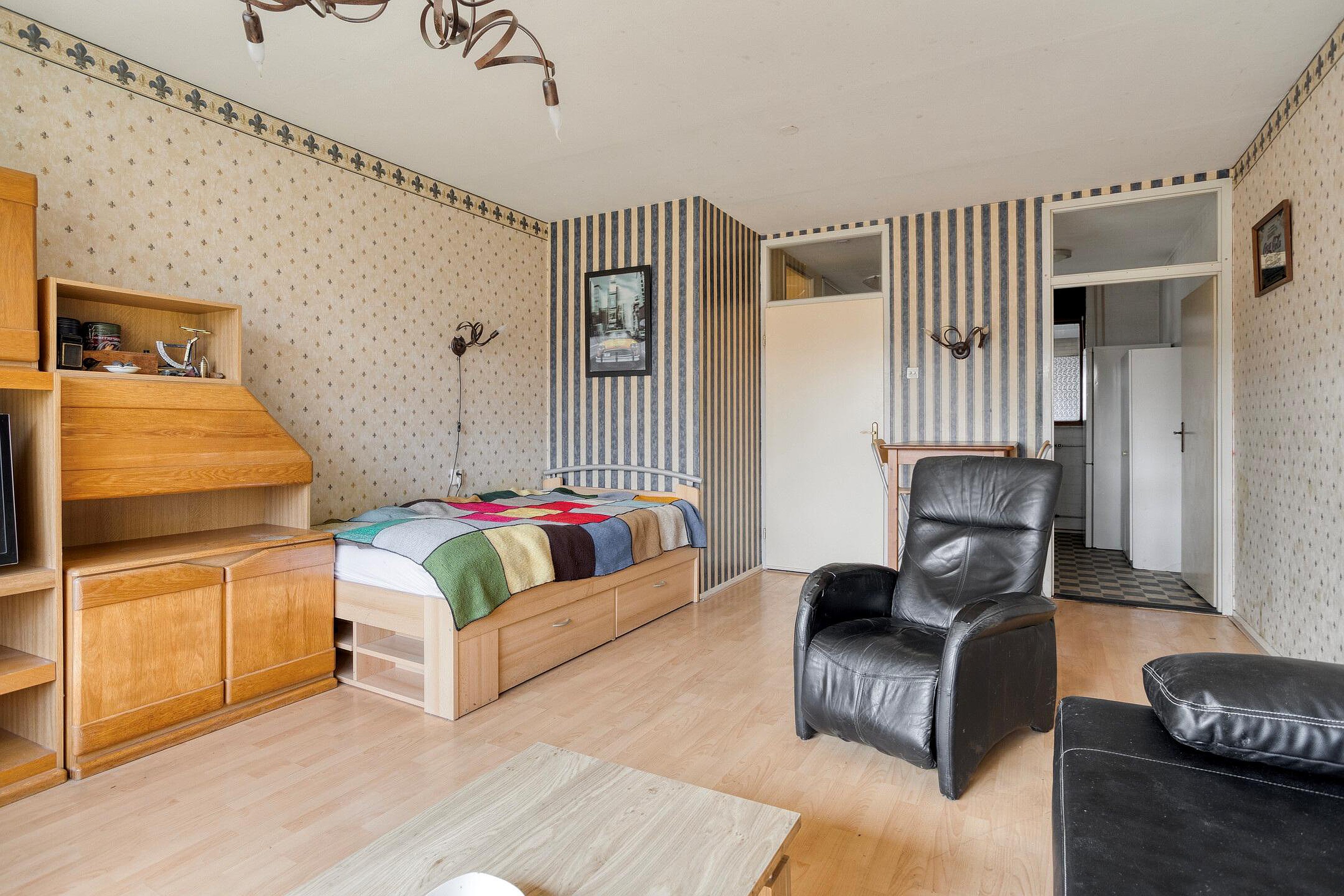 Bij veel studio’s/éénkamerappartementen is de keuken verbouwd tot slaapkamer en is er een open keuken in de woonkamer geplaatst, waardoor er een tweekamerappartement is ontstaan.