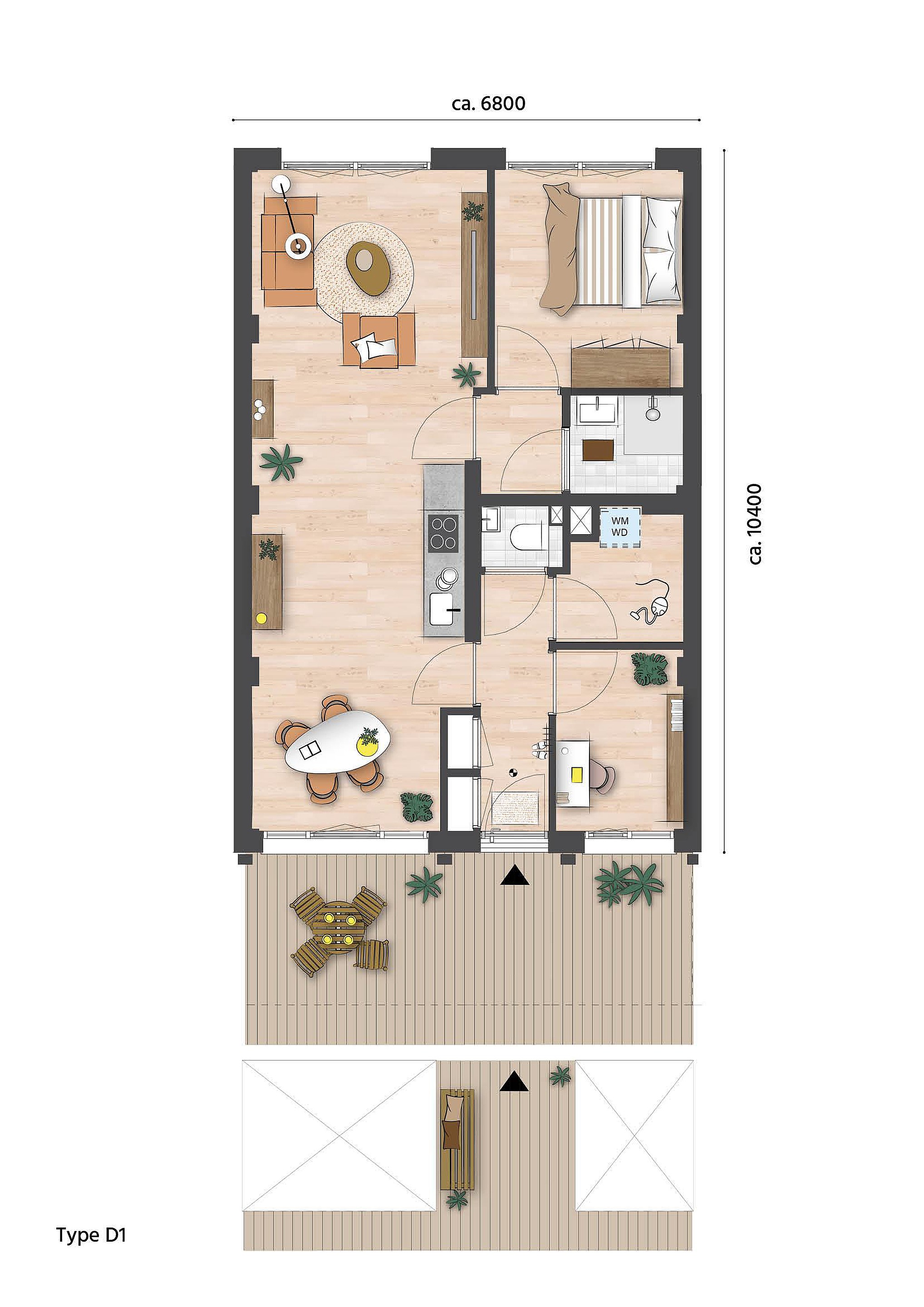 Timber biedt een gevarieerd aanbod van compacte 2- en 3-kamerappartementen van ca. 55-81m2. Elk type is voorzien van een eigen buitenruimte in de vorm van een loggia of terras. Hieronder een overzicht: