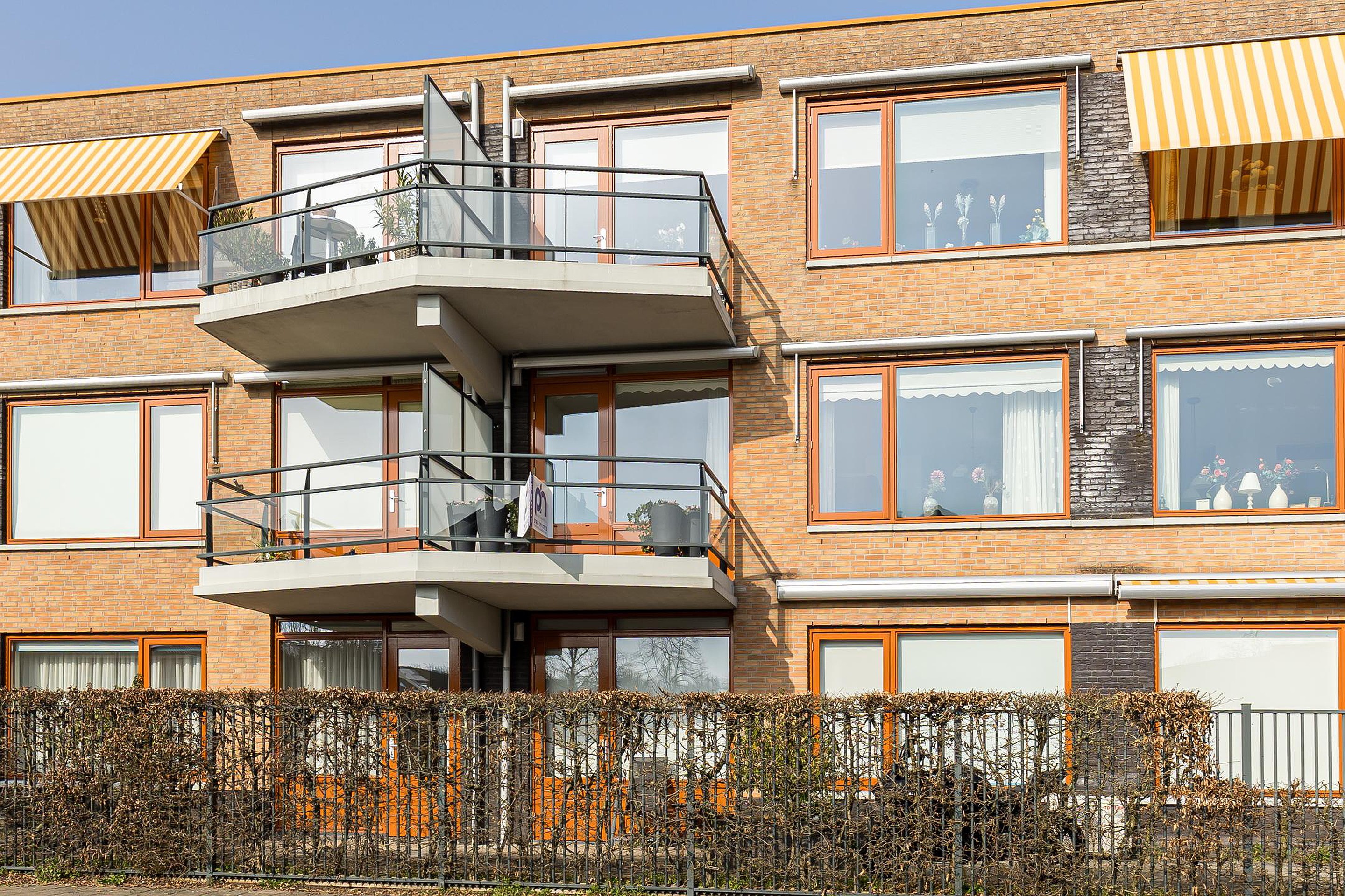 Vanuit de woonkamer stapt u zo het balkon op het zuiden op. Hier geniet u volop van de zon en heeft u een fijne plek om buiten te zitten, bijvoorbeeld met een kop koffie in de ochtend of een goed glas wijn in de namiddag. Dankzij de aanwezige zonneschermen creëert u eenvoudig extra schaduw wanneer dat gewenst is.