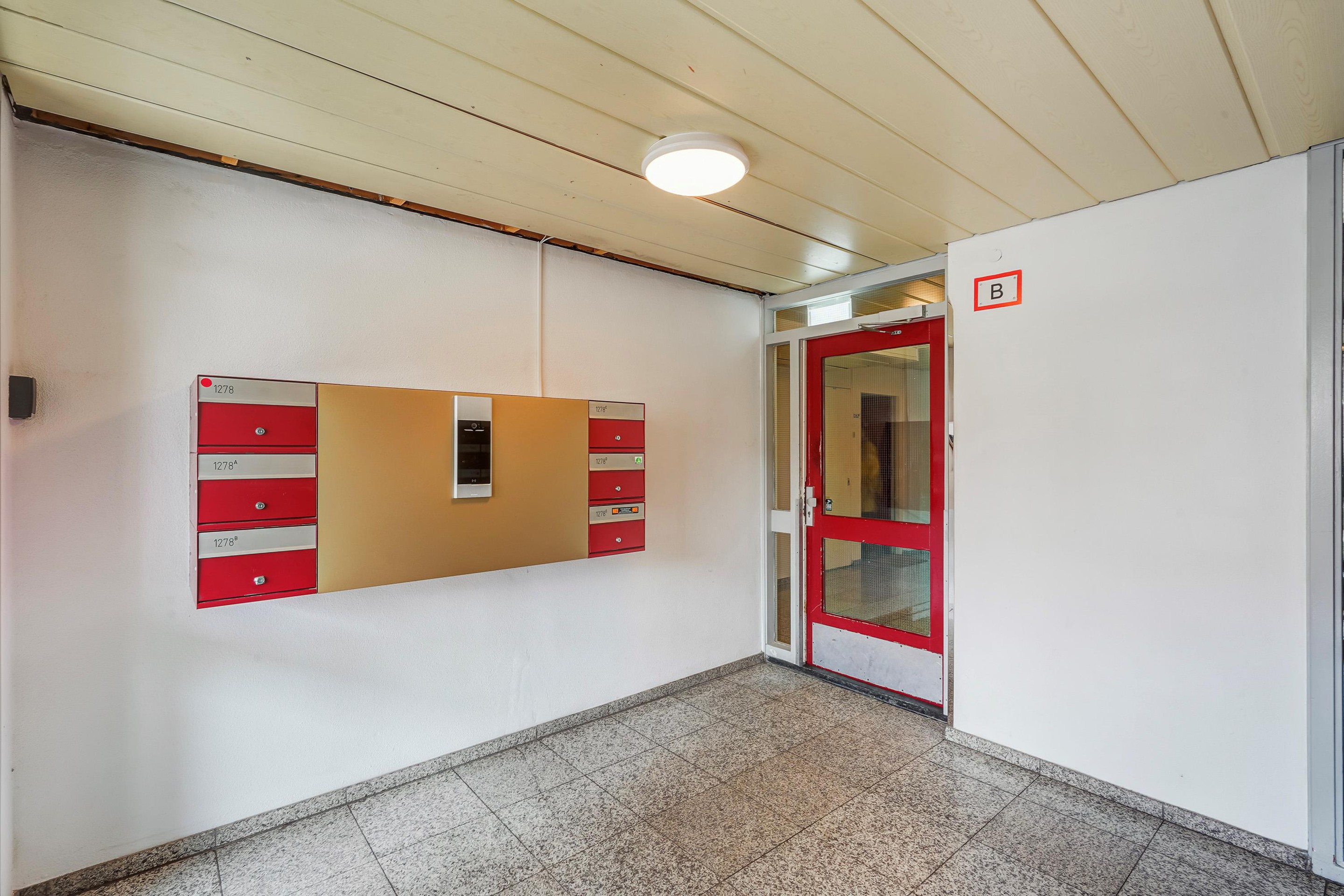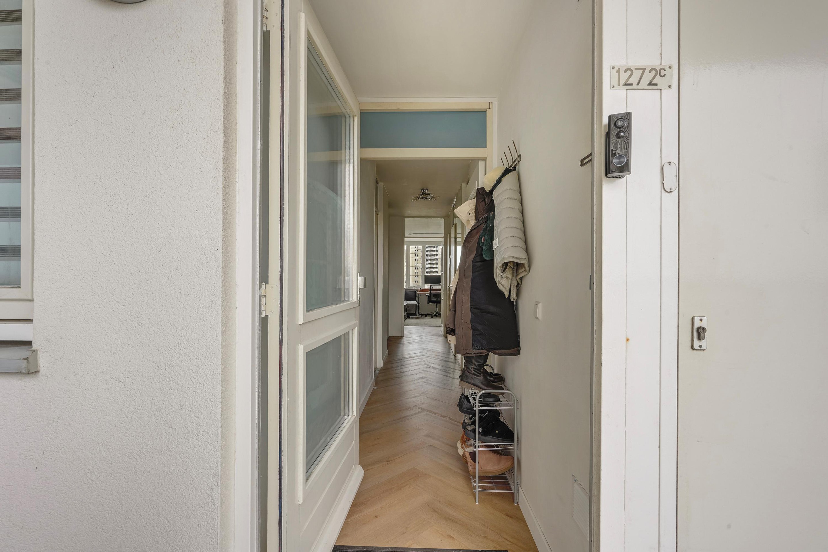 Begane grond De entree met bellen- en brievenbussentableau en videofoon geeft toegang tot de afgesloten centrale hal met trap en lift naar de vijfde verdieping.