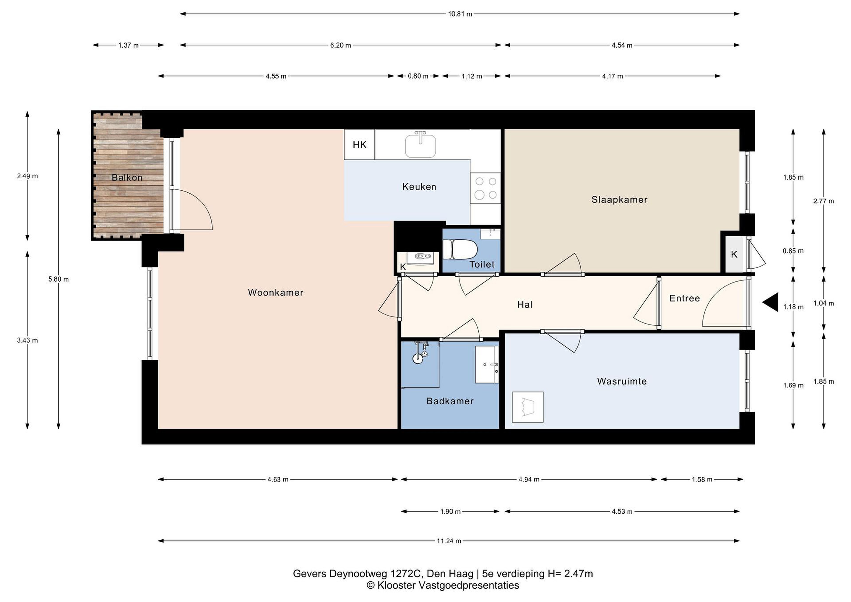 - Woonoppervlakte 63.5 m2, balkon 3 m2
