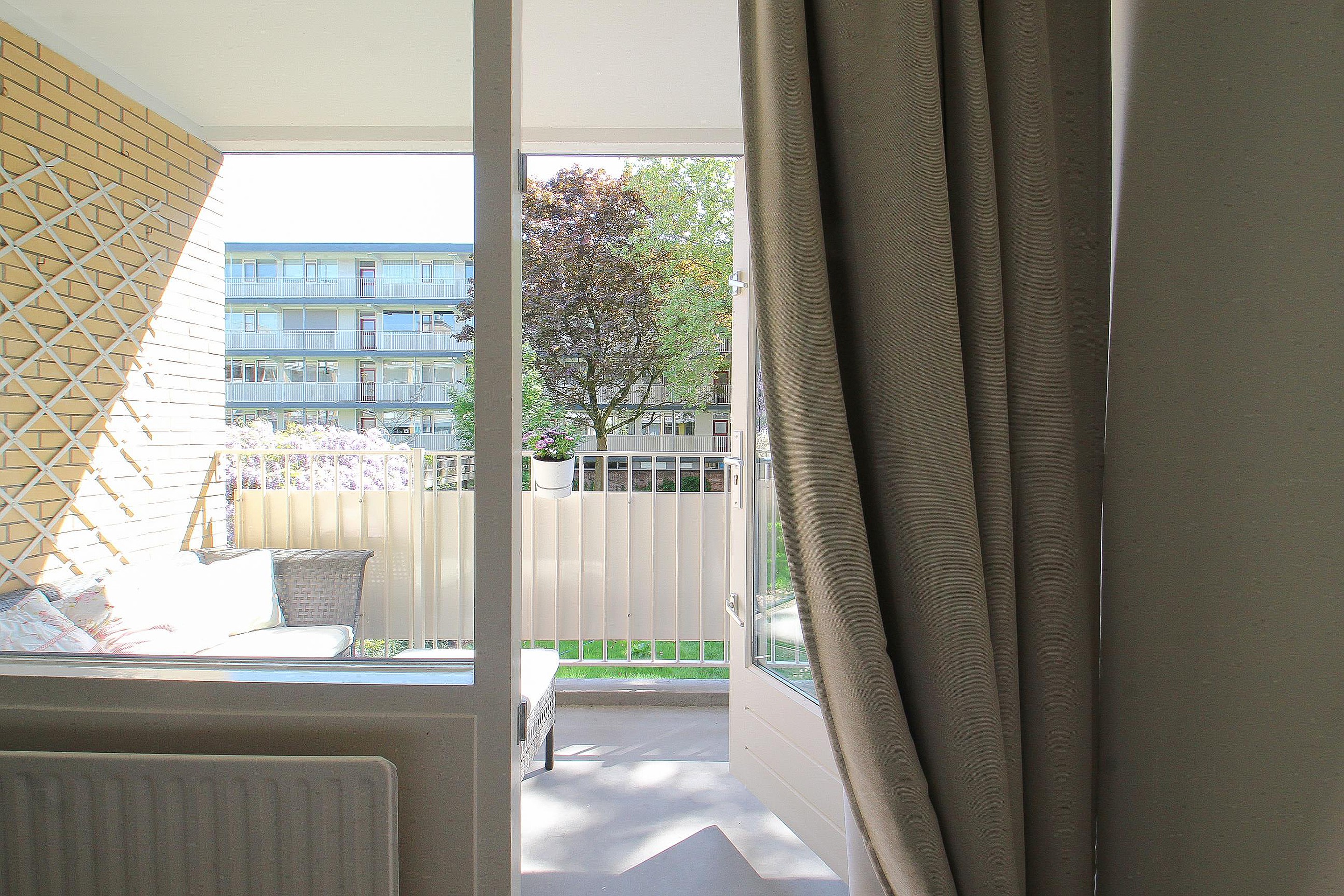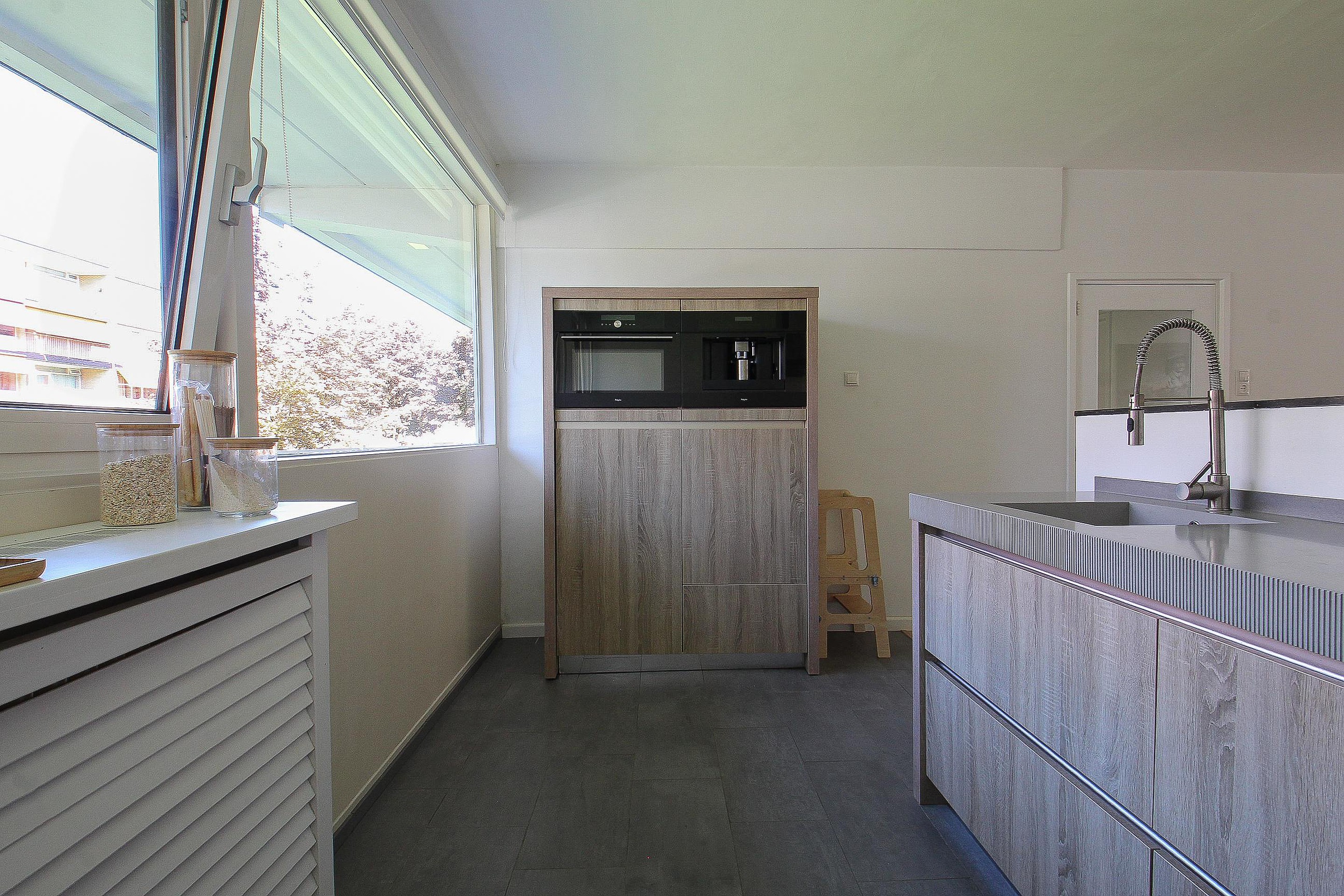 De ruime, lichte doorzonwoonkamer is afgewerkt met een mooie laminaatvloer. Hier heeft u een halfopen keuken, leuke eethoek en royale zithoek. Het aanrechtmeubel in de keuken is voorzien van een 5-pits gaskookplaat, afzuigkap, spoelbak en verschillende lades. Het wandmeubel is voorzien van een vaatwasser, combioven, ingebouwd koffiezetapparaat en koelkast. Vanuit de keuken heeft u een fijn zicht op de woonkamer. Via een loopdeur heeft u direct toegang tot het fijne balkon.