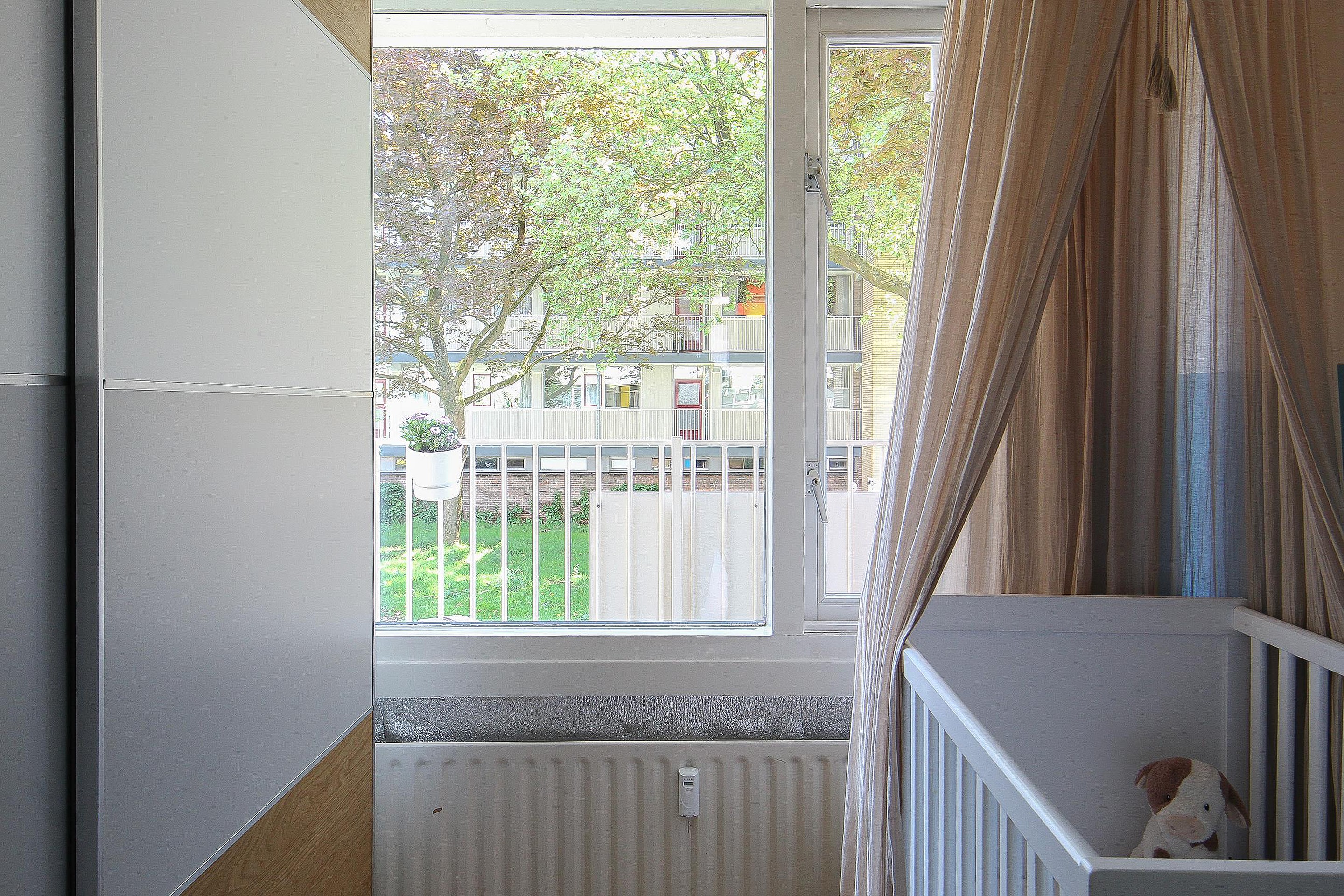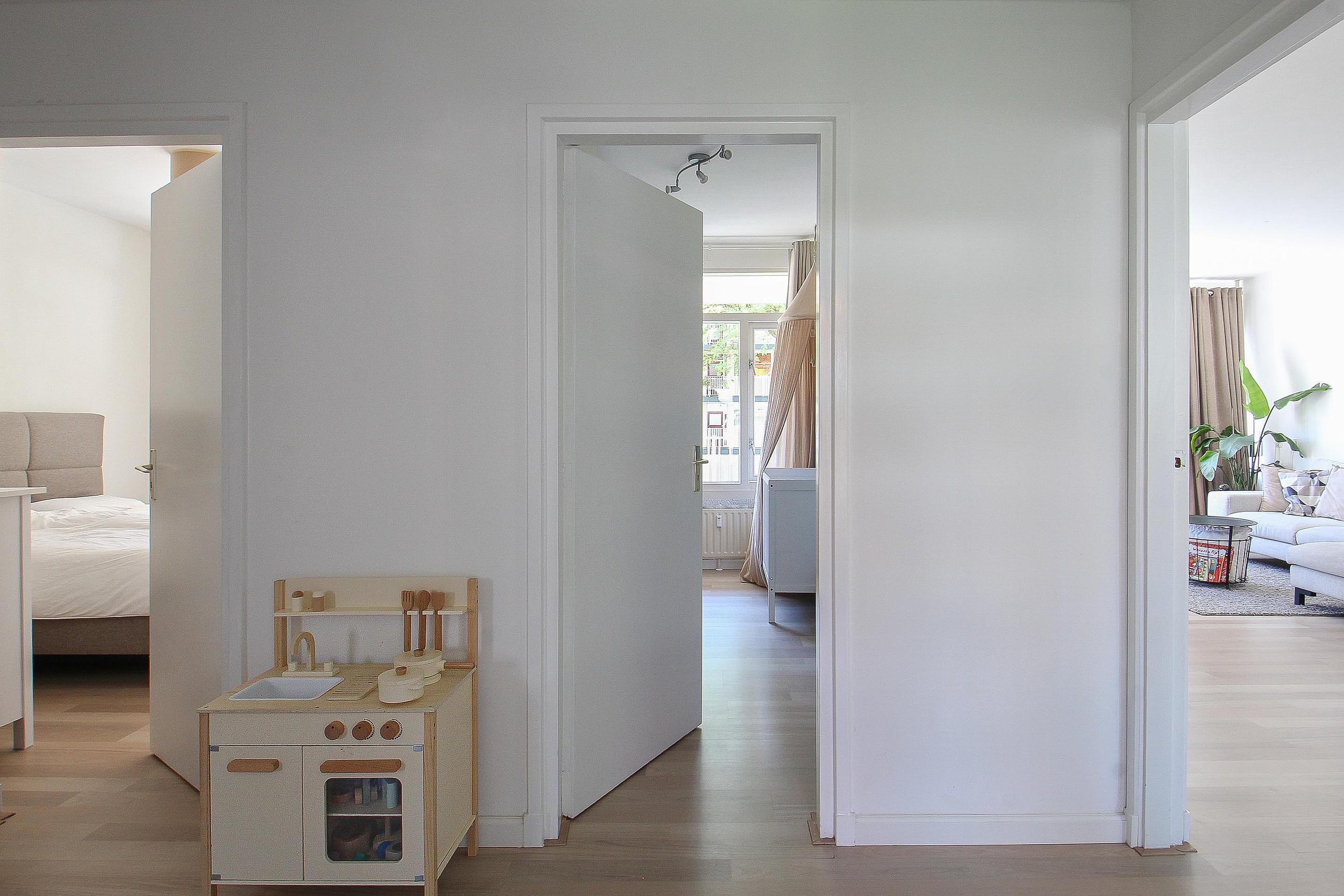Vervolgens aan de hal de twee slaapkamers. De grootste slaapkamer (ca.12m2) heeft een vaste kast en biedt ook toegang tot het balkon. De tweede slaapkamer (ca.8,5m2) is zeer geschikt als kleedruimte, werk-/babykamer.