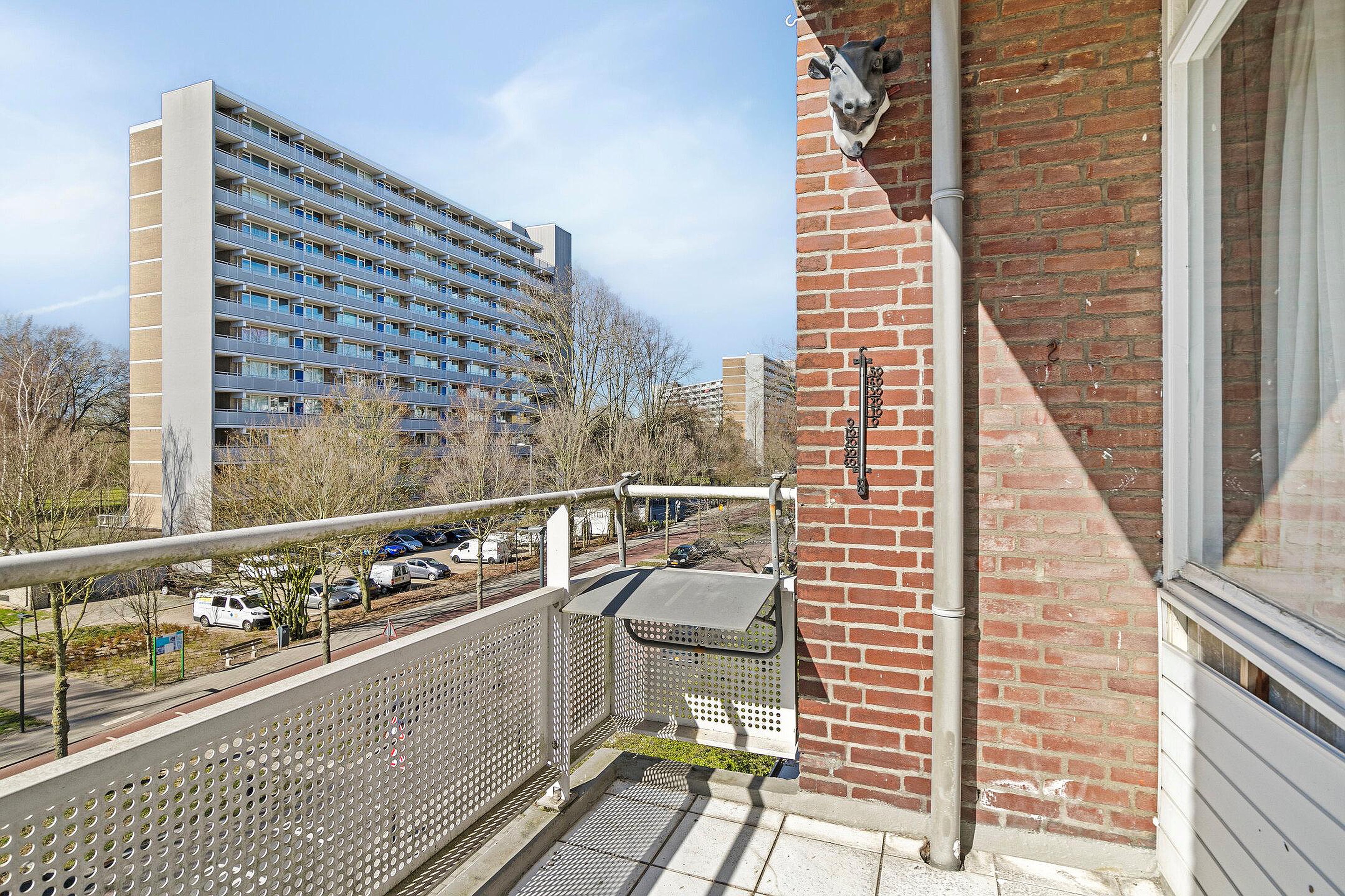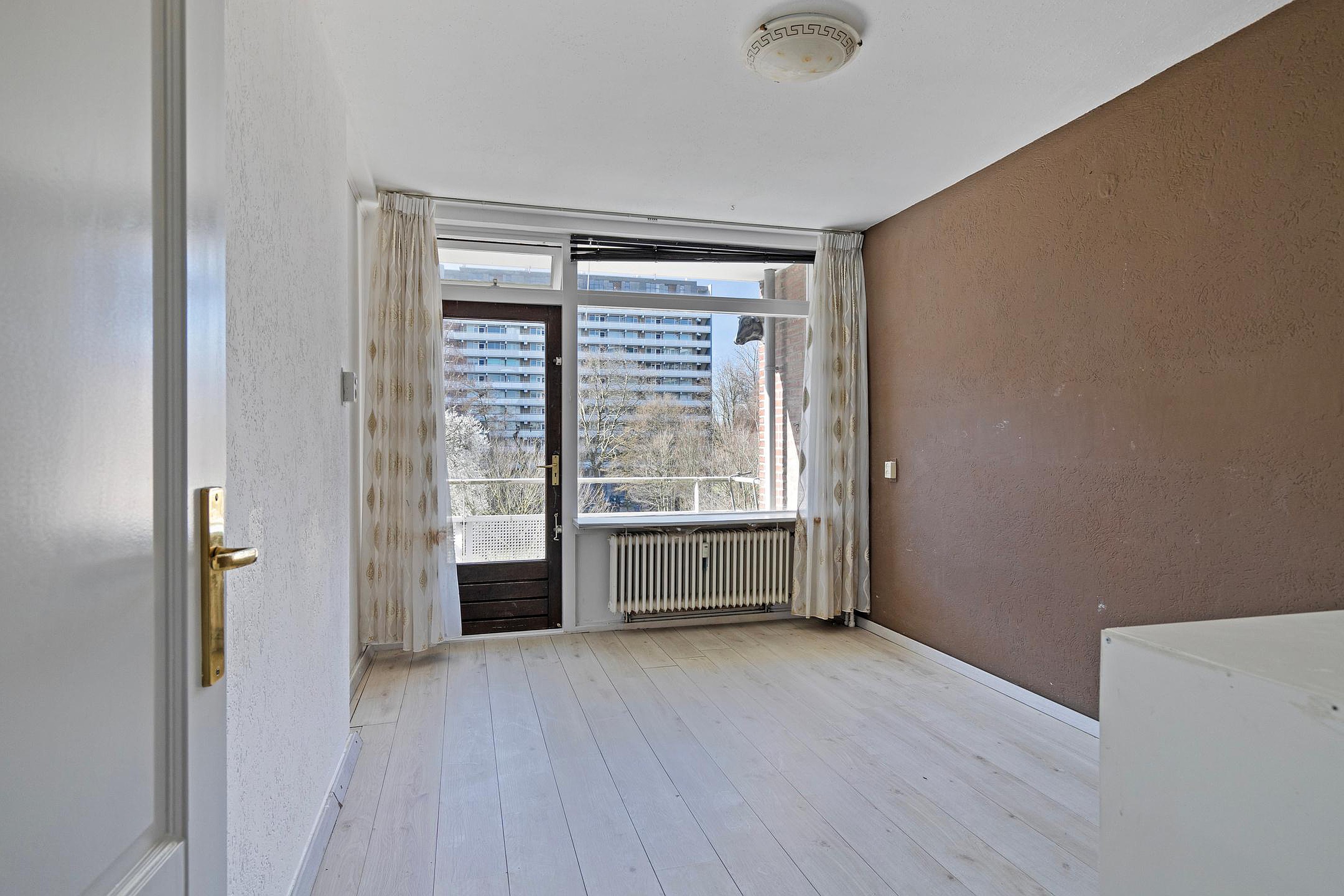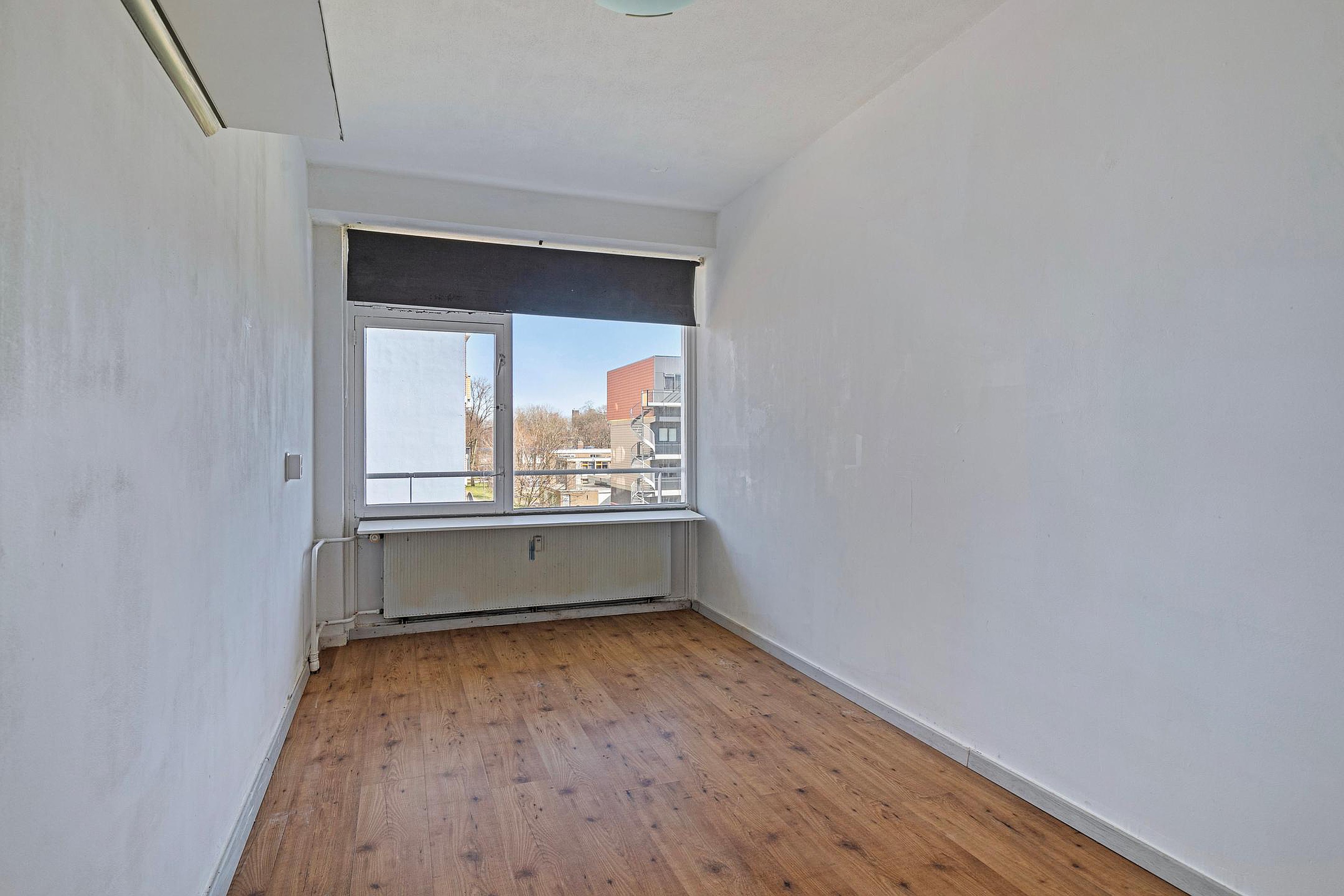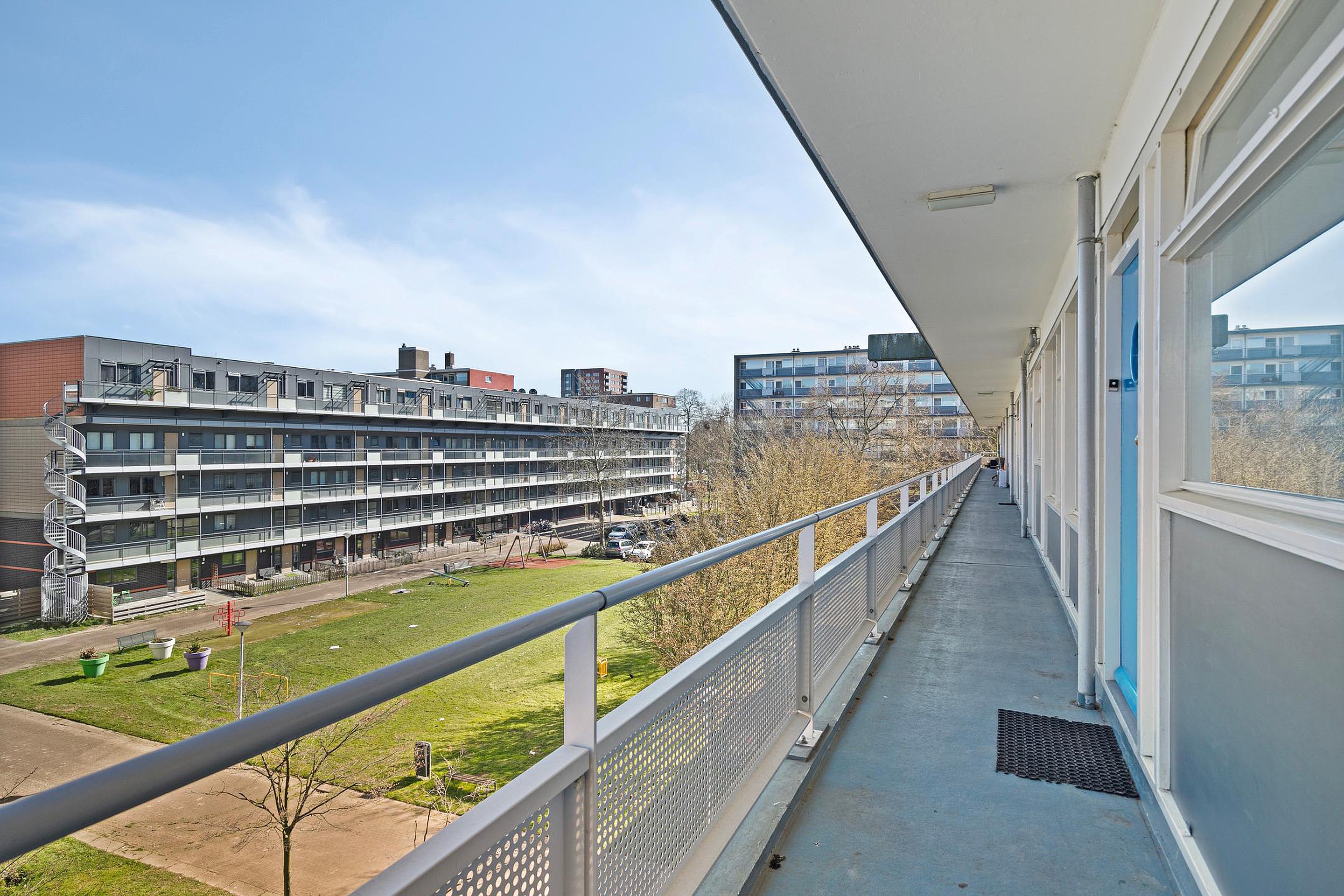 Ruime, lichte woonkamer met vrij uitzicht. De woning heeft 3 slaapkamers. Slaapkamer 1 ligt aan de voorzijde en heeft toegang tot het balkon. Slaapkamer 2 en 3 liggen aan de galerijzijde. De keuken ligt aan de galerijzijde een heeft een eenvoudige keukeninrichting. De badkamer is voorzien van een douche, wastafel en wasmachineaansluiting.
