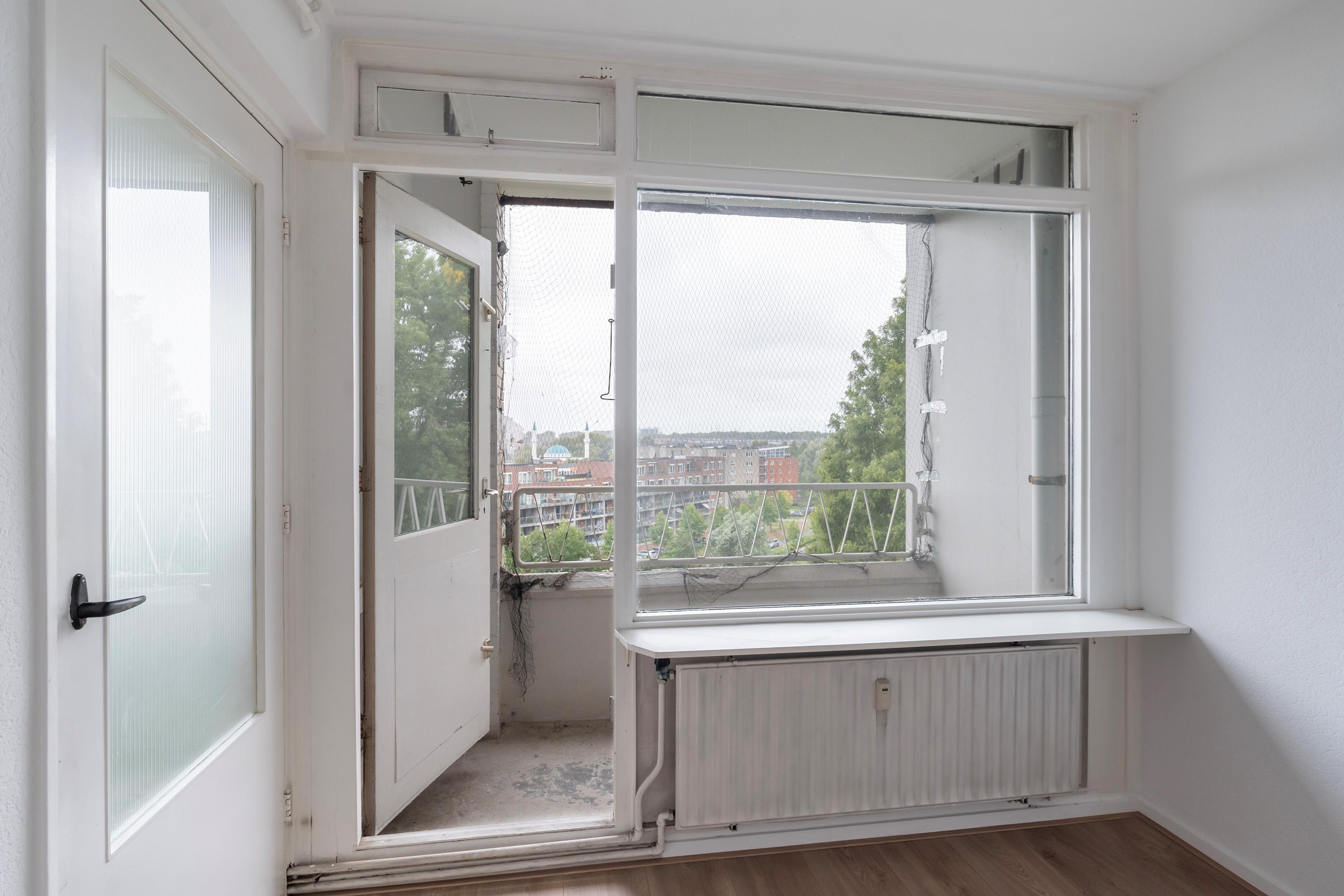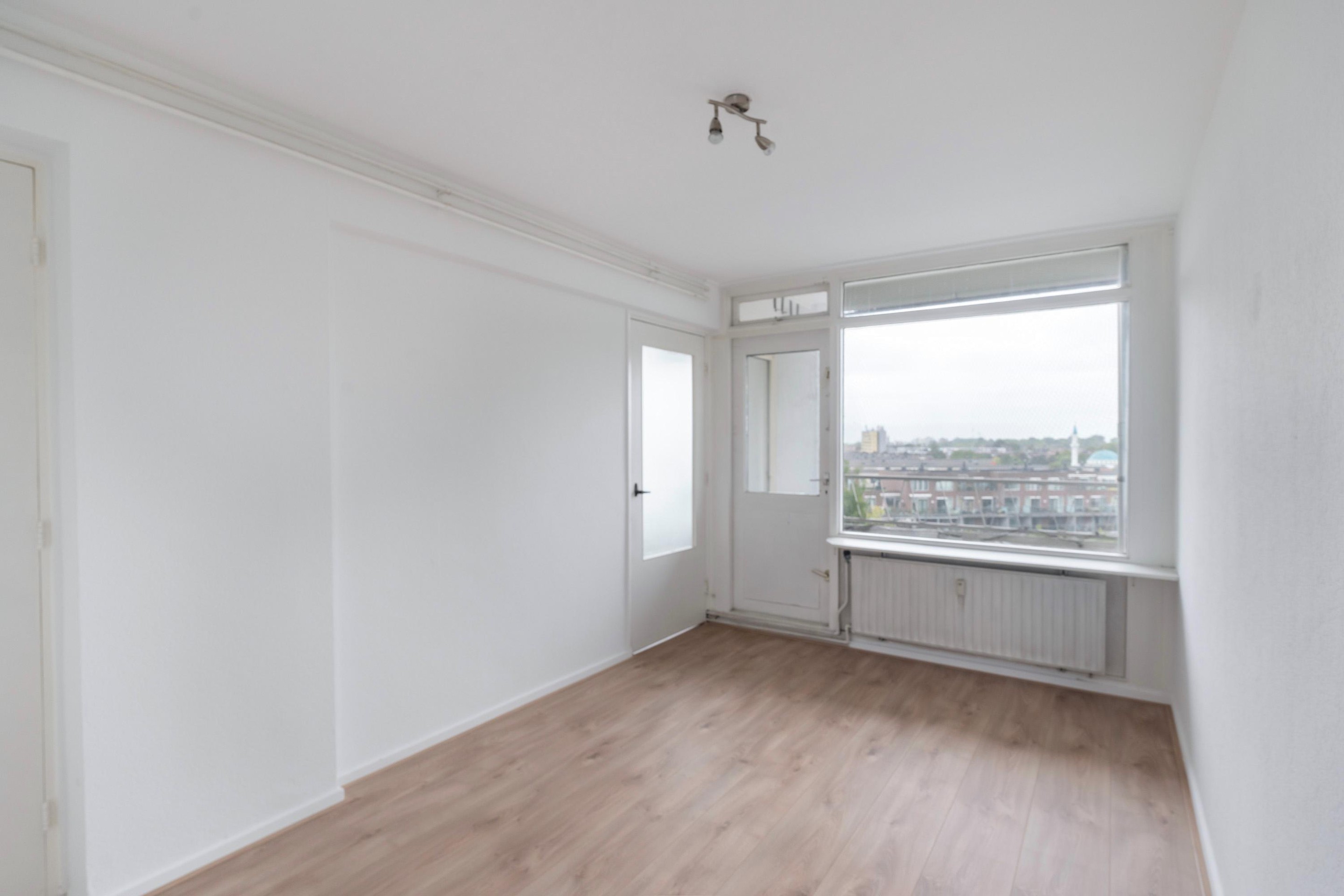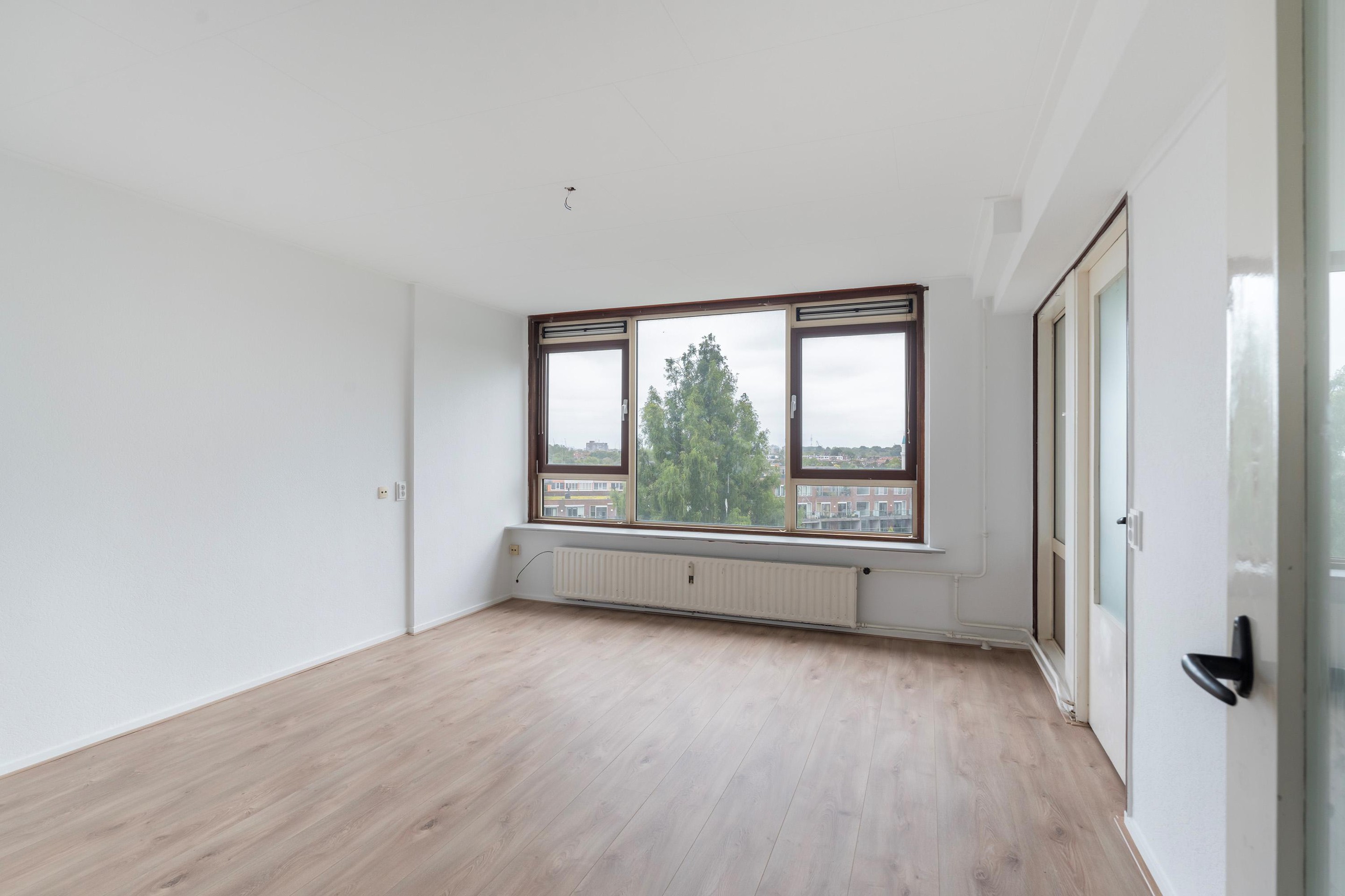De woning ligt aan de Burgemeester van Haarenlaan in Schiedam, direct tegenover een fraai aangelegde groenstrook met een waterpartij. U woont hier rustig, maar toch centraal. Aan de overkant van de straat bereikt u via de P.J. Troelstralaan in enkele minuten lopen de metrohalte Troelstralaan. Deze brengt u snel naar het NS-station én naar het hart van Rotterdam.