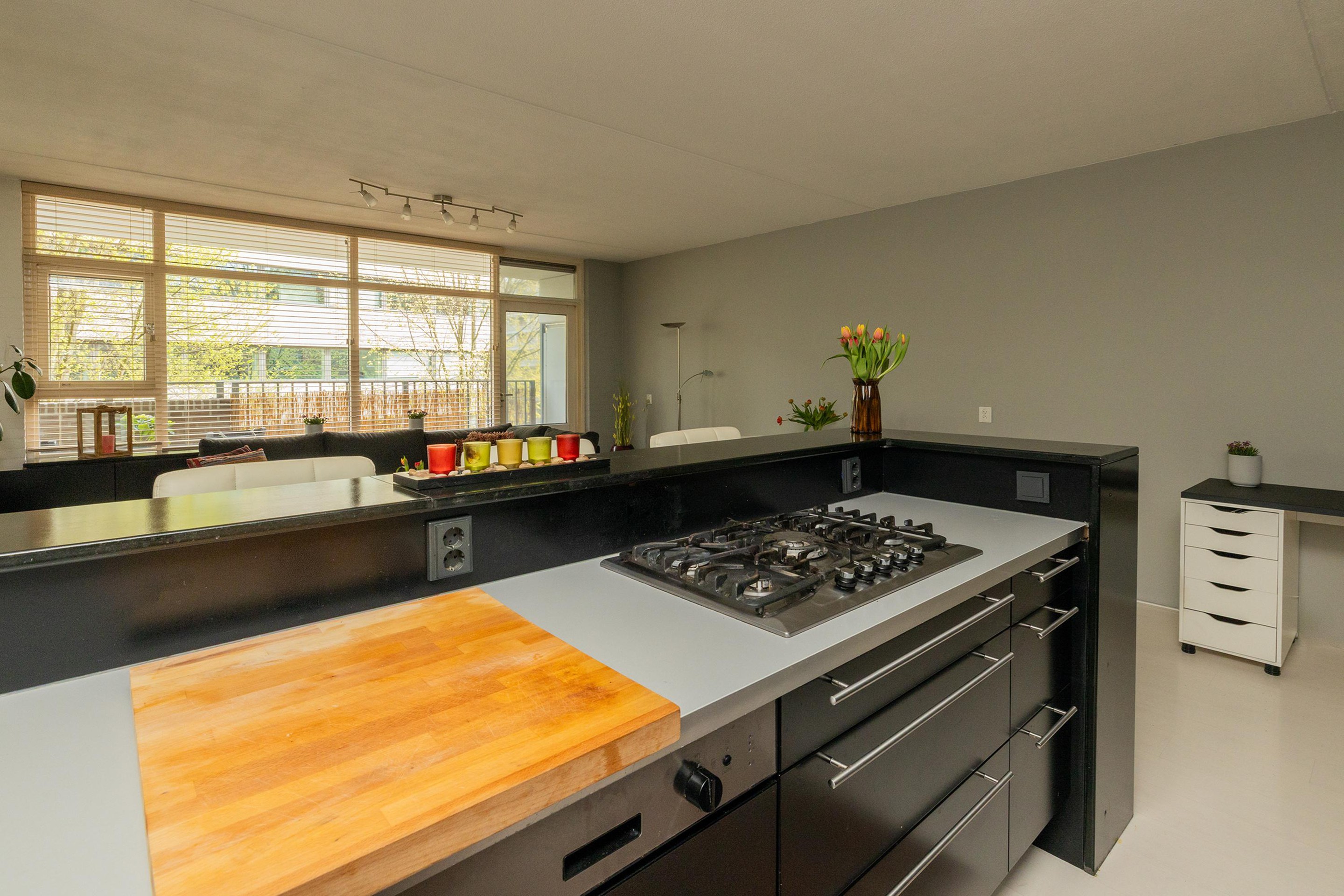 De moderne open keuken vormt het hart van de woning en is uitgevoerd met een kookeiland en bar. De keuken is voorzien van diverse inbouwapparatuur en biedt volop werk- en bergruimte – ideaal voor wie graag kookt en gasten ontvangt.