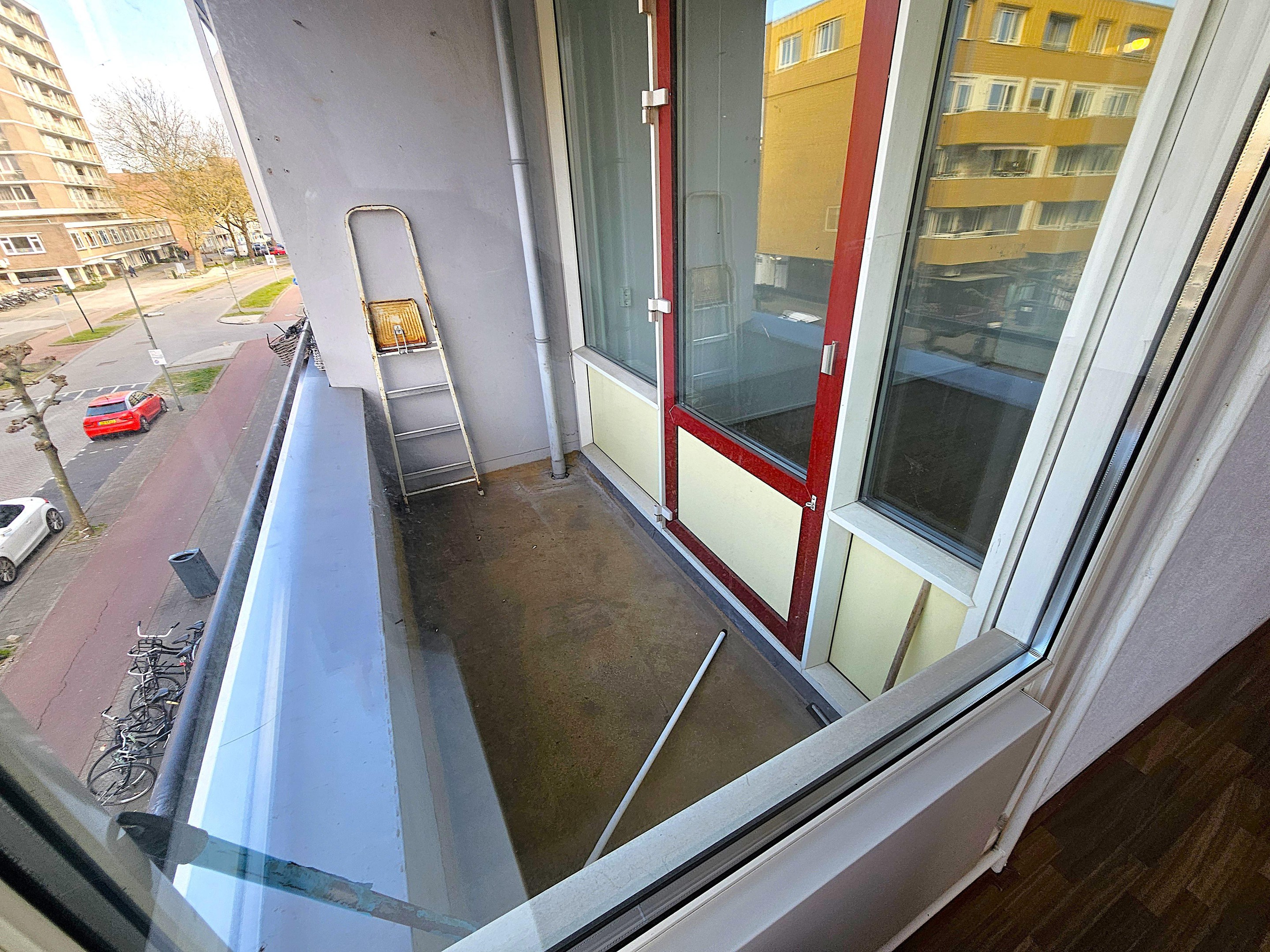 De woning beschikt over een ruime, lichte woonkamer met grote raampartijen die zorgen voor een prettige hoeveelheid daglicht. De woonkamer biedt toegang tot het balkon – een fijne plek om te ontspannen.