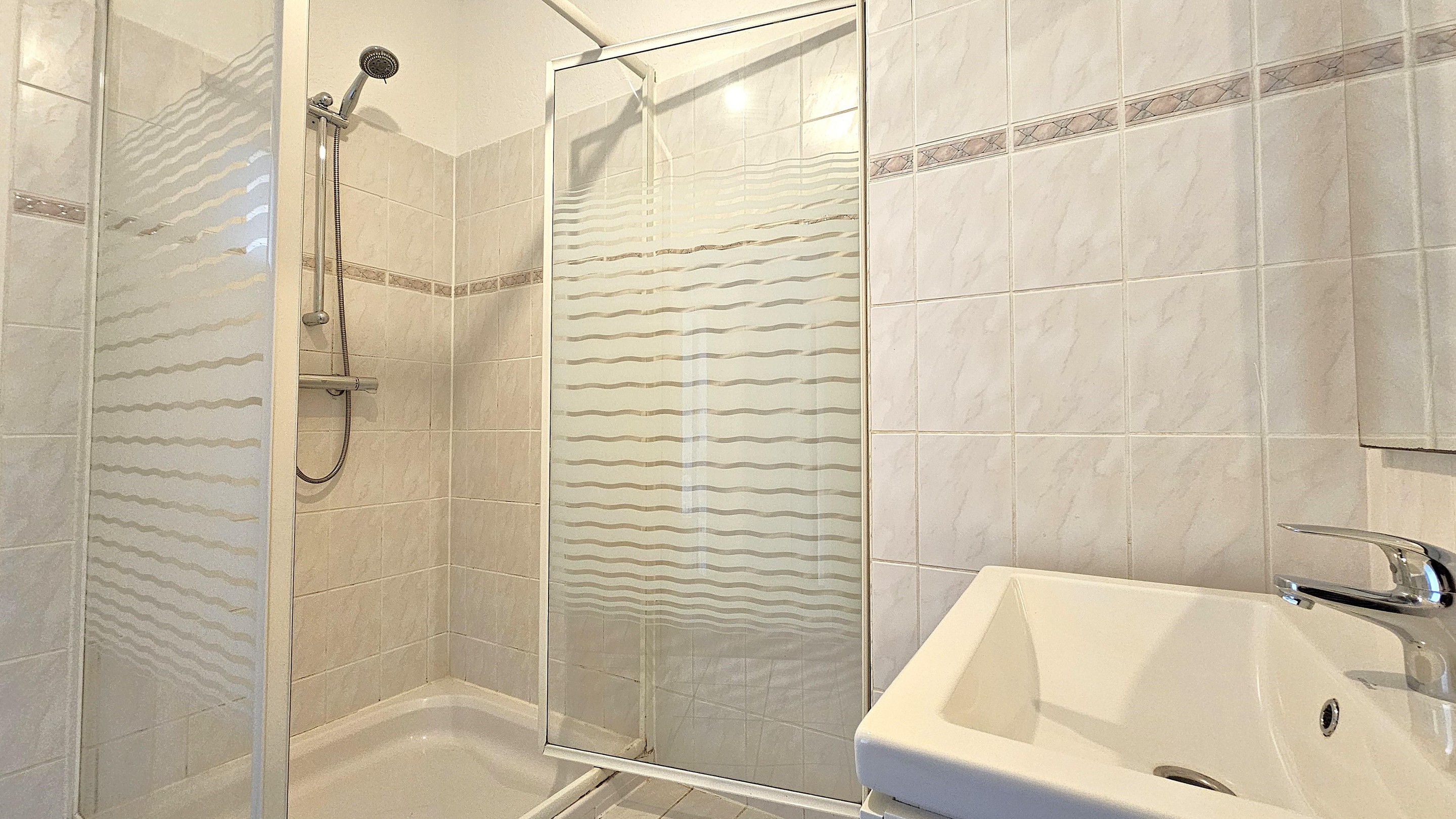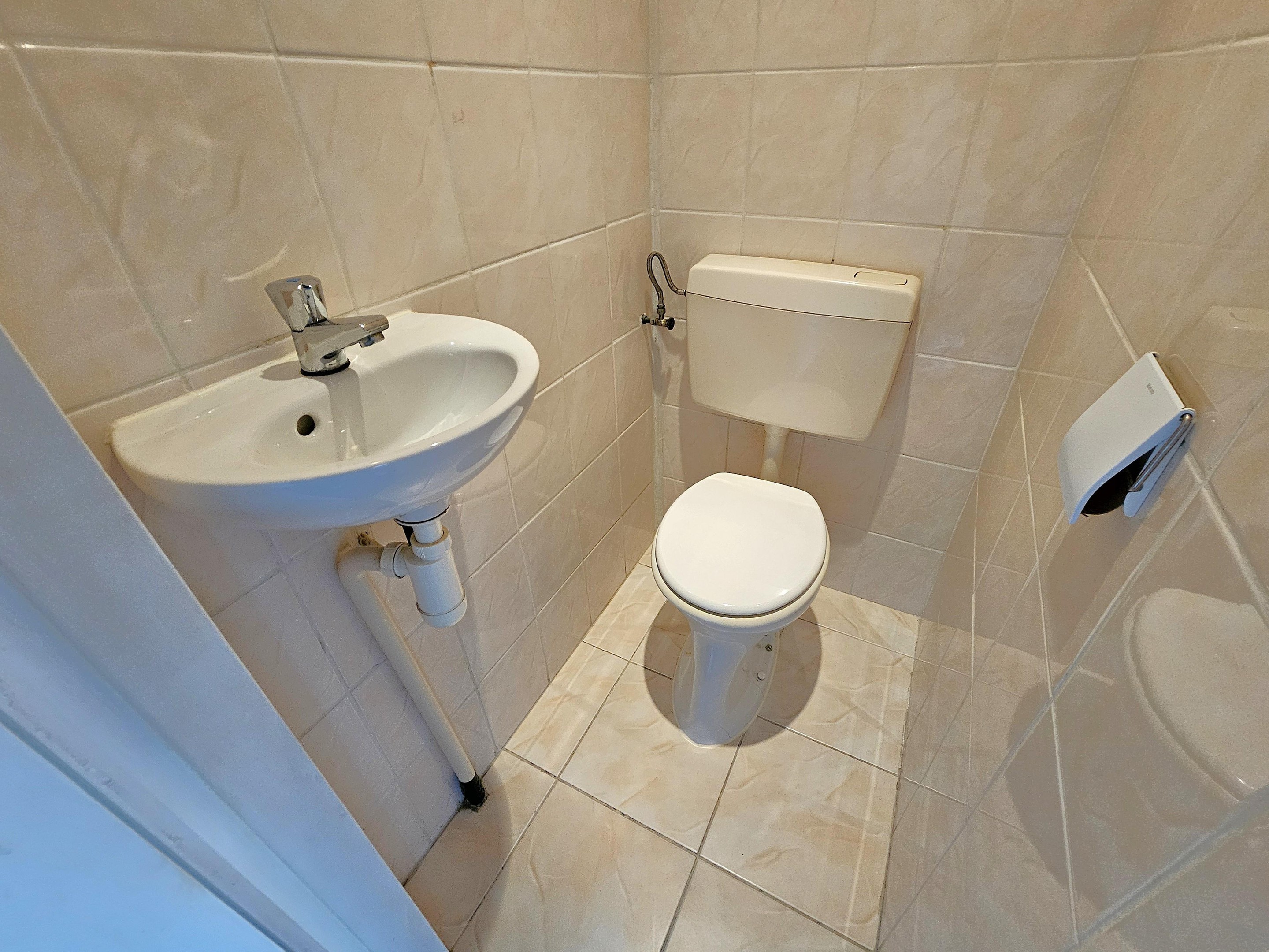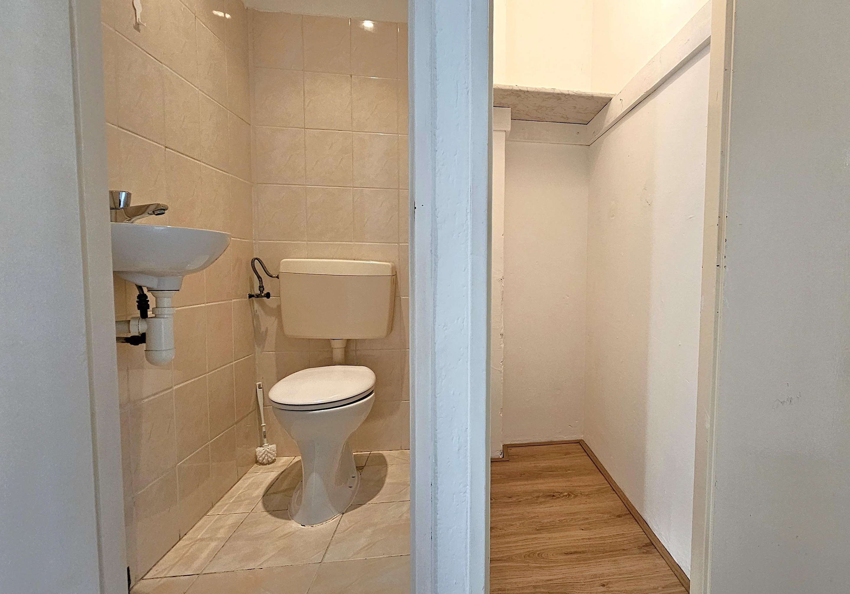 De badkamer is voorzien van een douche, wastafel en wasmachineaansluiting. Het toilet is separaat, wat extra comfort en privacy biedt voor bewoners en gasten.