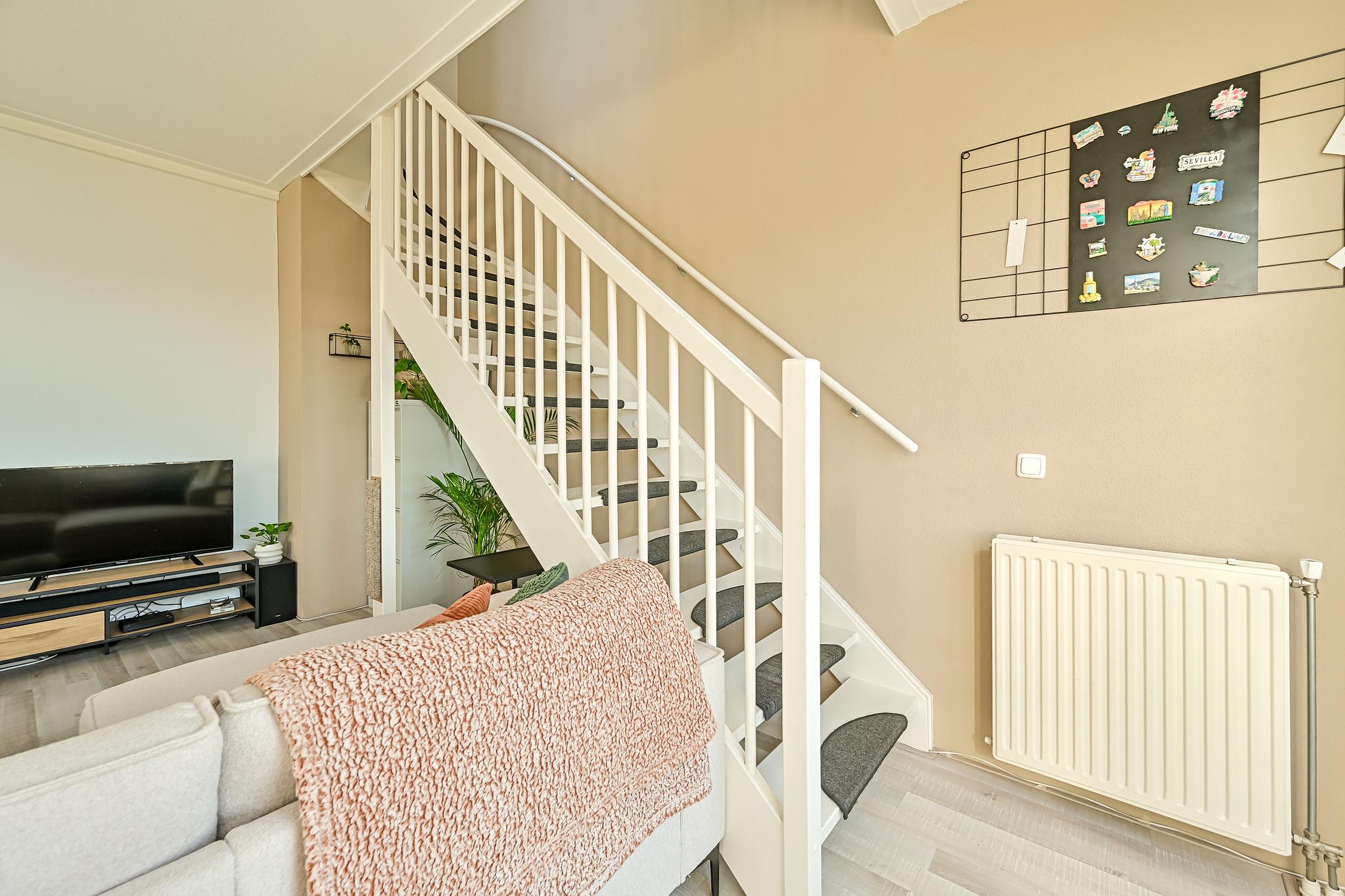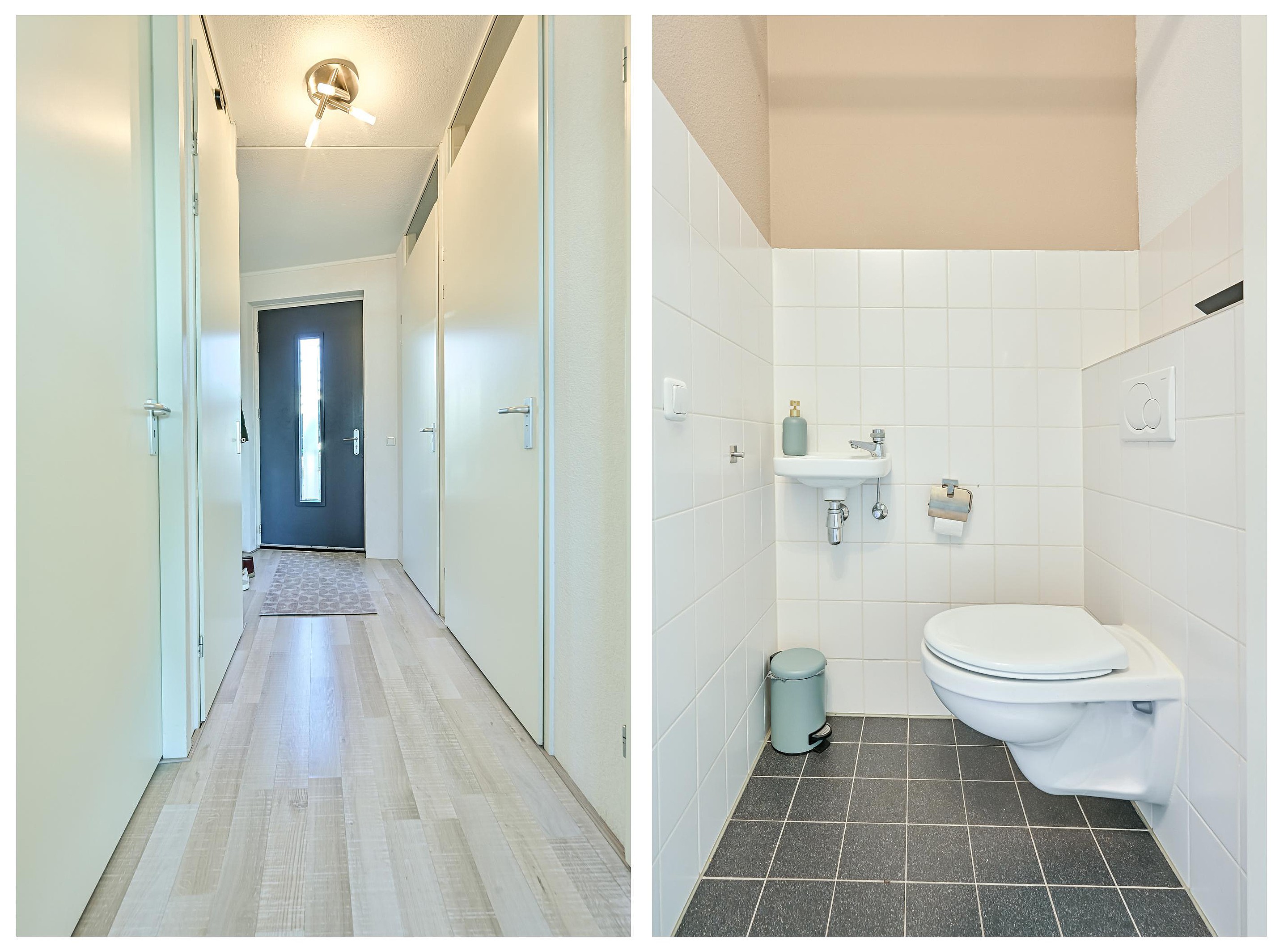 Via de galerij bereik je deze bijzondere woning met twee verdiepingen én vide. Hal met toegang tot de badkamer, het toilet, de CV ruimte met opstelplaats voor de wasmachine, de meterkast, de slaapkamer en uiteraard tot de woonkamer.