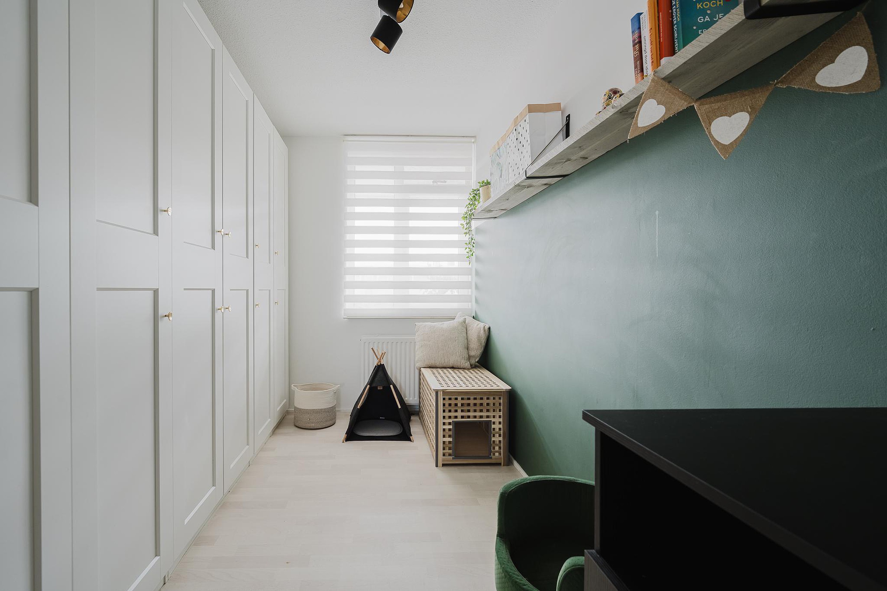 Aan de galerijzijde bevinden zich de twee slaapkamers, beide netjes afgewerkt.