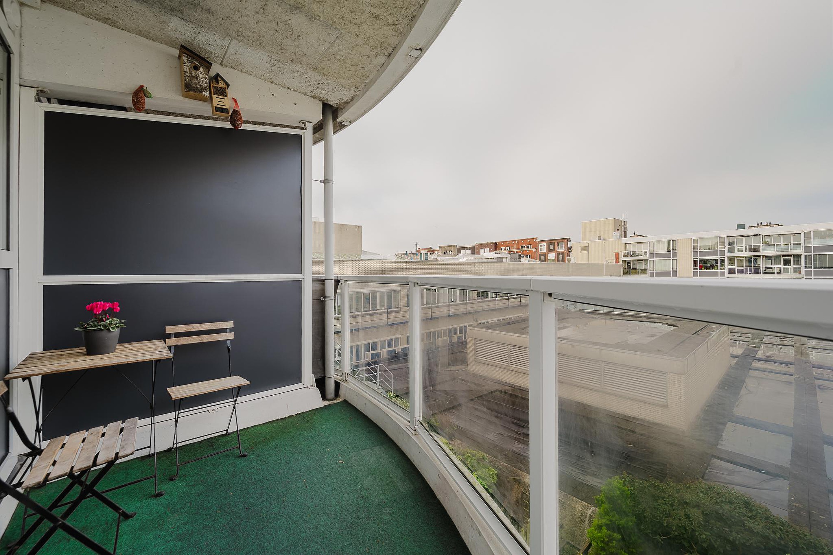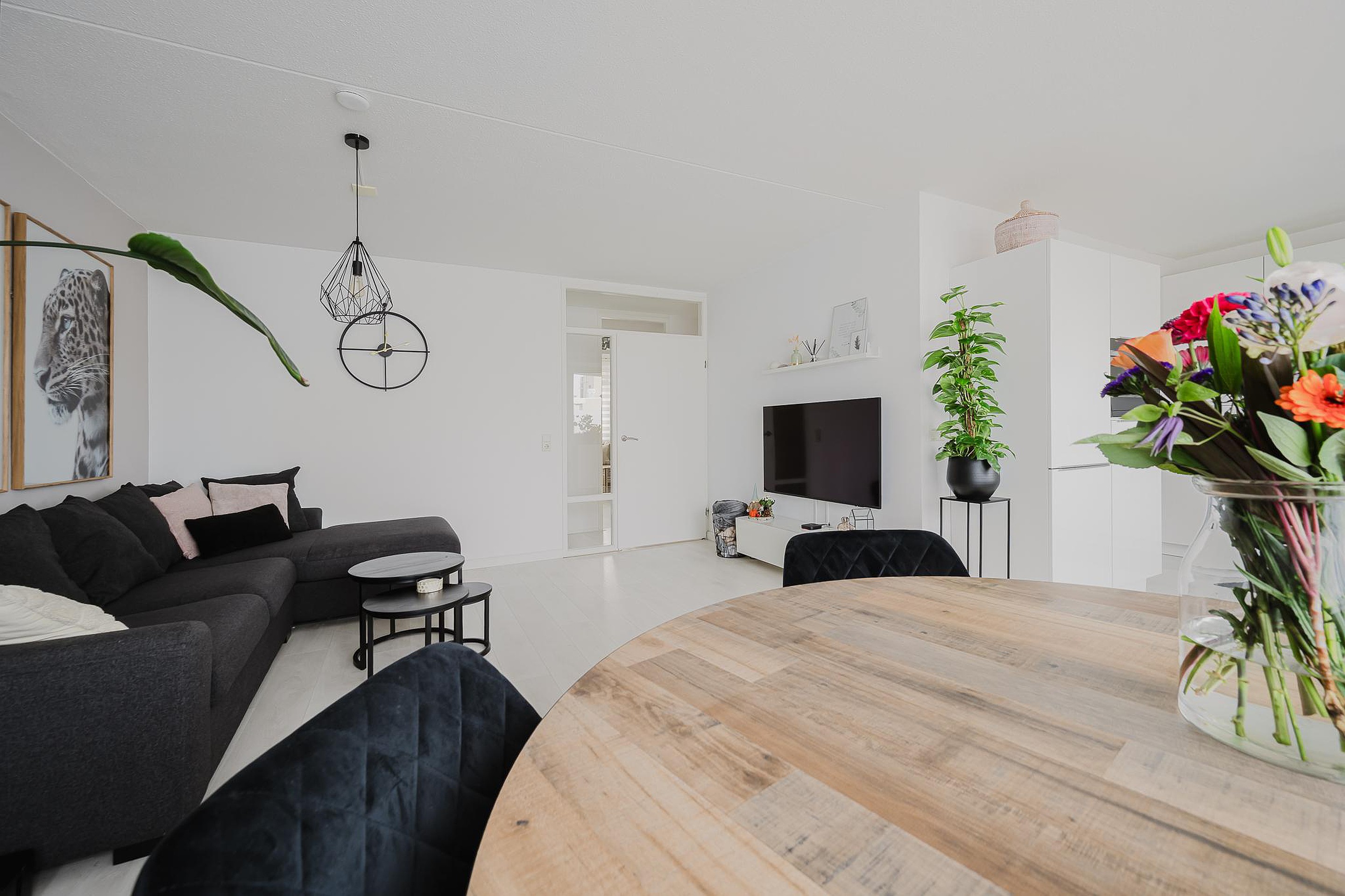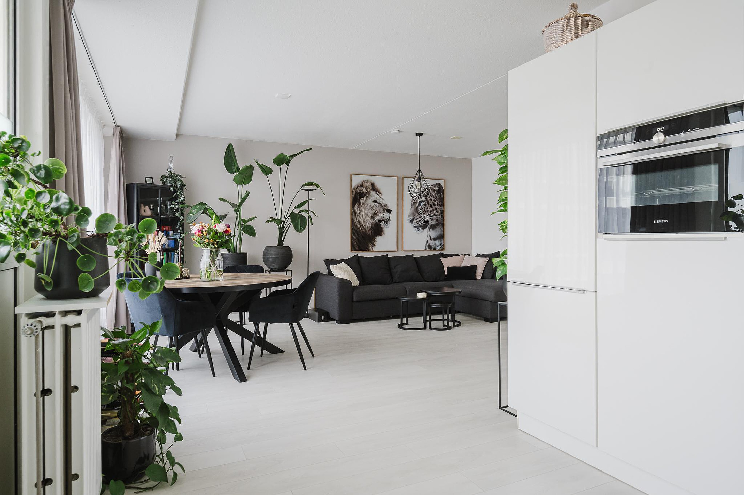 De ruime woonkamer is licht dankzij de grote raampartijen. Vanuit de woonkamer bereik je de open keuken, voorzien van inbouwapparatuur en voldoende kastruimte. Via de keuken stap je het balkon aan de achterzijde op.