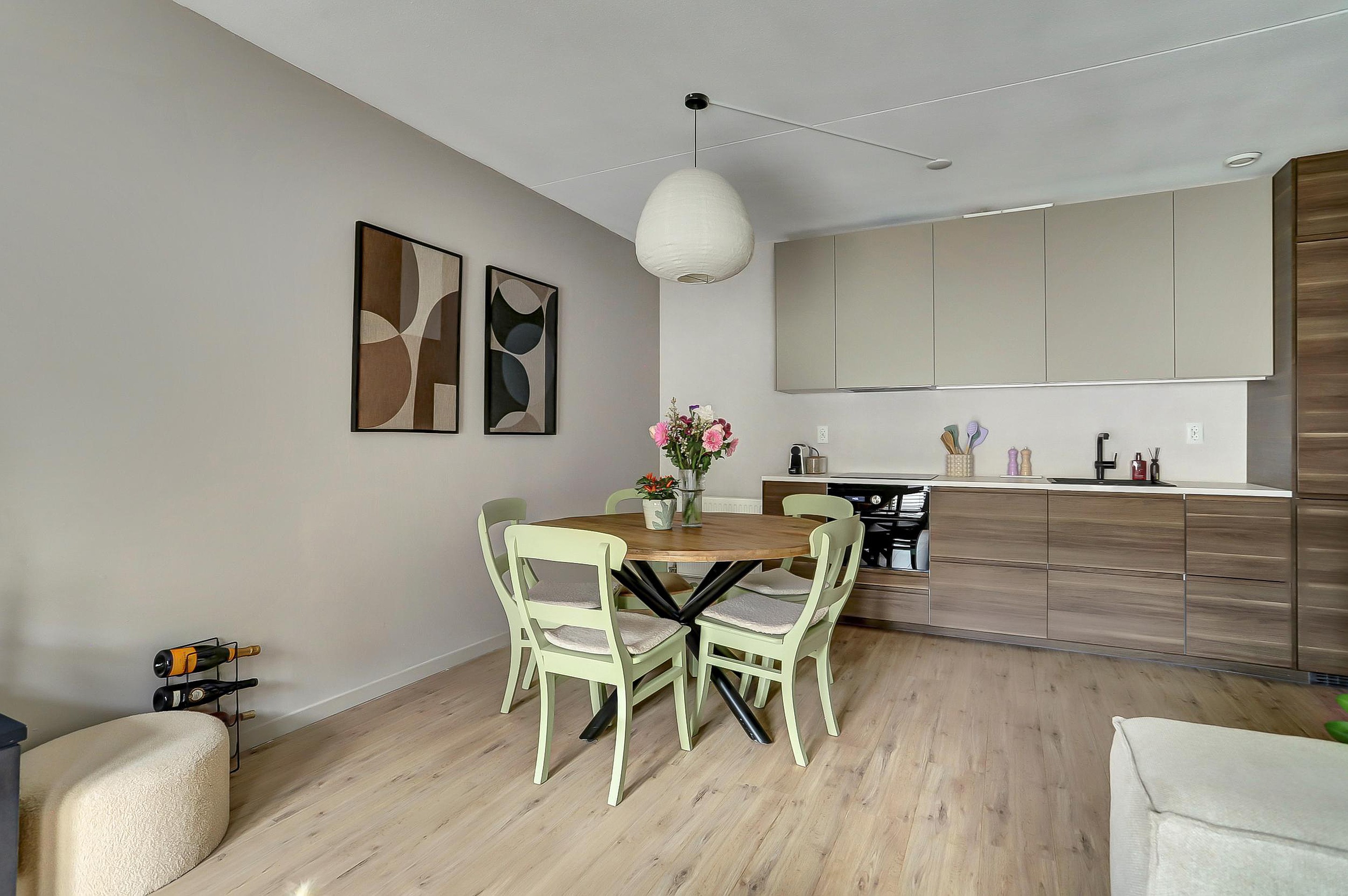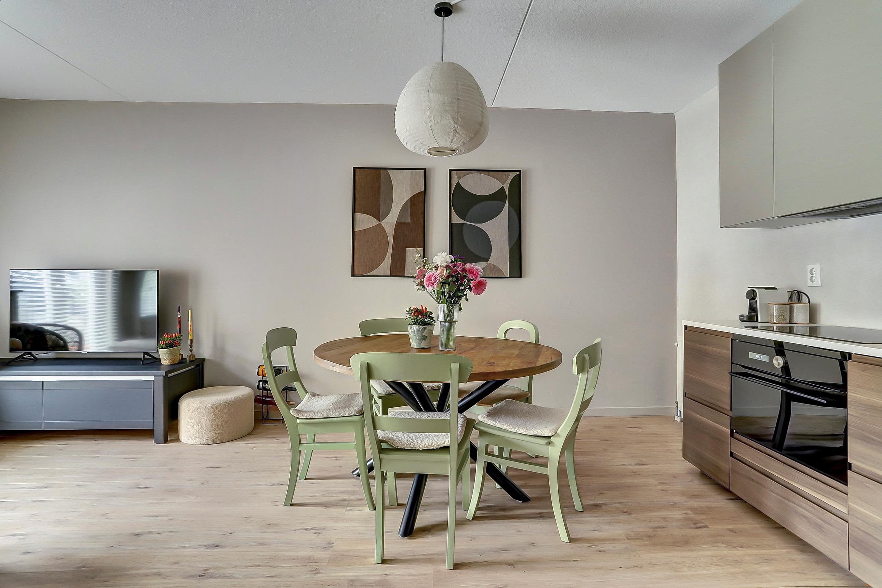 Bij binnenkomst in de ruime woonkamer valt direct de rijke lichtinval op dankzij de brede raampartijen. Deze fijne leefruimte vormt de ideale basis voor gezellige avonden en ontspannen weekends. Vanuit de woonkamer stap je zo het knusse buitenzitje op, waar je geniet van het uitzicht over de rustige binnenplaats.