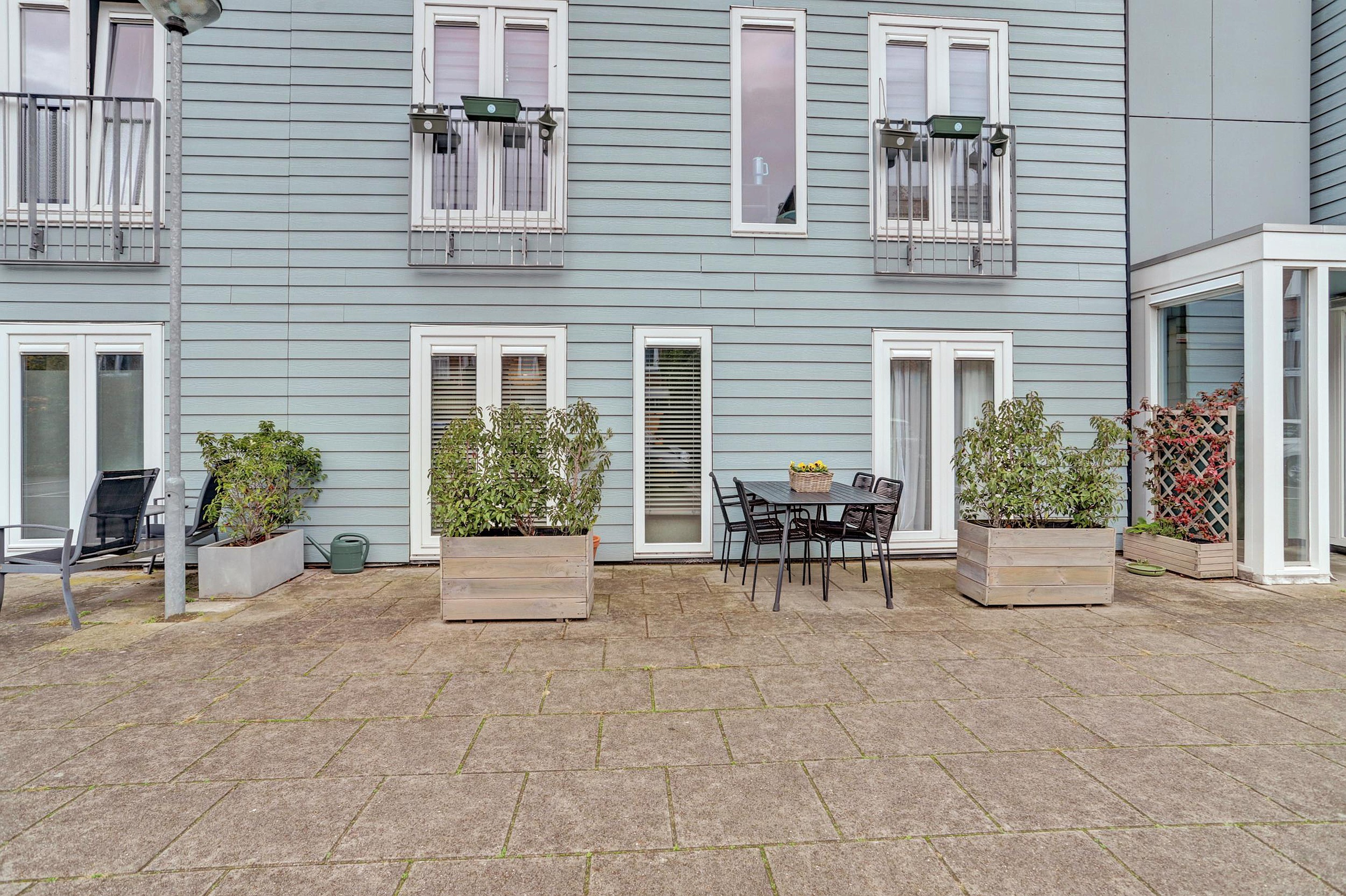 Je betreedt de woning via een afgesloten en rustige binnenplaats, waar zich jouw eigen voordeur bevindt.