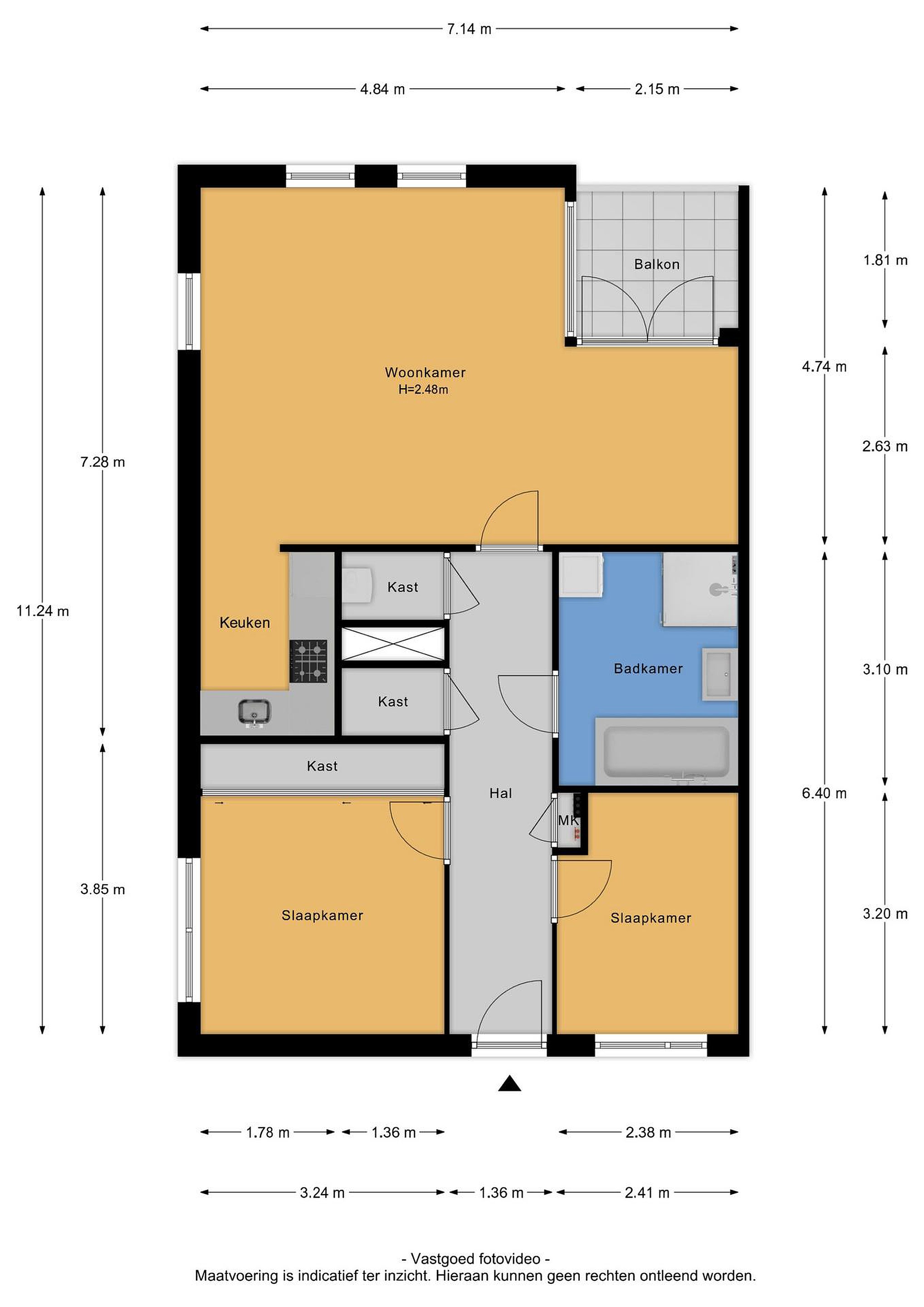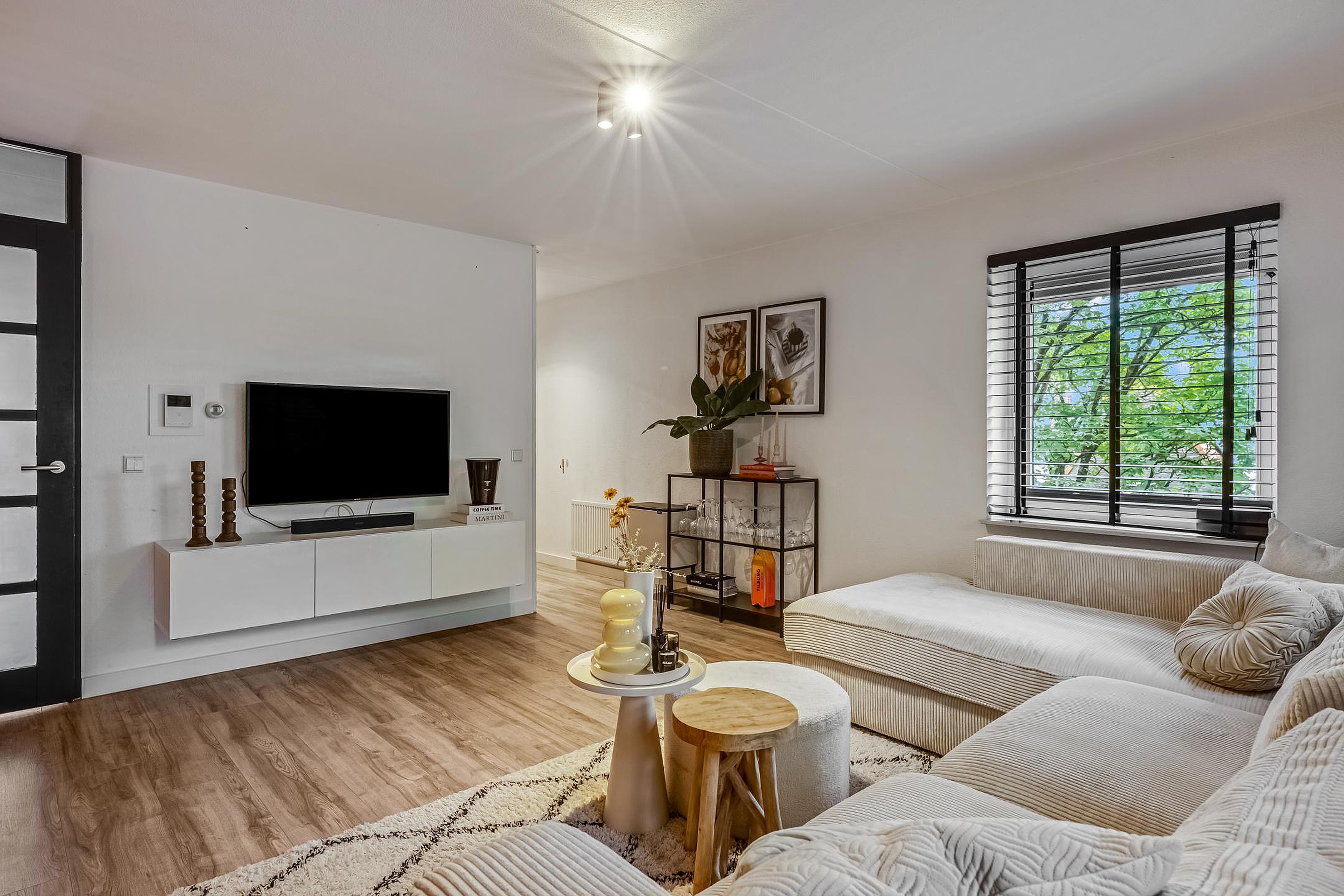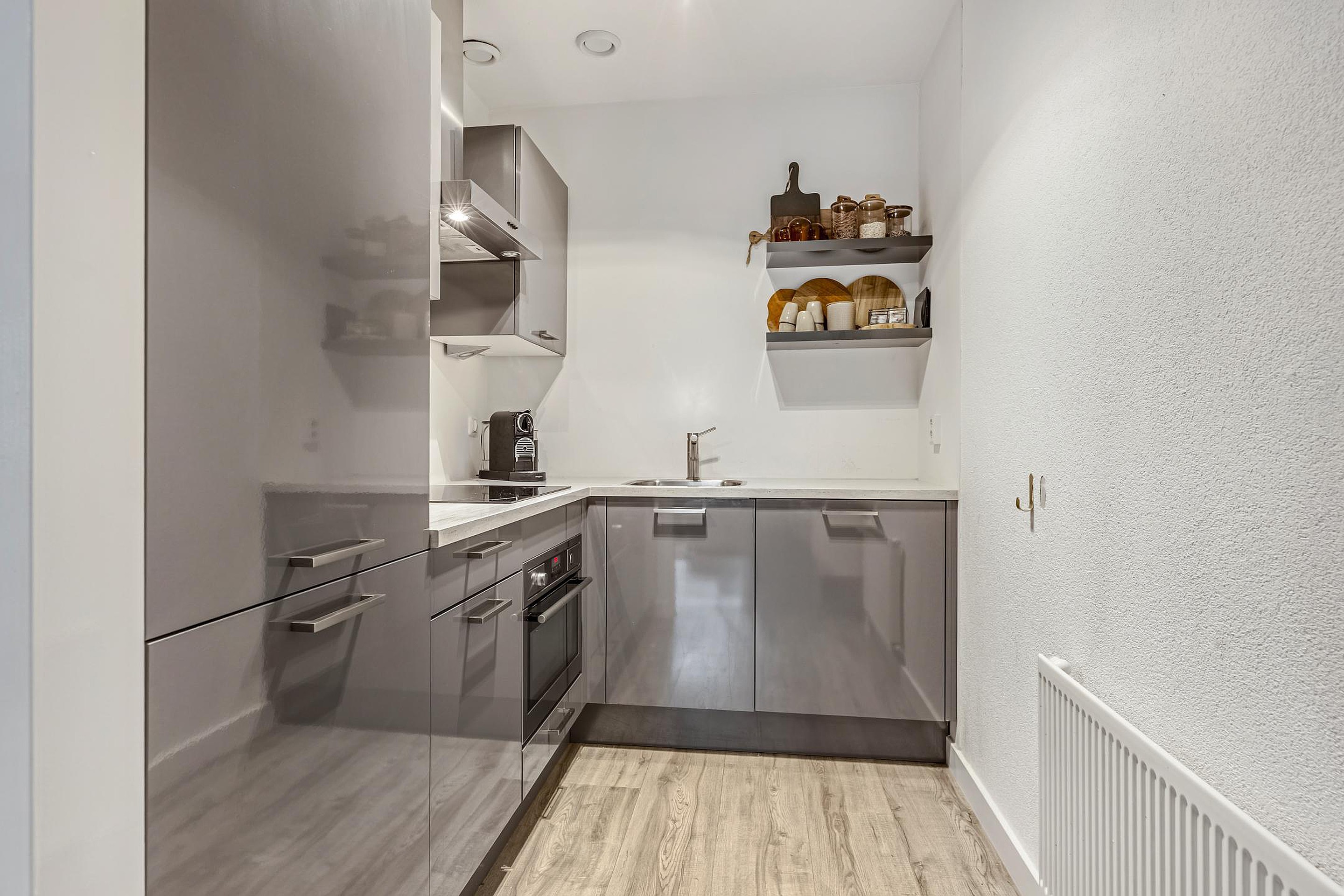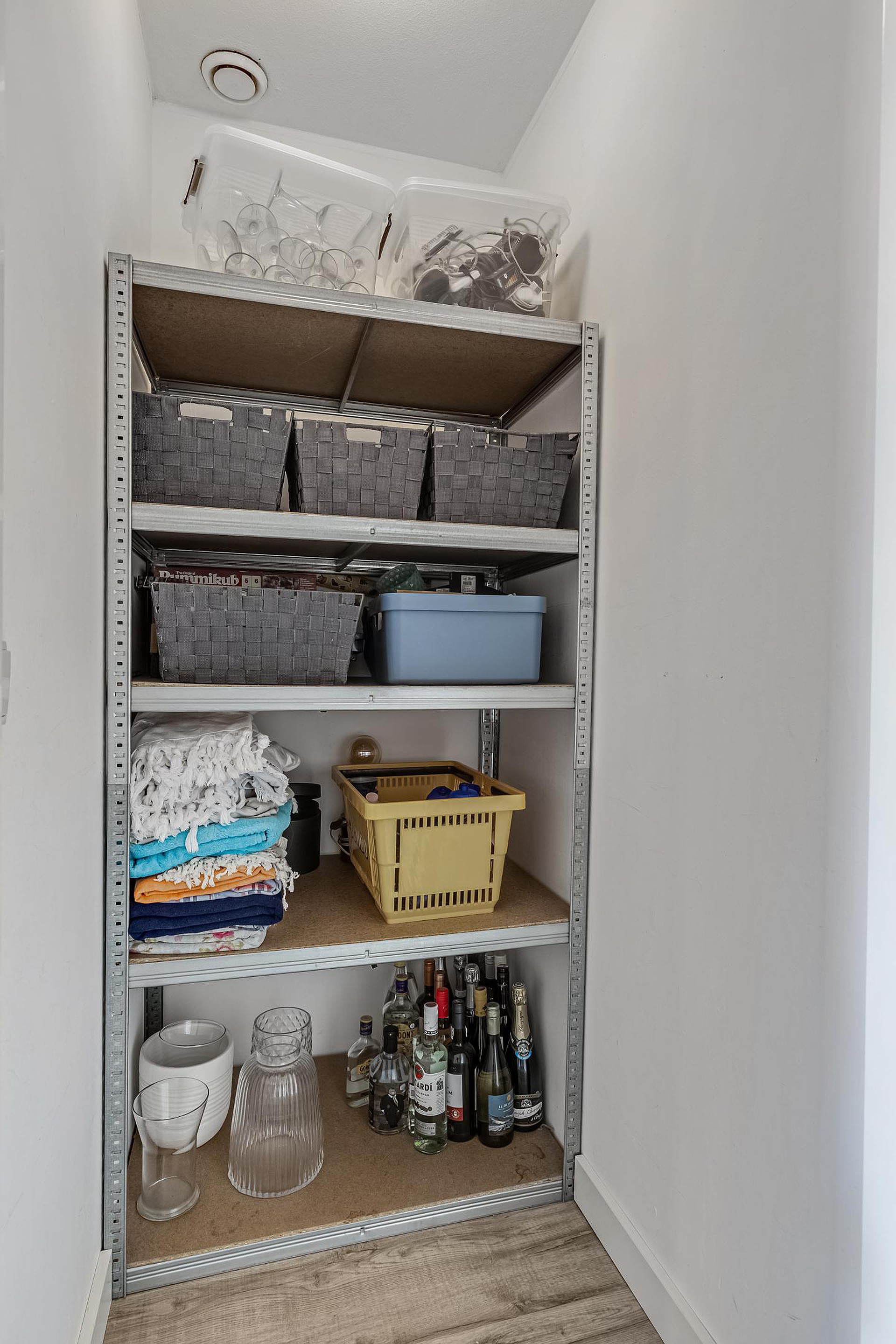 Entree: Entree / hal met meterkast en videofoon installatie. Berging Aparte bergkast en kast met opstelling cv-ketel. Woonkamer Lichte woonkamer welke goed in te delen is met deur naar balkon. Balkon Inpandige balkon met een vrije uitzicht op het pleintje. Keuken Open keuken in lichte kleurstelling en hoekopstelling is voorzien van bovenkasten, vaatwasser en kookplaat. Slaapkamers Twee slaapkamers welke goed zijn ingedeeld. Badkamer De licht betegelde badkamer is uitgerust met een douche, toilet, vaste wastafel en wasmachine-aansluiting.