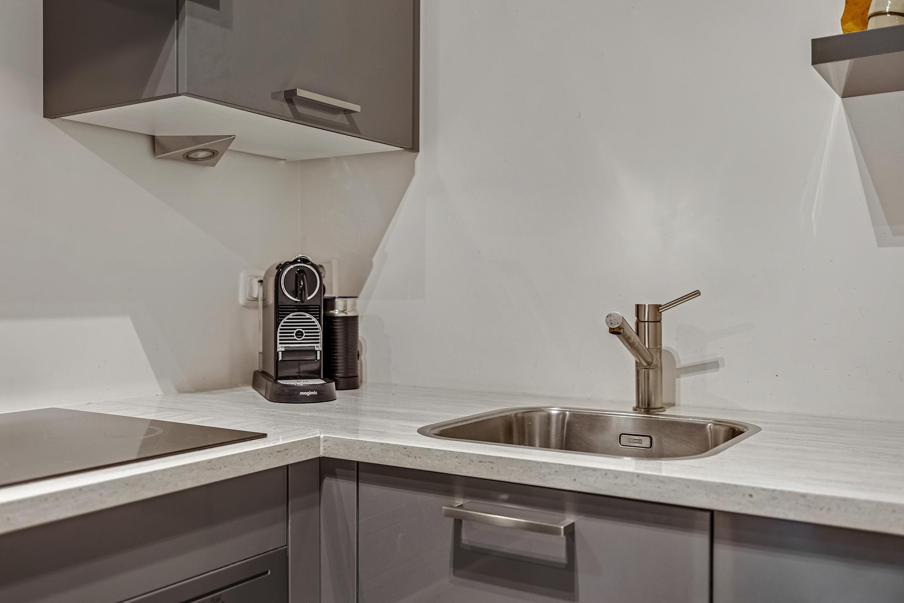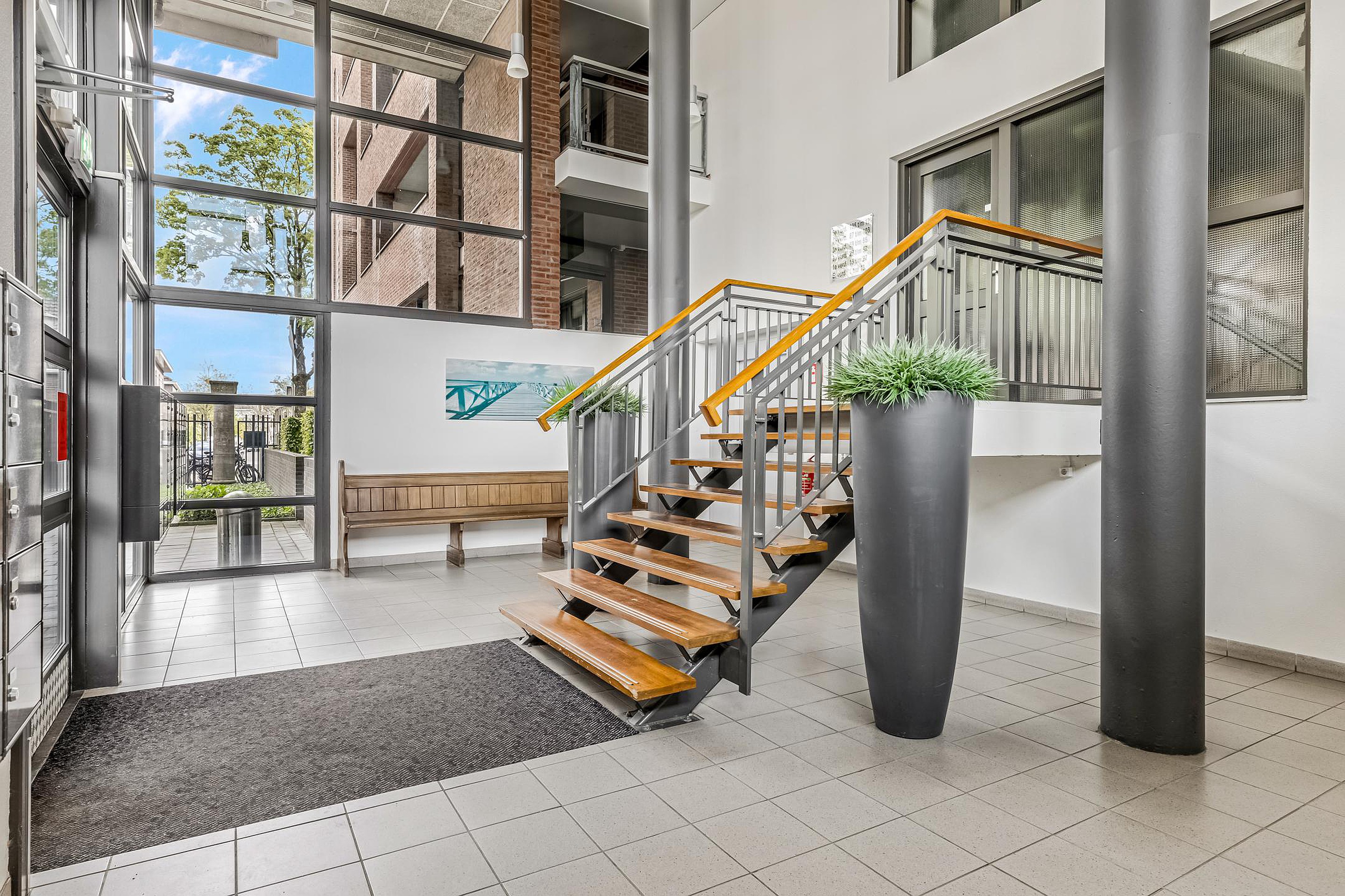 Het appartementencomplex is voorzien van een liftinstallatie en beschikt over een elektrisch bedienbare toegangspoort.