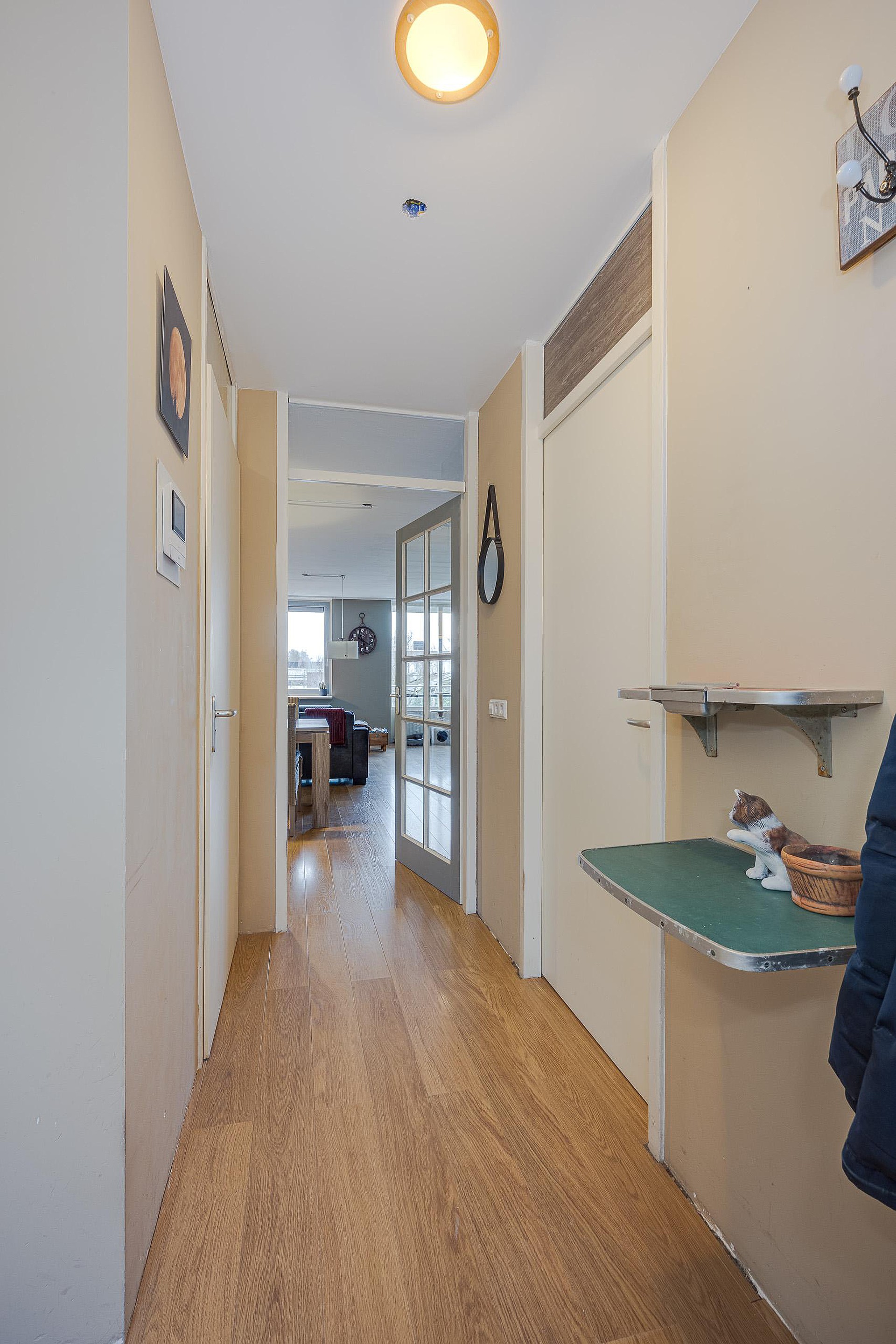 De entree van de woning bevindt zich op de 2e woonlaag, te bereken via de overdekte corridor. De indeling van het appartement is als volgt: